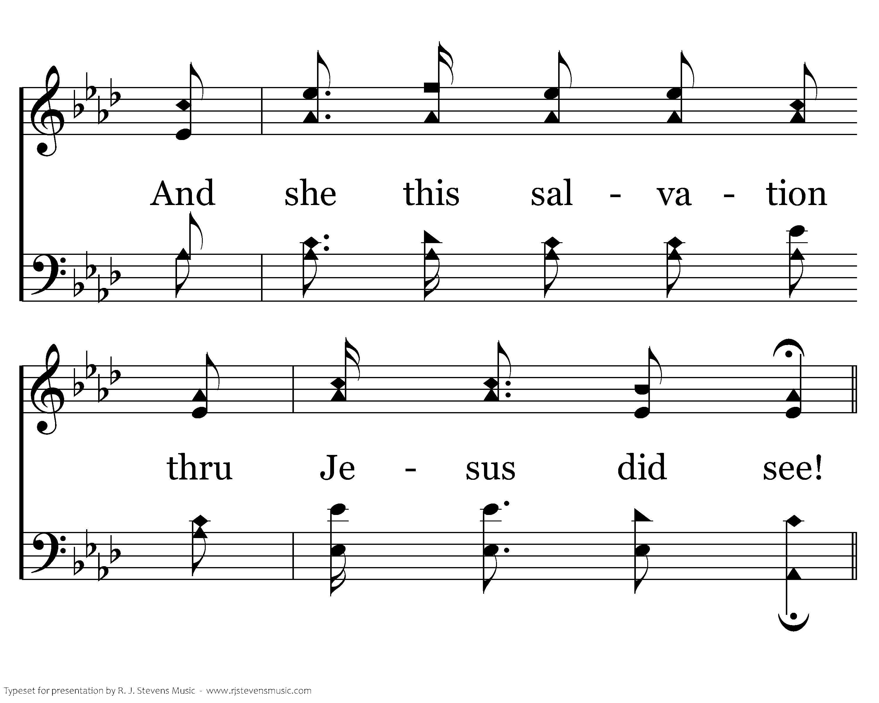 Sore, weary, and thirsty, He came to a well, And there, to a woman, this story did tell, She heard it with joy, for her soul could be free, And she this salvation thru Jesus did see!