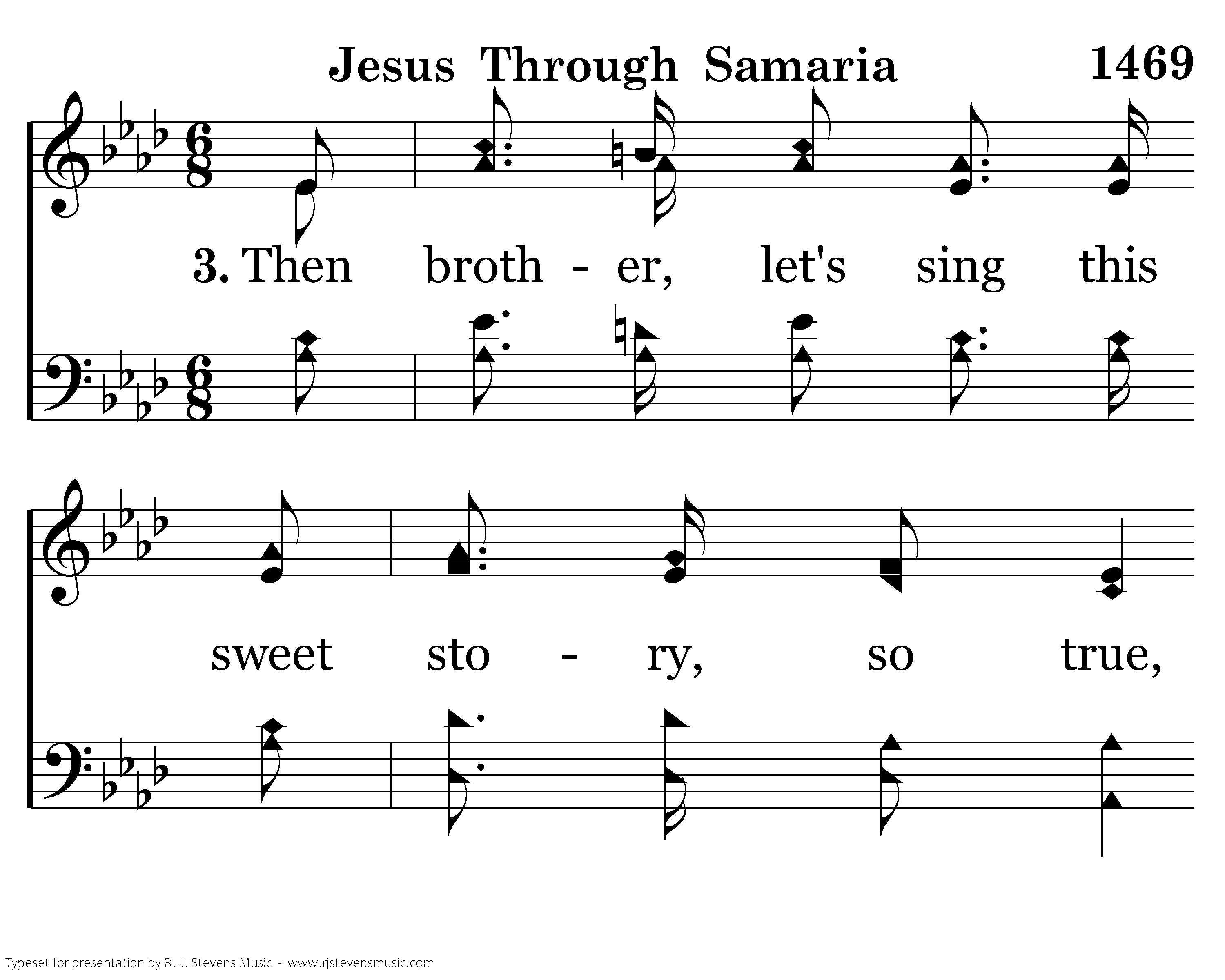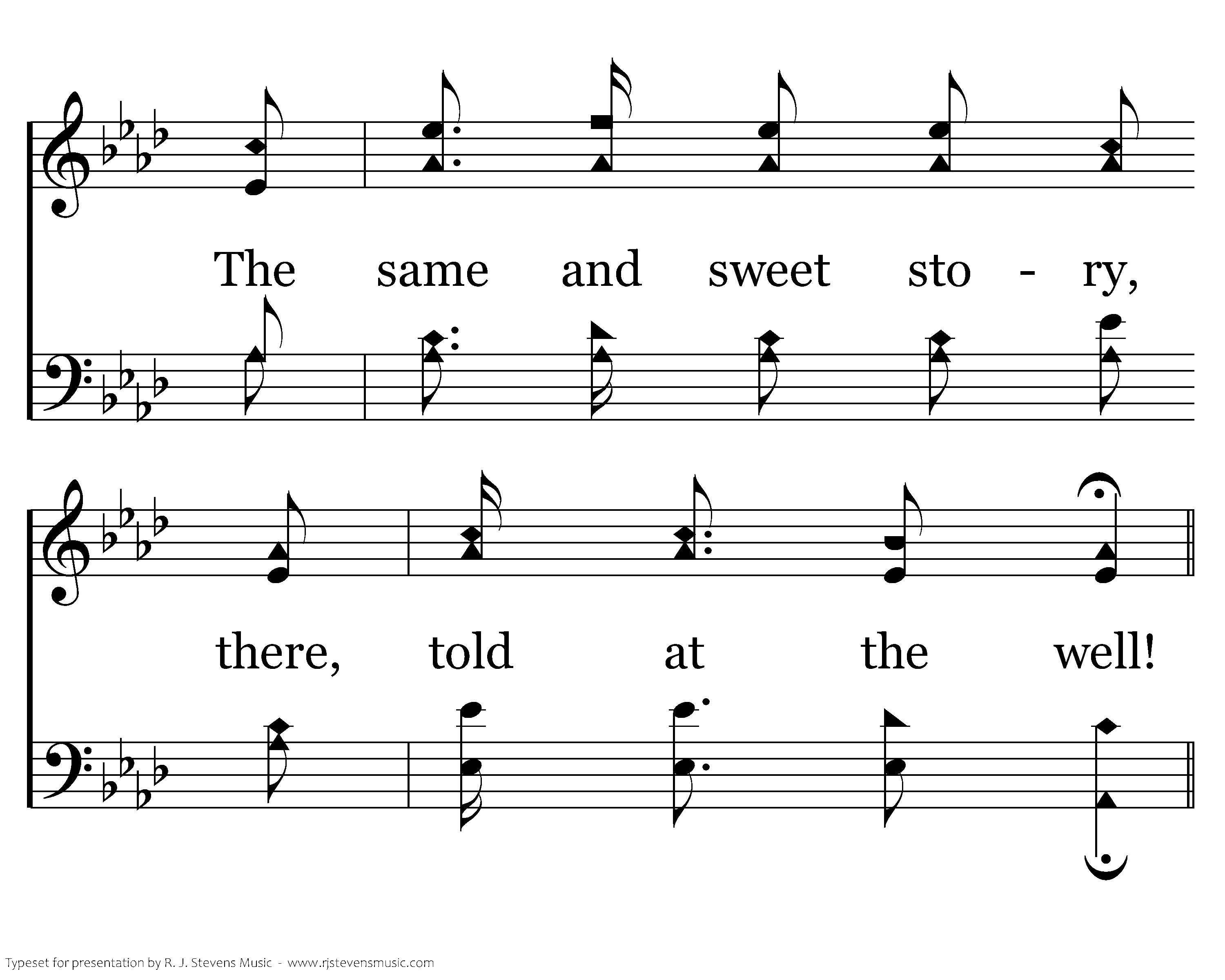 Then brother, let's sing this sweet story, so true, Salvation thru Jesus, for me and for you! Let ev'ry glad heart this great message now tell, The same and sweet story, there, told at the well!