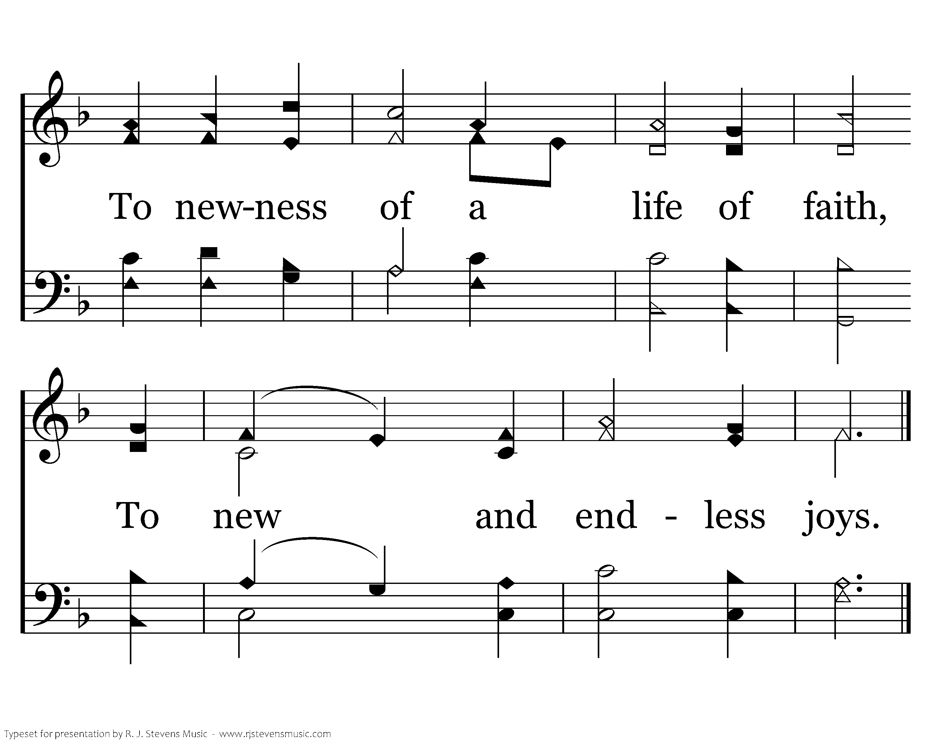 Baptized into Your death, With You again we rise, To newness of a life of faith, To new and endless joys.