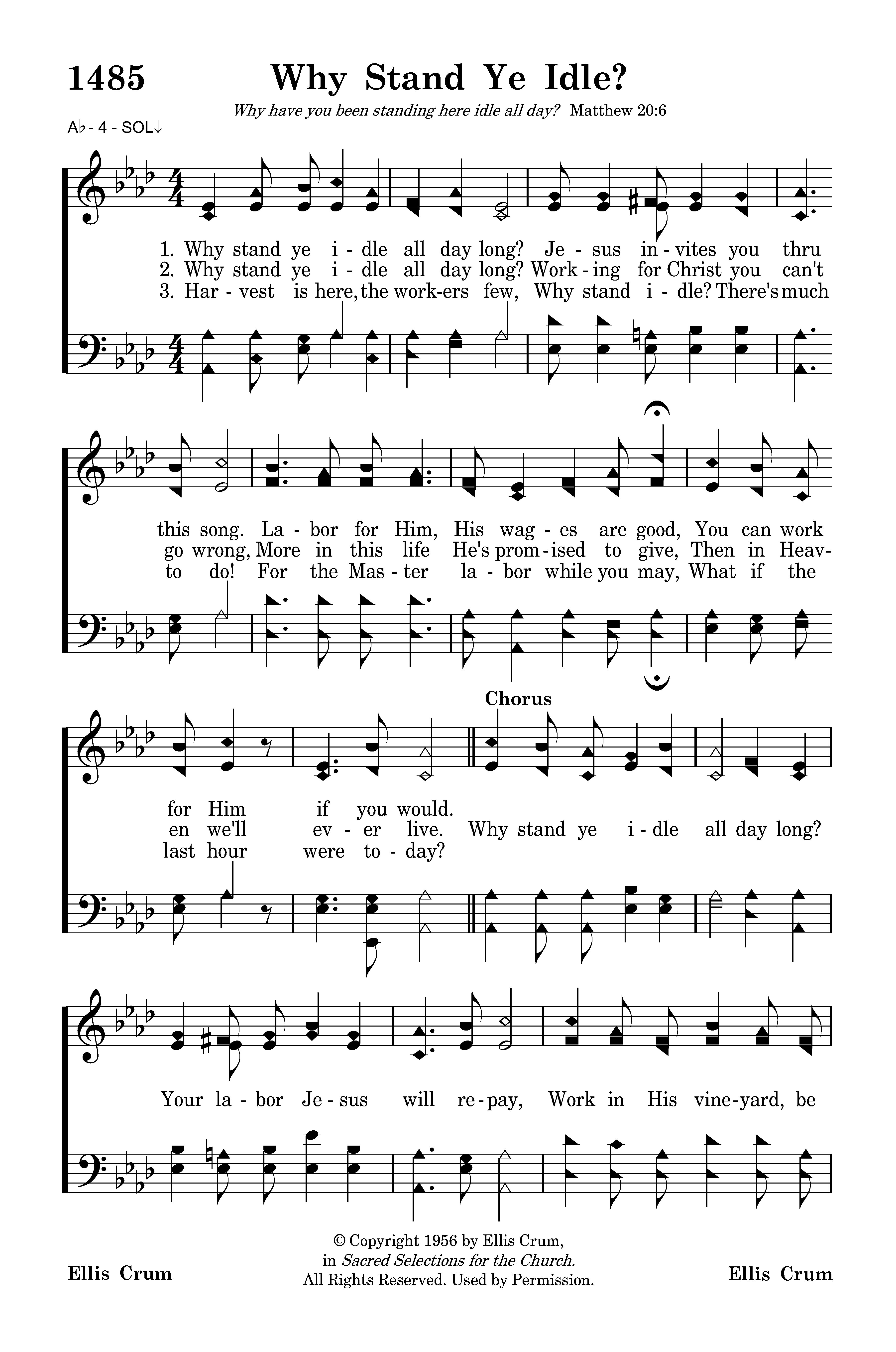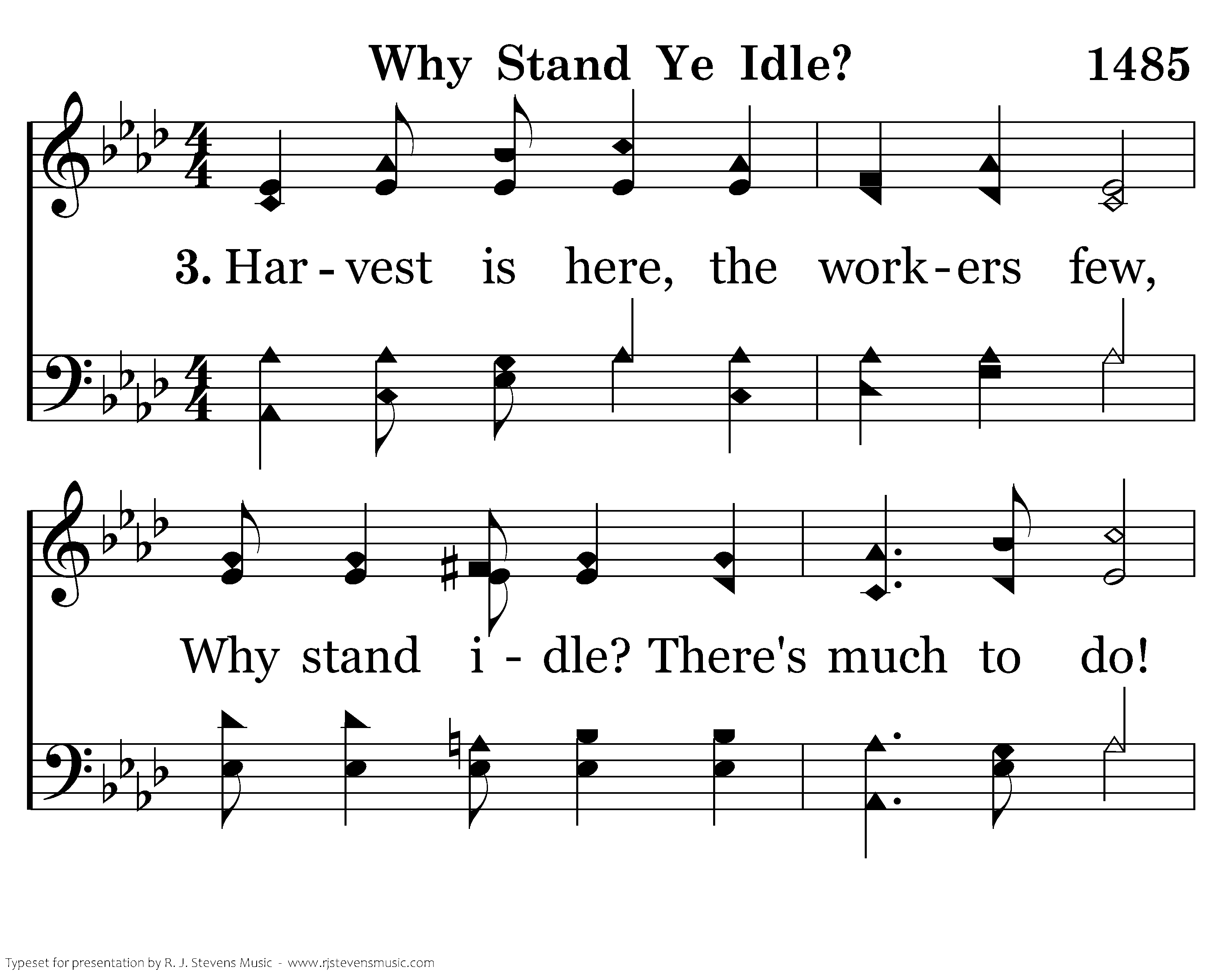 Why stand ye idle all day long? Jesus invites you thru this song. Labor for Him, His wages are good, You can work for Him if you would.
