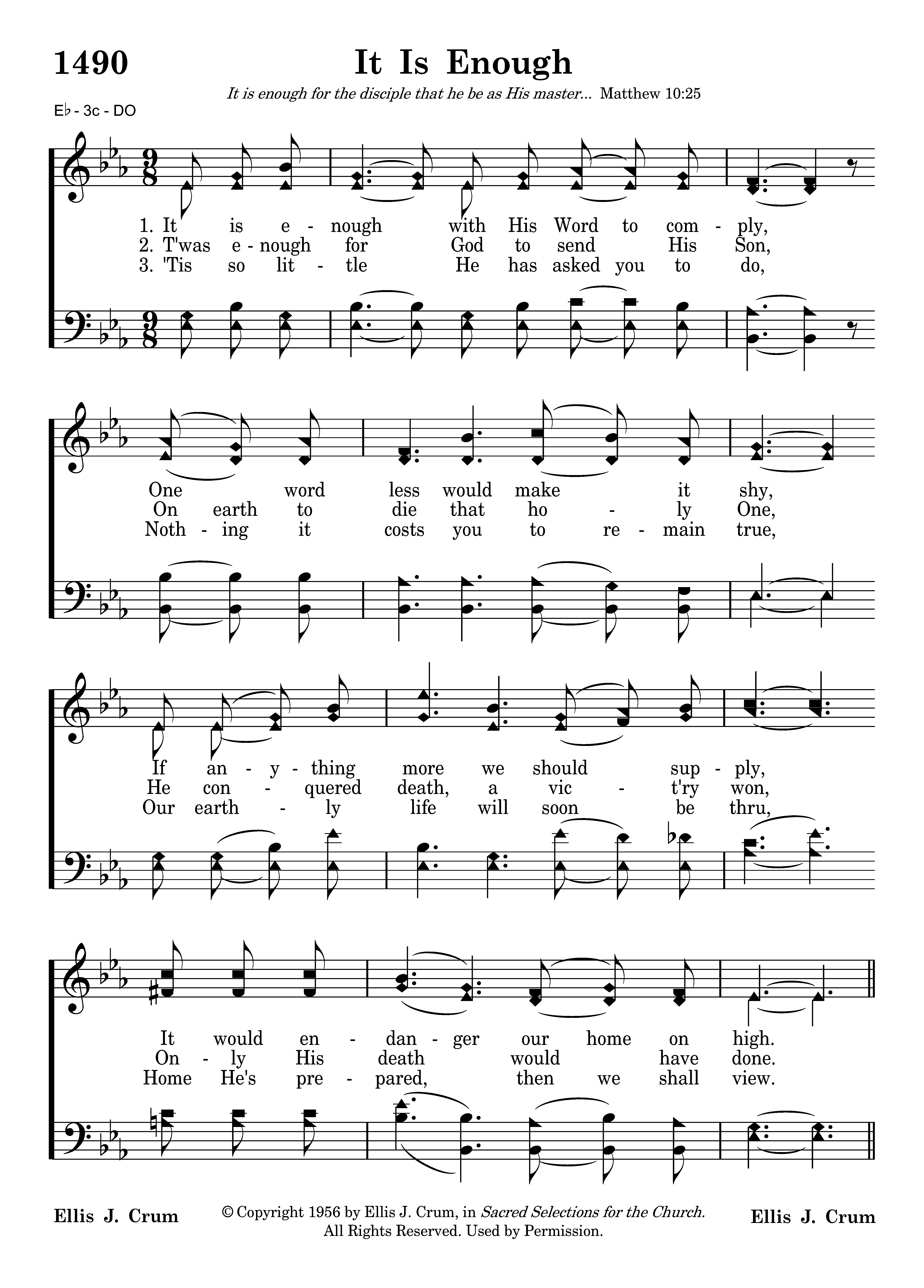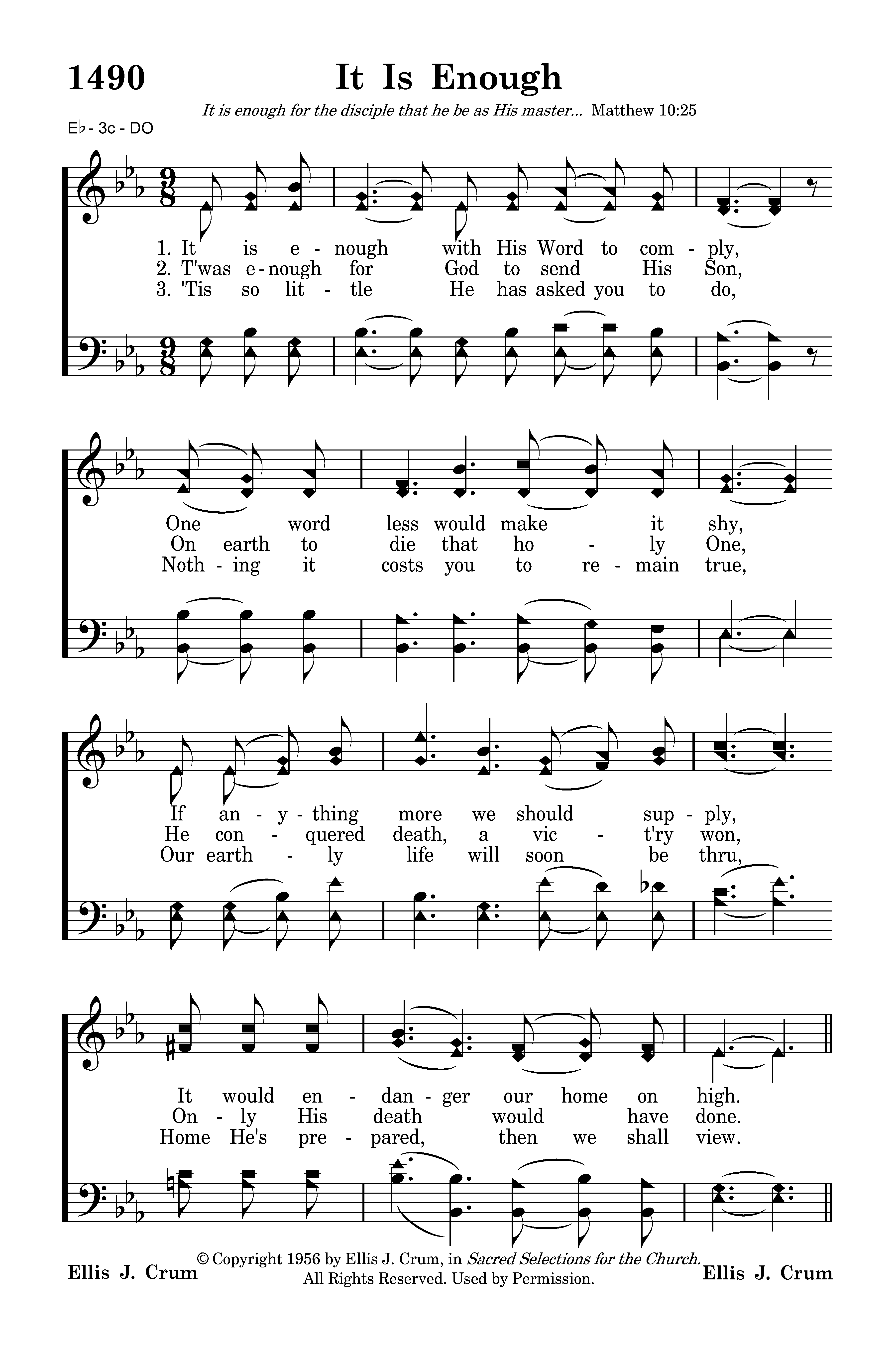 - Copyright © 1956 by Ellis Crum in Sacred Selection for the Church. (Admin. by R. E. Winsett Sacred Selections LLC.) All Rights Reserved. Used by Permission.