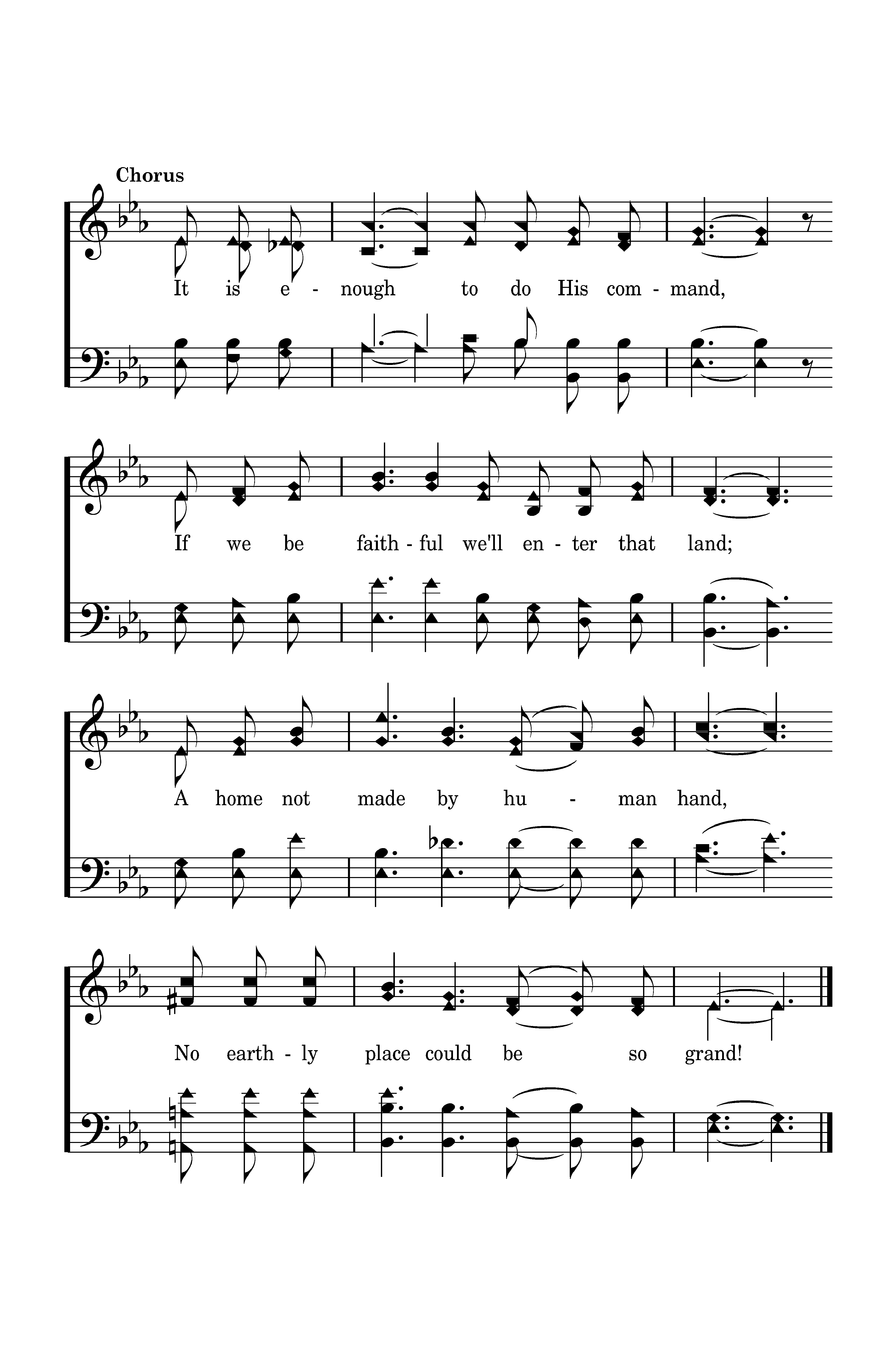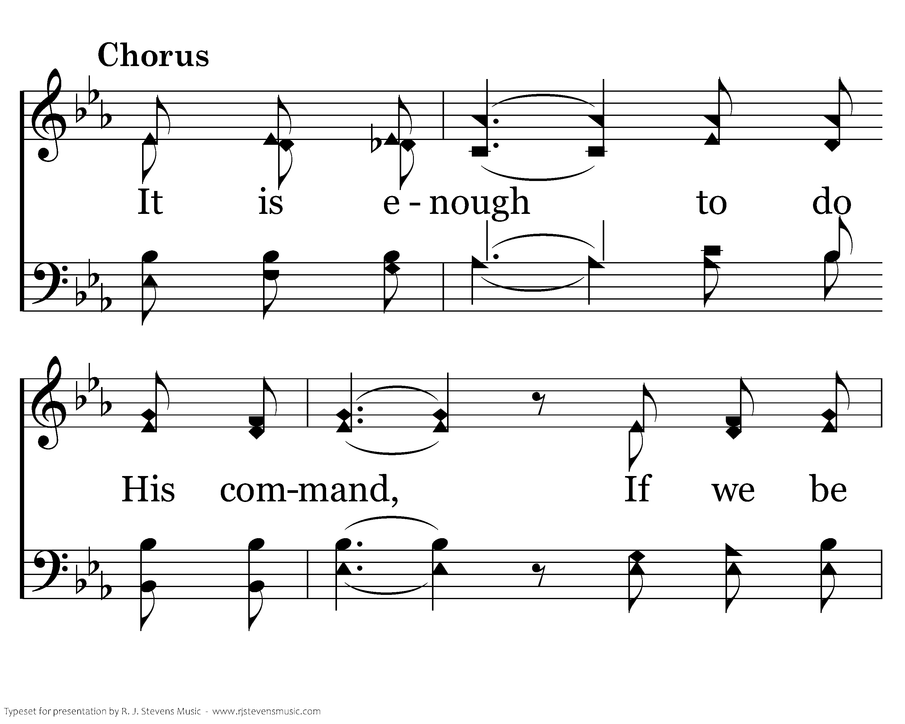 It is enough to do His command, If we be faithful we'll enter that land; A home not made by human hand, No earthly place could be so grand!