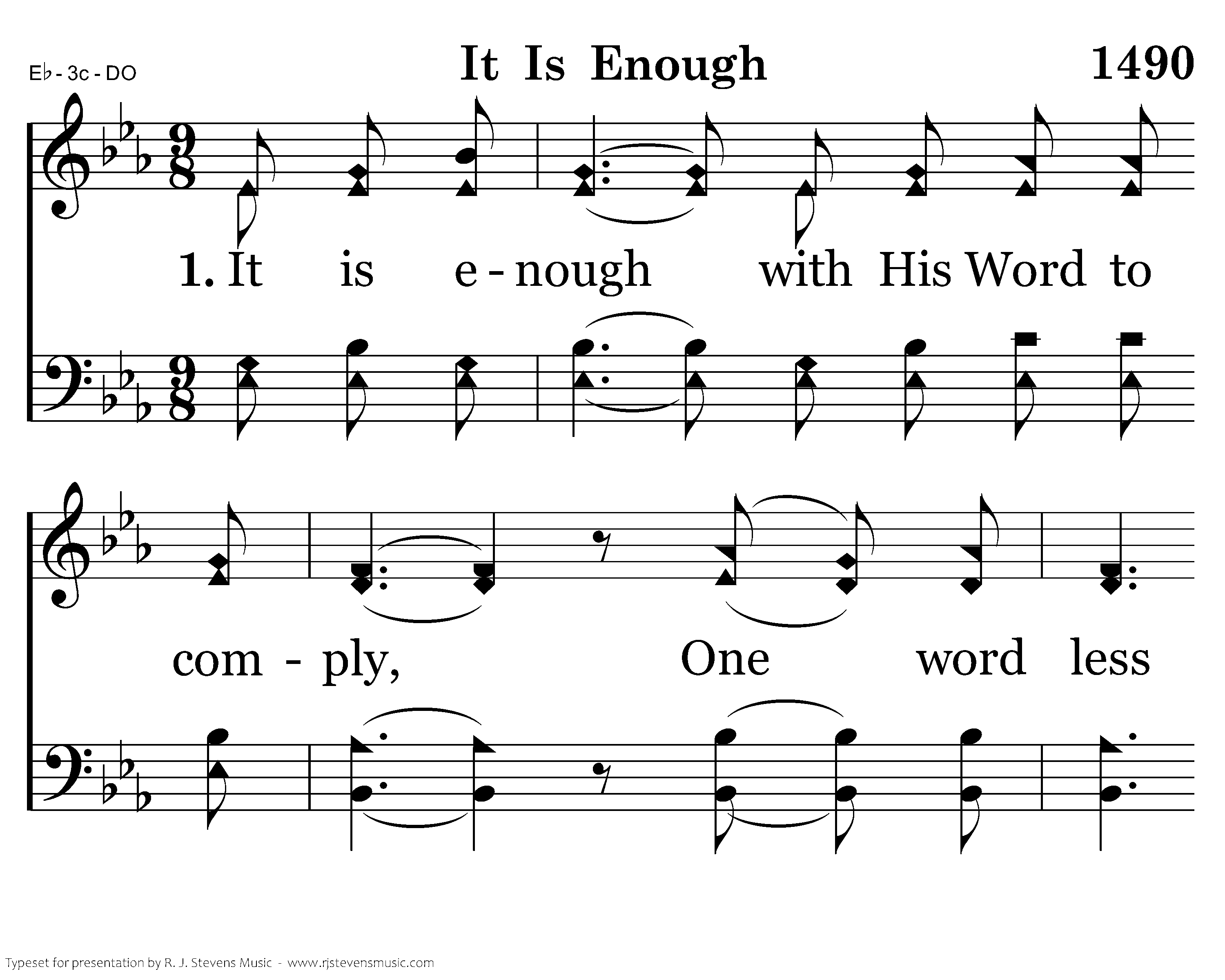 It is enough with His Word to comply, One word less would make it shy, If anything more we should supply, It would endanger our home on high.