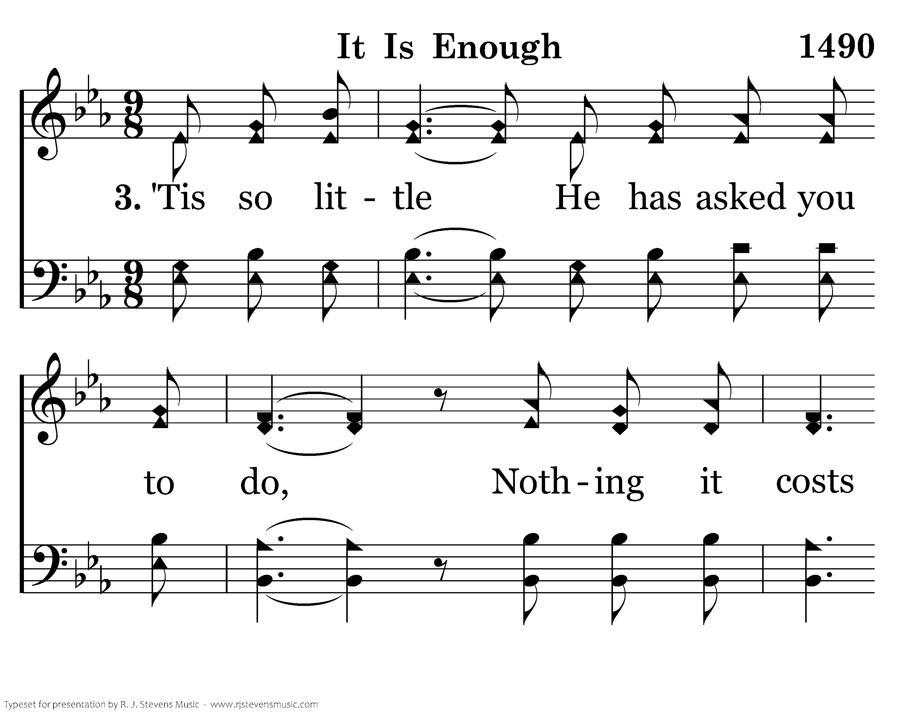 'Tis so little He has asked you to do, Nothing it costs you to remain true, Our earthly life will soon be thru, Home He's prepared, then we shall view.