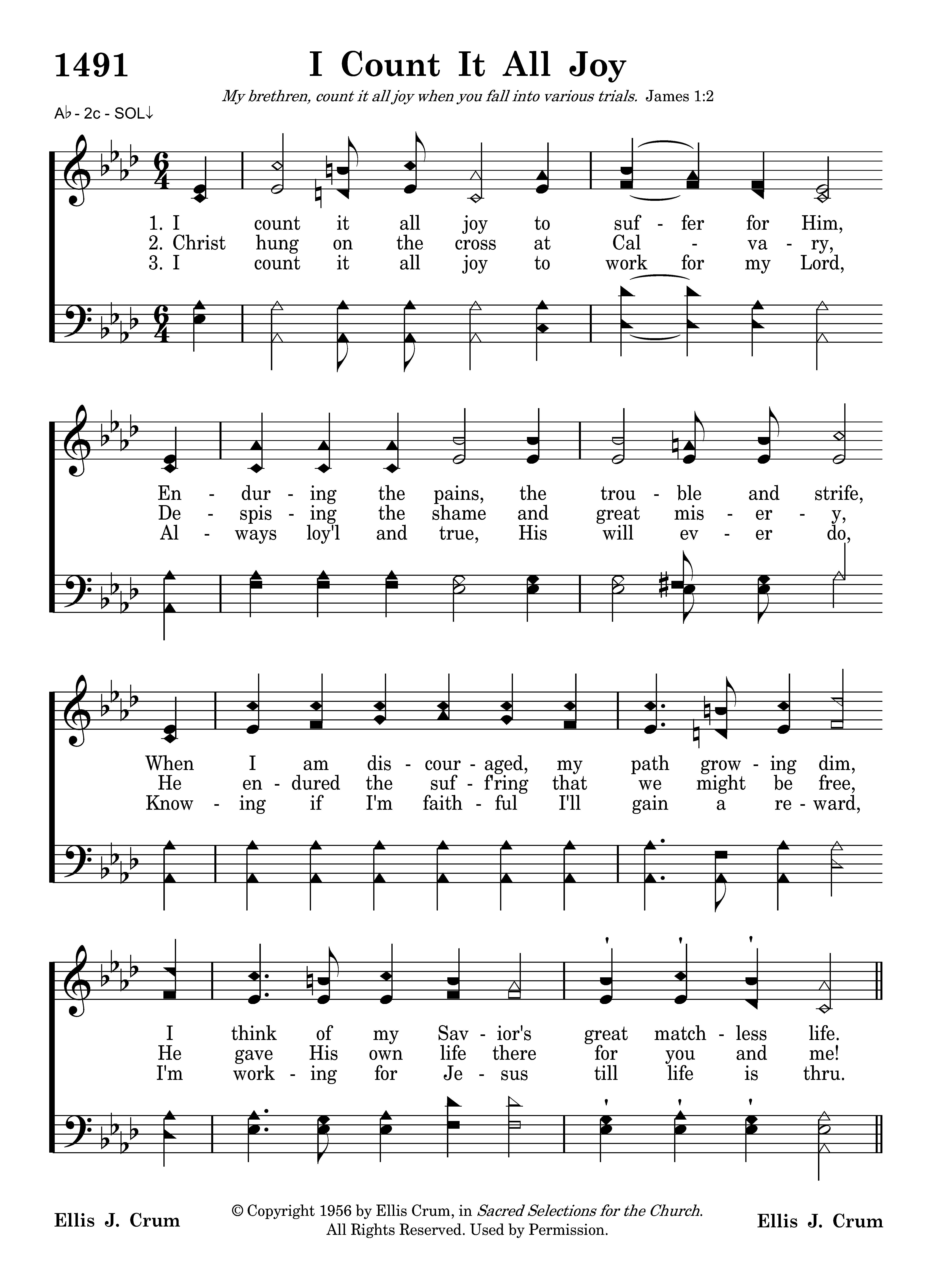 - Copyright © 1956 by Ellis Crum in Sacred Selection for the Church. (Admin. by R. E. Winsett Sacred Selections LLC.) All Rights Reserved. Used by Permission.