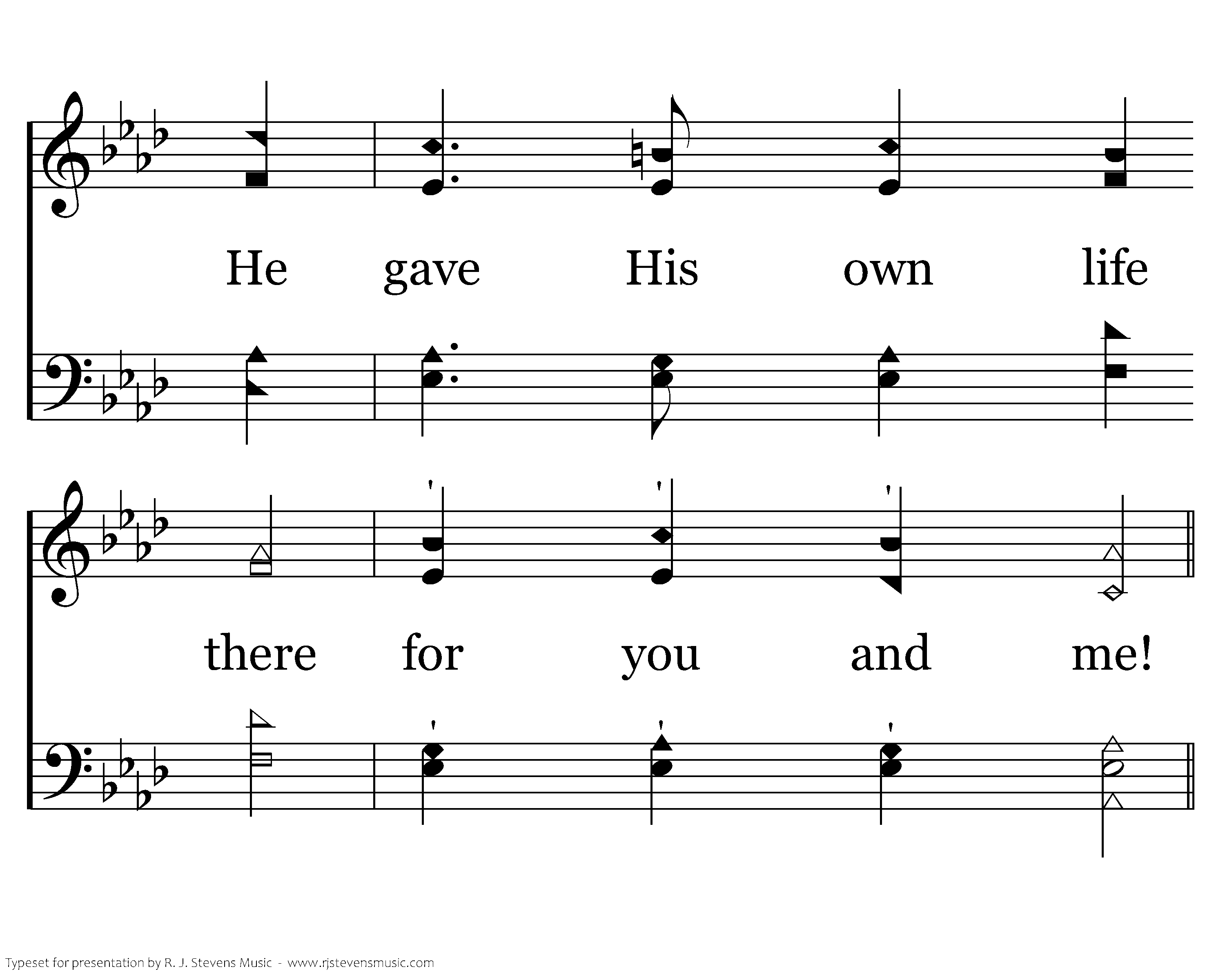 Christ hung on the cross at Calvary, Despising the shame and great misery, He endured the suff'ring that we might be free, He gave His own life there for you and me!