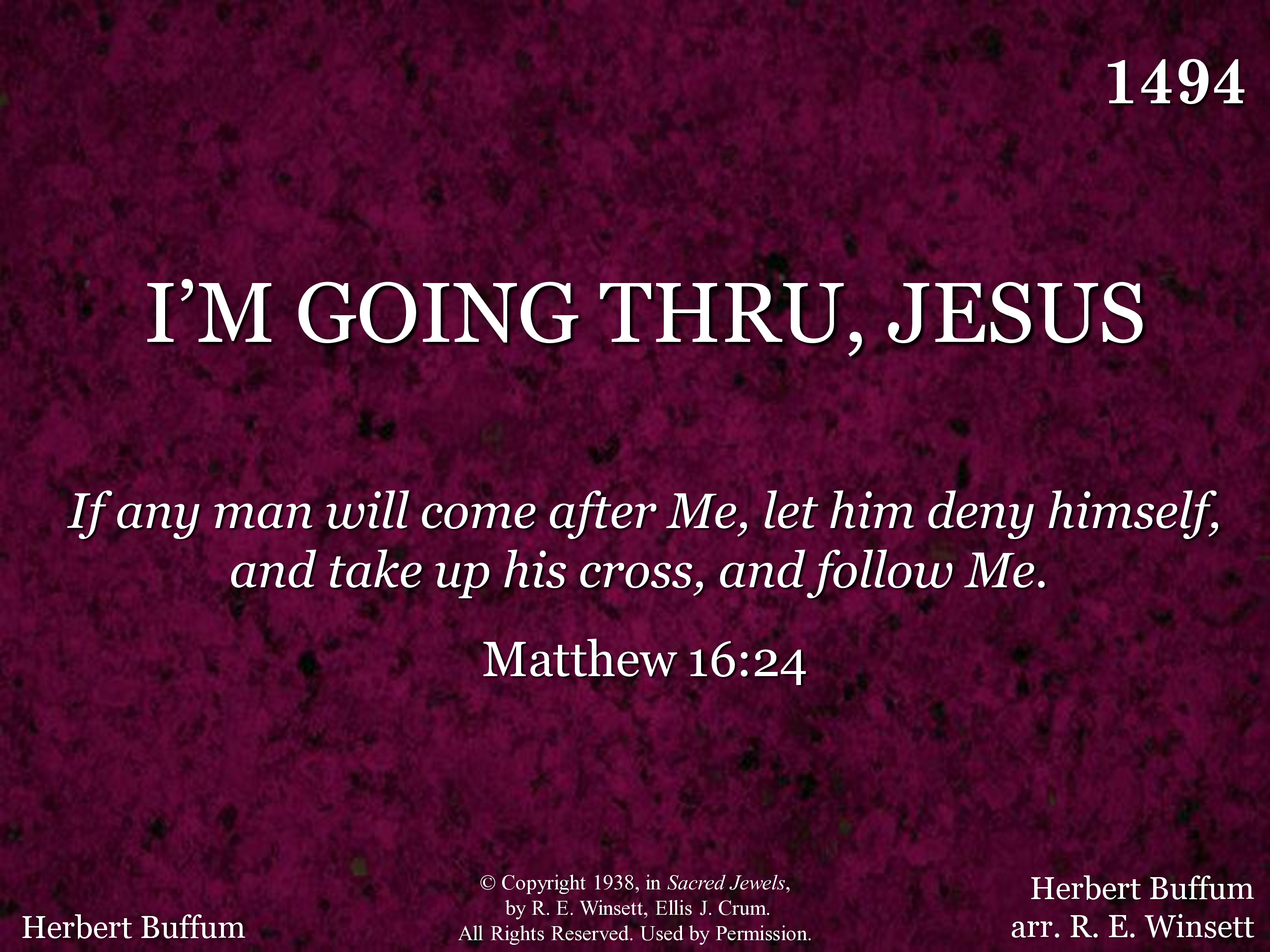 - Copyright © 1938 in Sacred Jewels by R. E. Winsett & Ellis Crum. All Rights Reserved. Used by Permission.