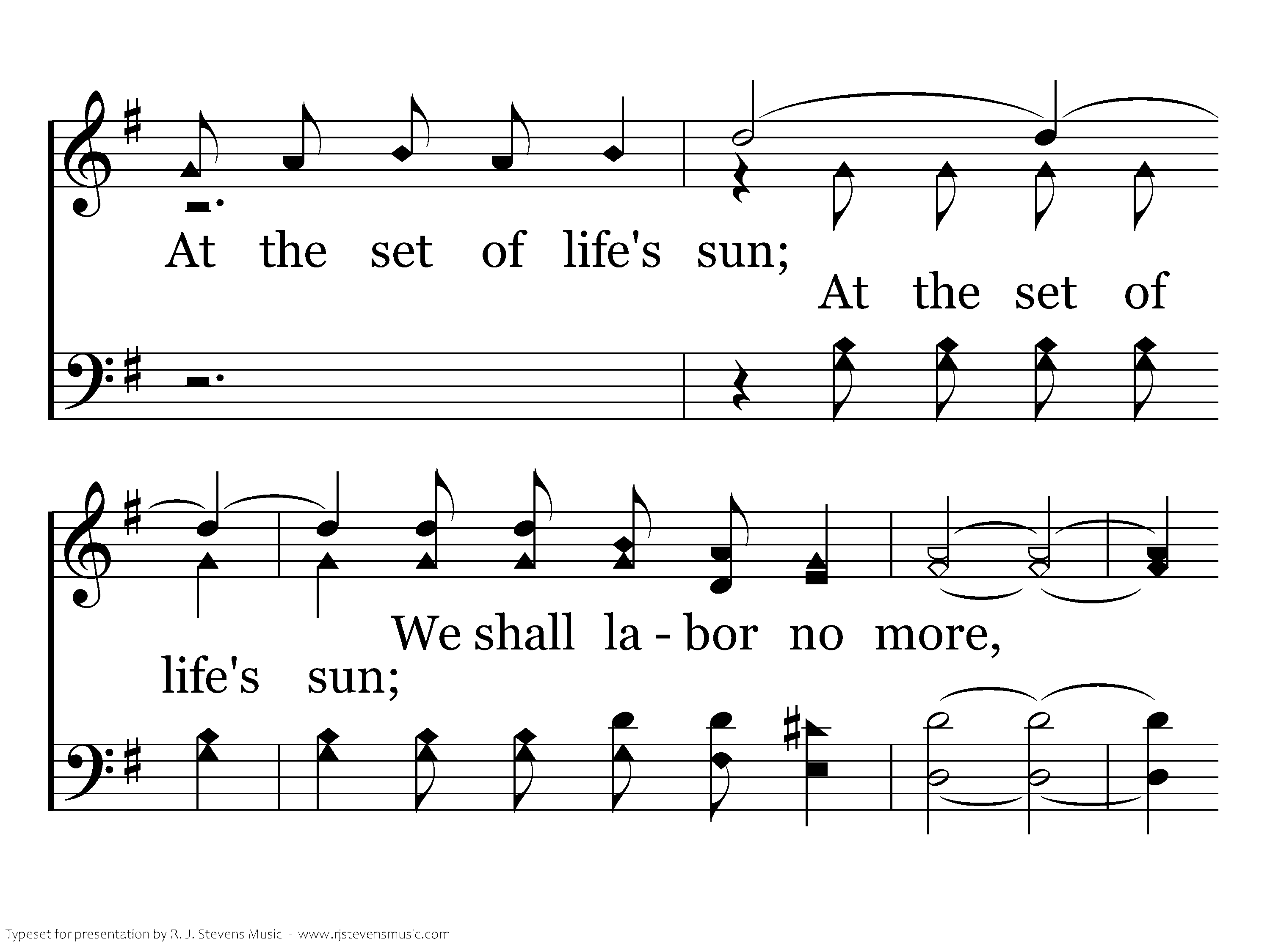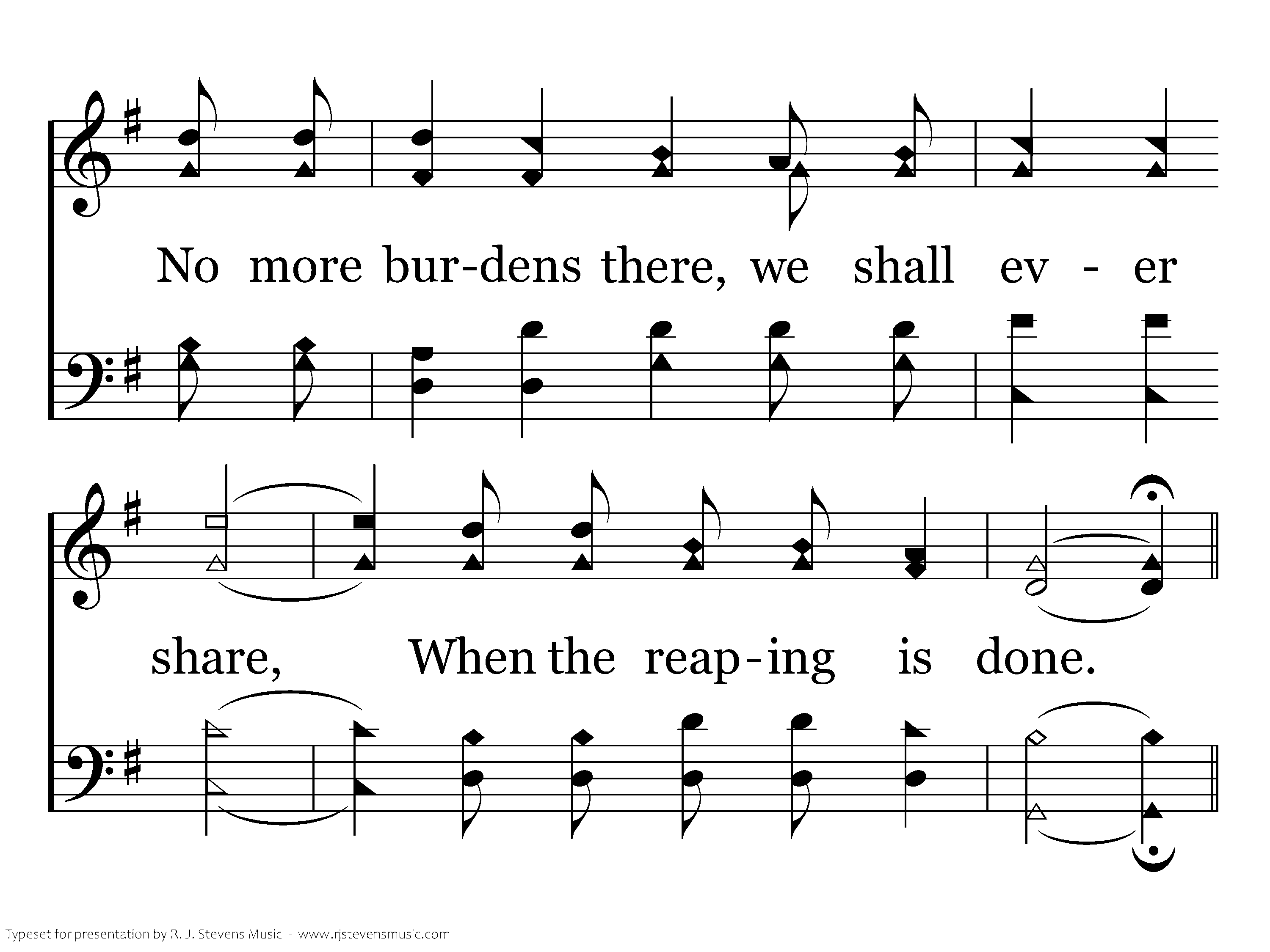 In the harvest field we are toiling today. Beneath the blazing sun; But the load of life will pass away, When eternity has begun; As we bear our load we are thinking of home, Beyond life's setting sun; When the sun sinks low, we shall homeward go, When the reaping is done.