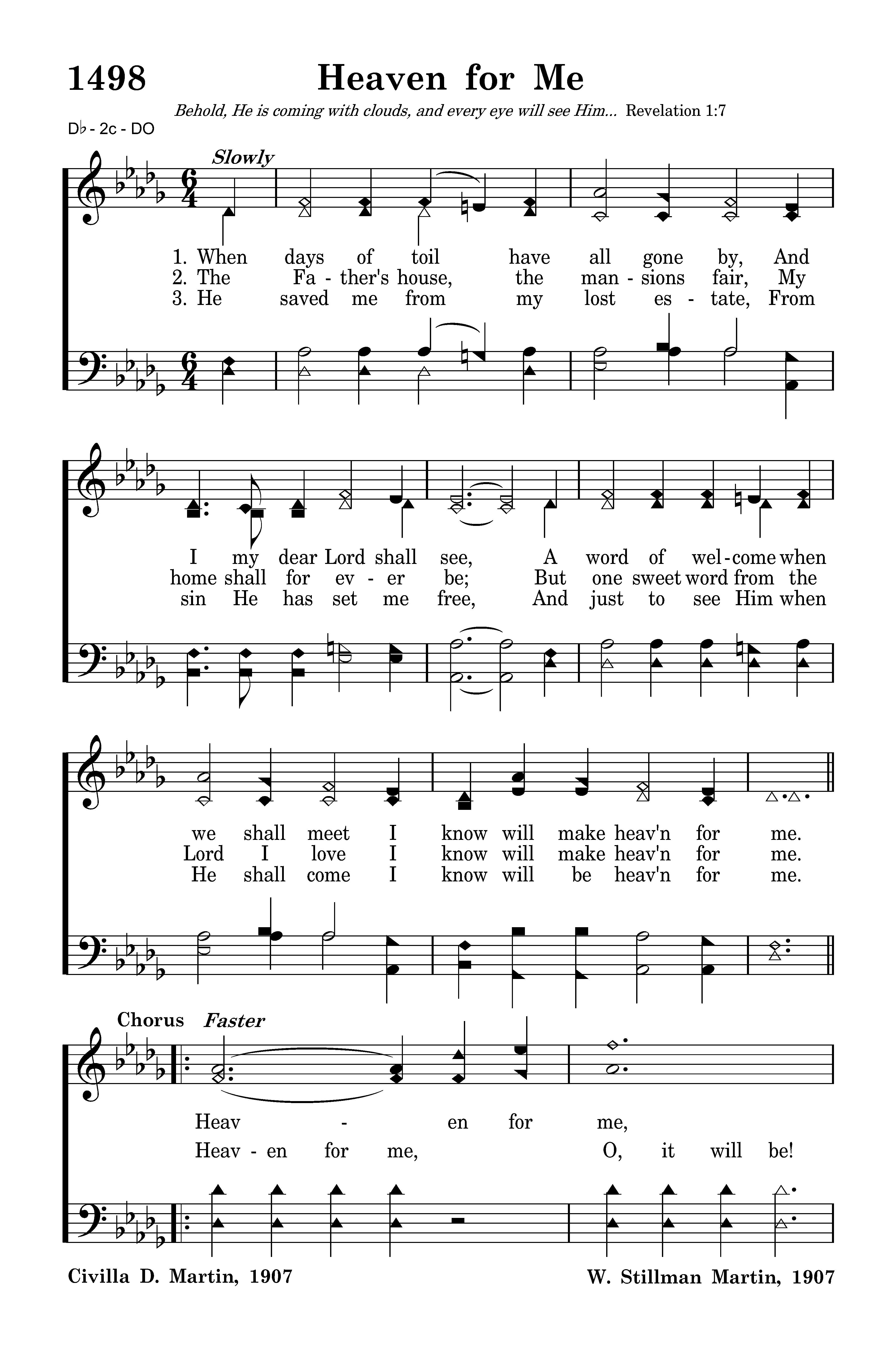 When days of toil have all gone by, And I my dear Lord shall see, A word of welcome when we shall meet I know will make heav'n for me.