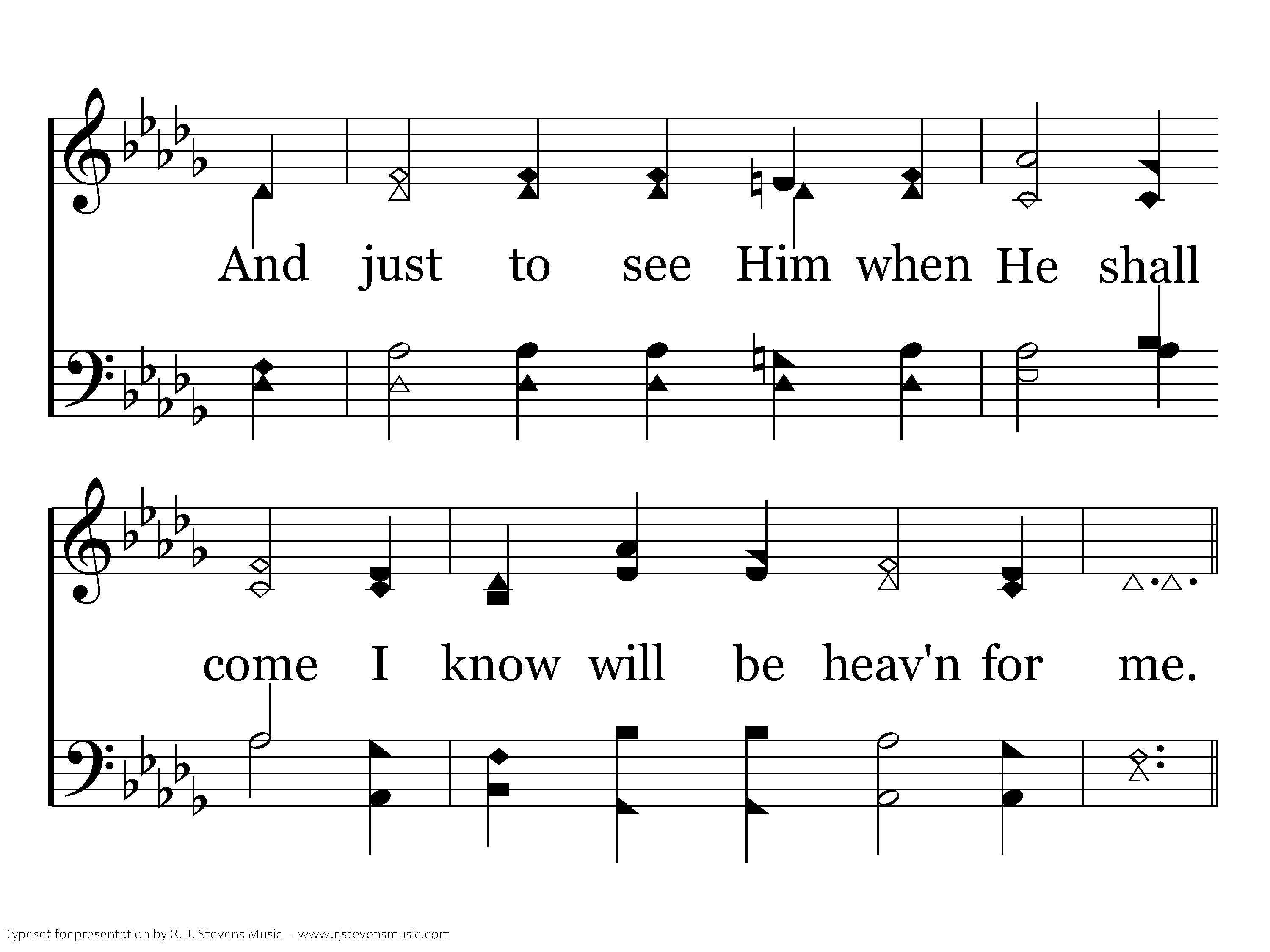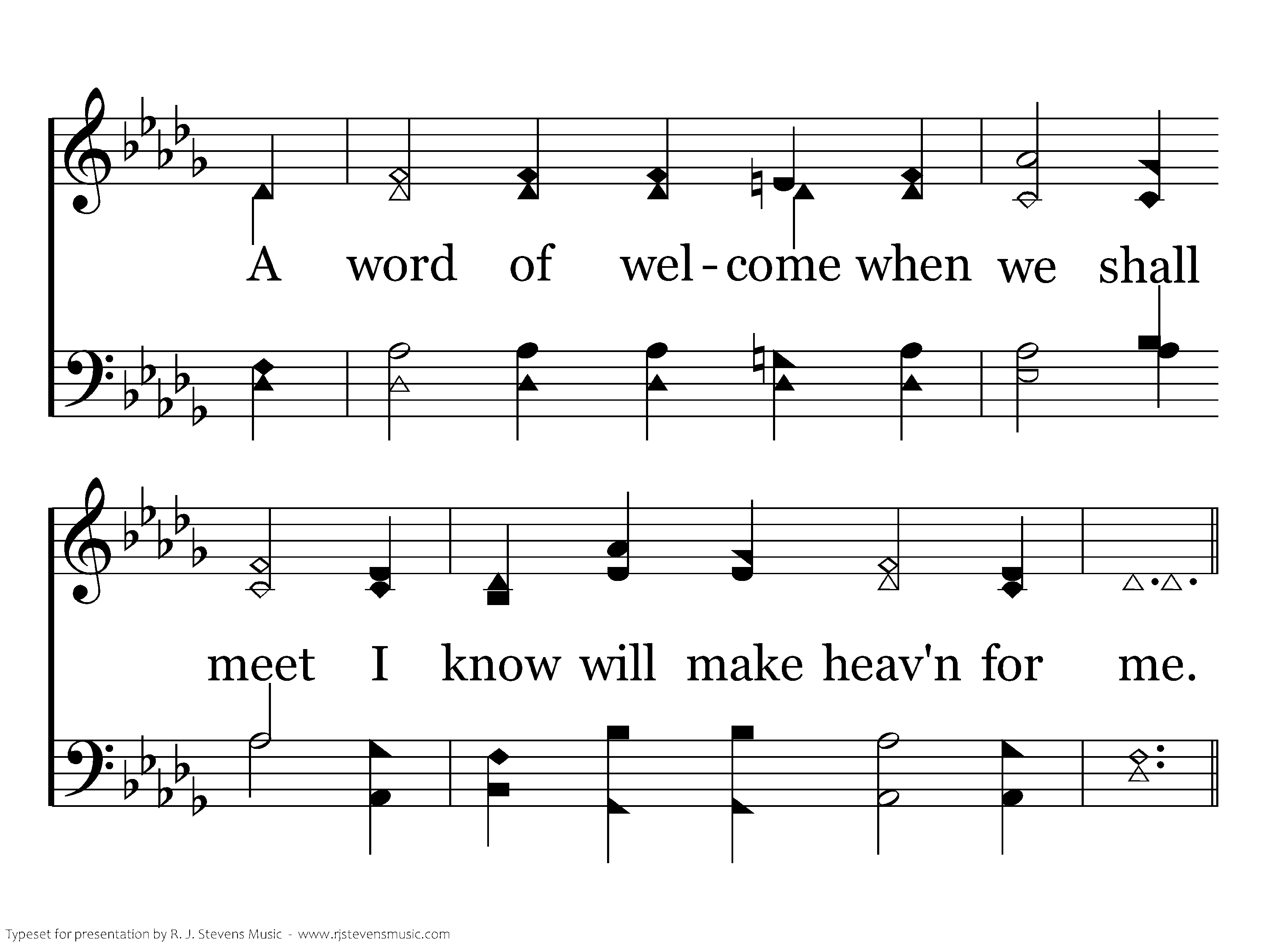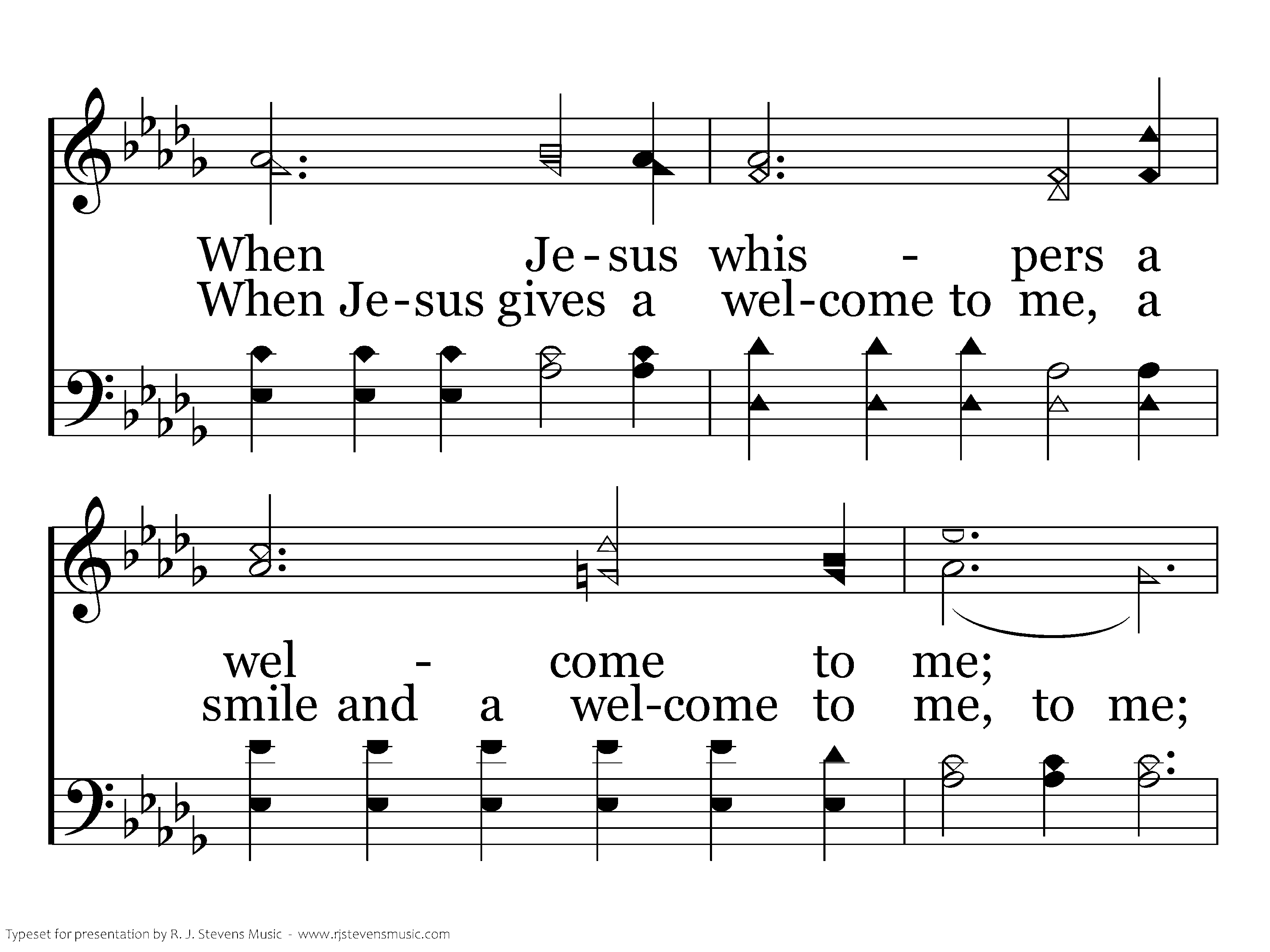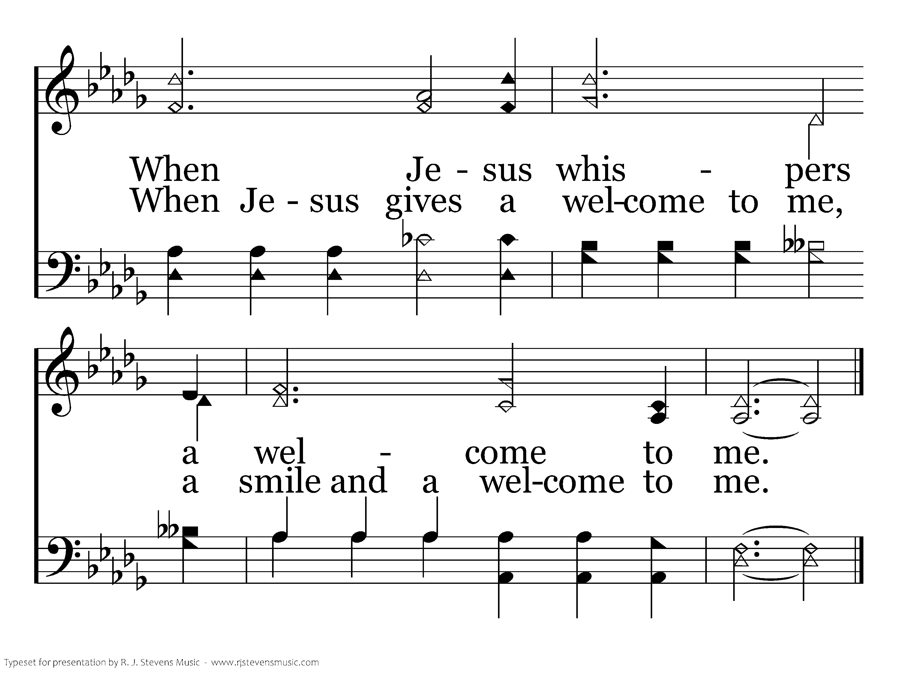 Heaven for me, O, it will be! When Jesus whispers a welcome to me; When Jesus whispers a welcome to me. Heaven for me, O, it will be! When Jesus whispers a welcome to me; When Jesus gives a welcome to me, a smile and a welcome to me.