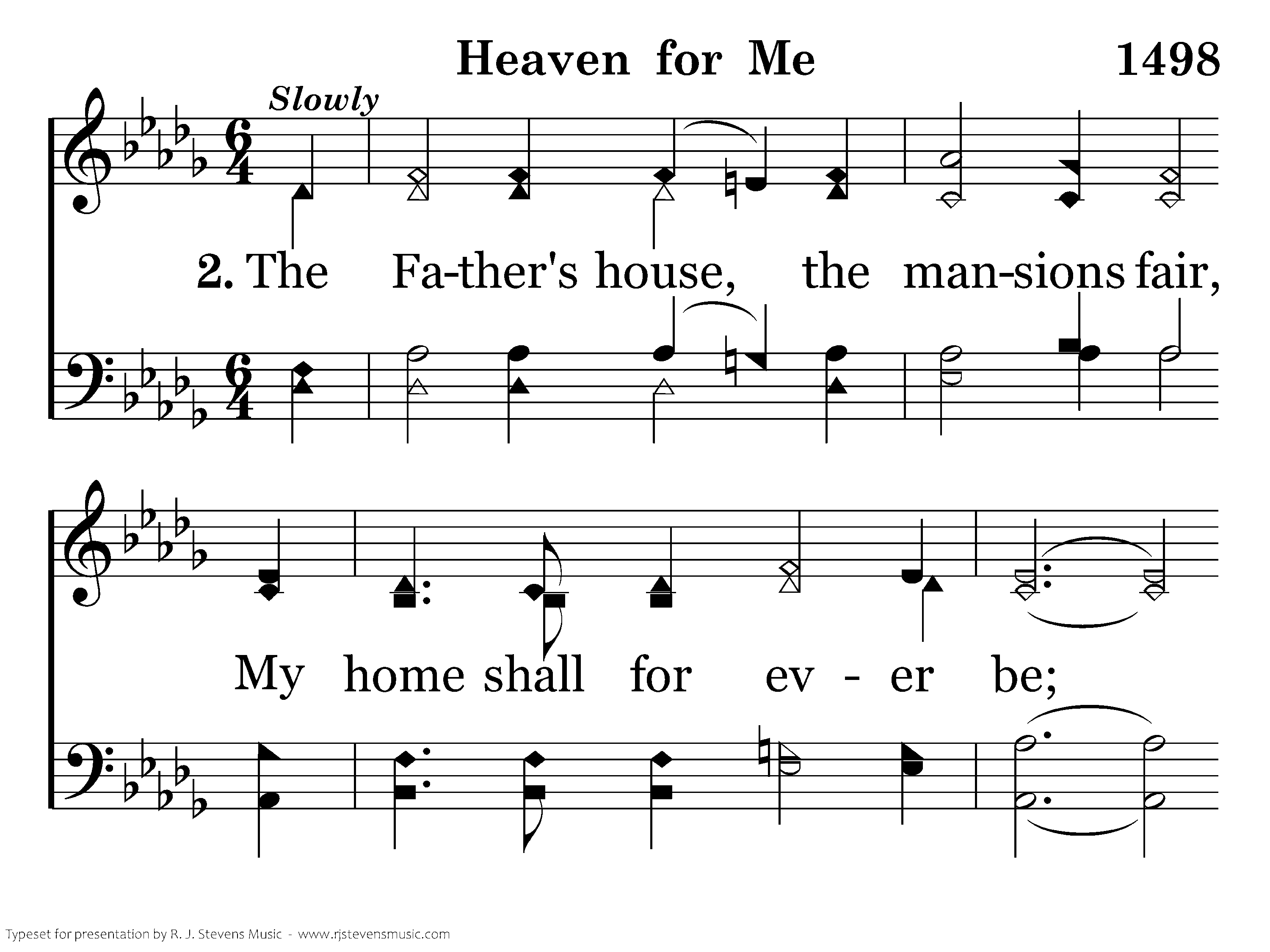 The Father's house, the mansions fair, My home shall for ever be; But one sweet word from the Lord I love I know will make heaven for me.