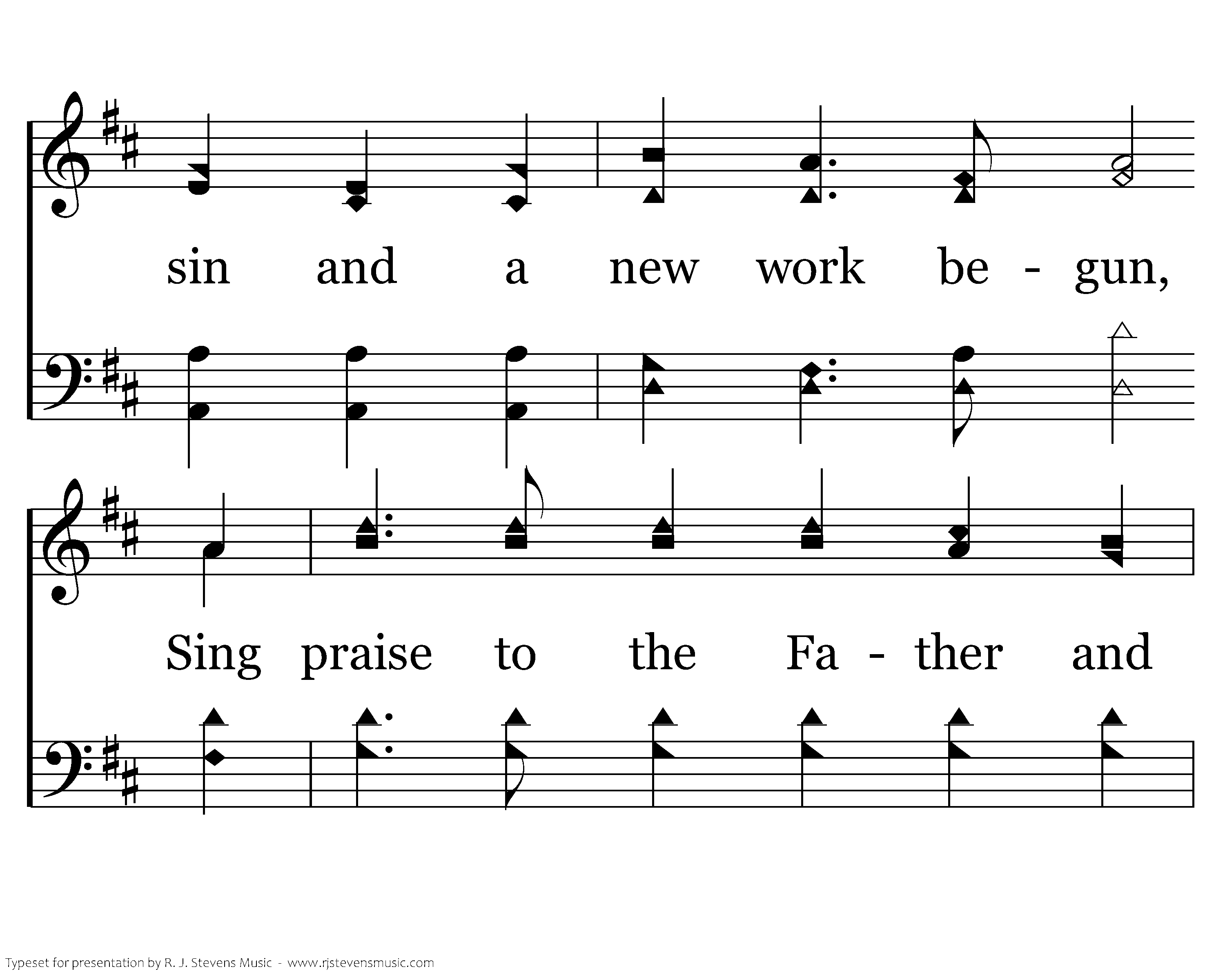 Saved by the blood of the Crucified One! Now ransomed from sin and a new work begun, Sing praise to the Father and praise to the Son, Saved by the blood of the Crucified One!