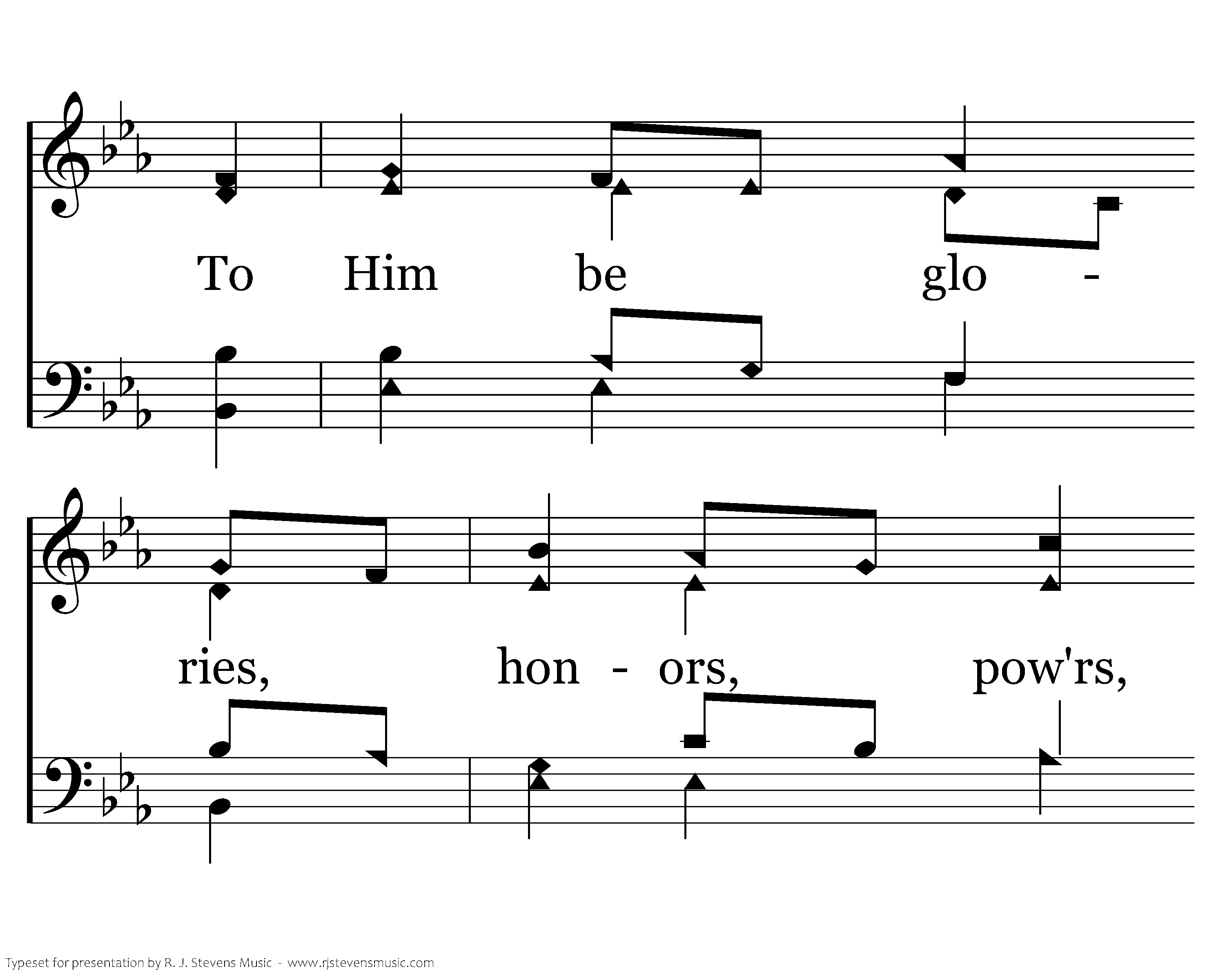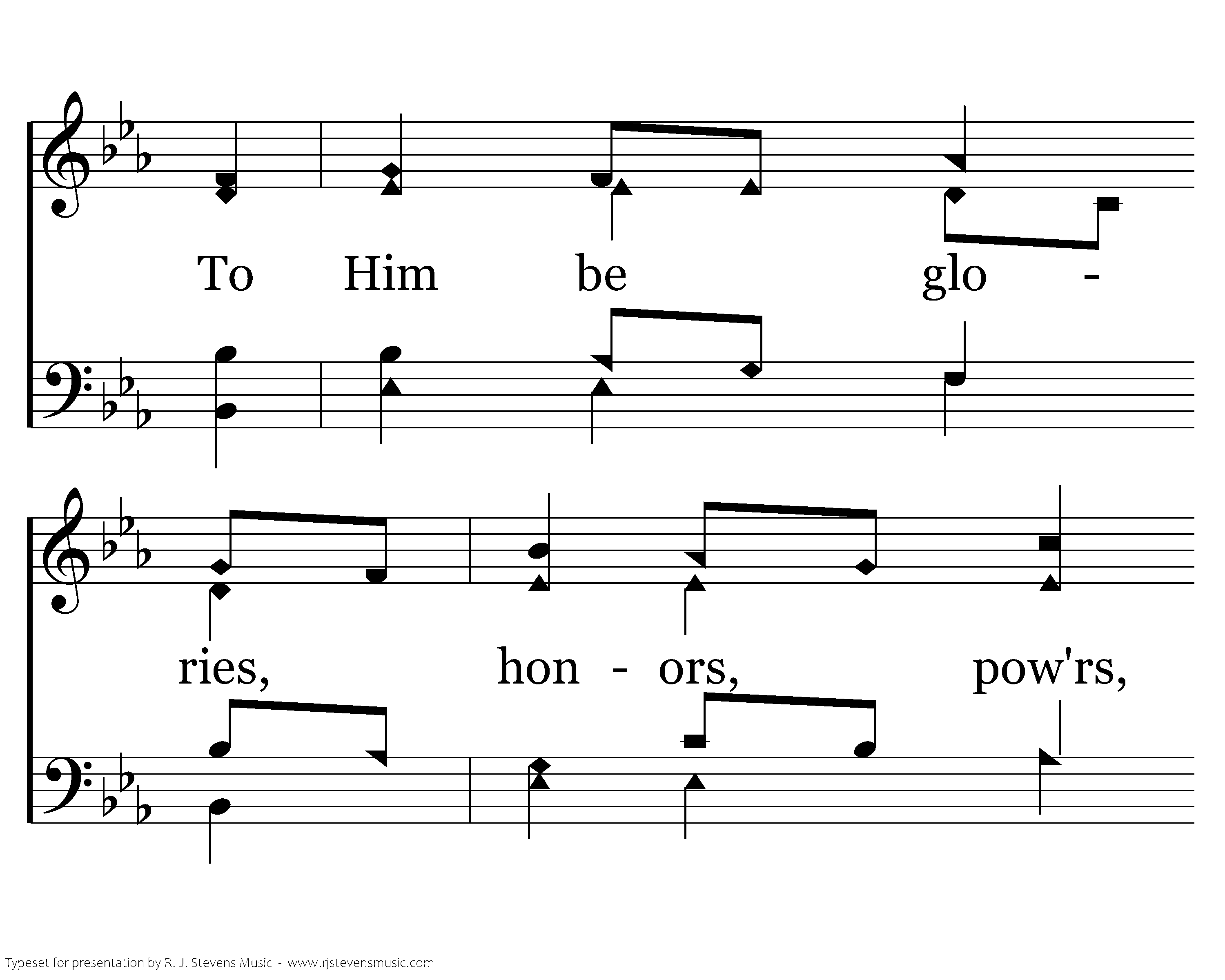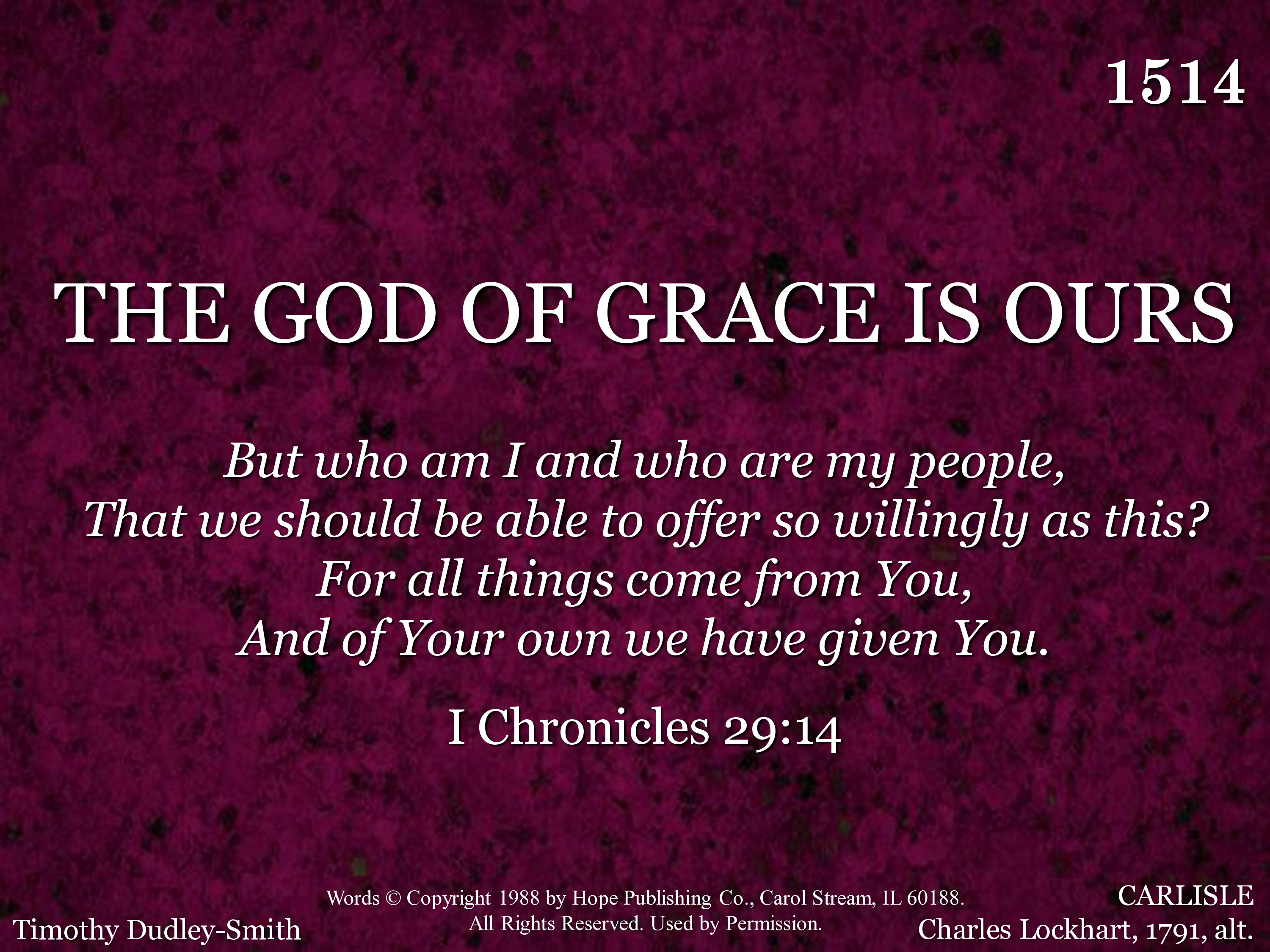 The God of grace is ours; His holy name we praise; To Him be glories, honors, pow'rs, Thru everlasting days.