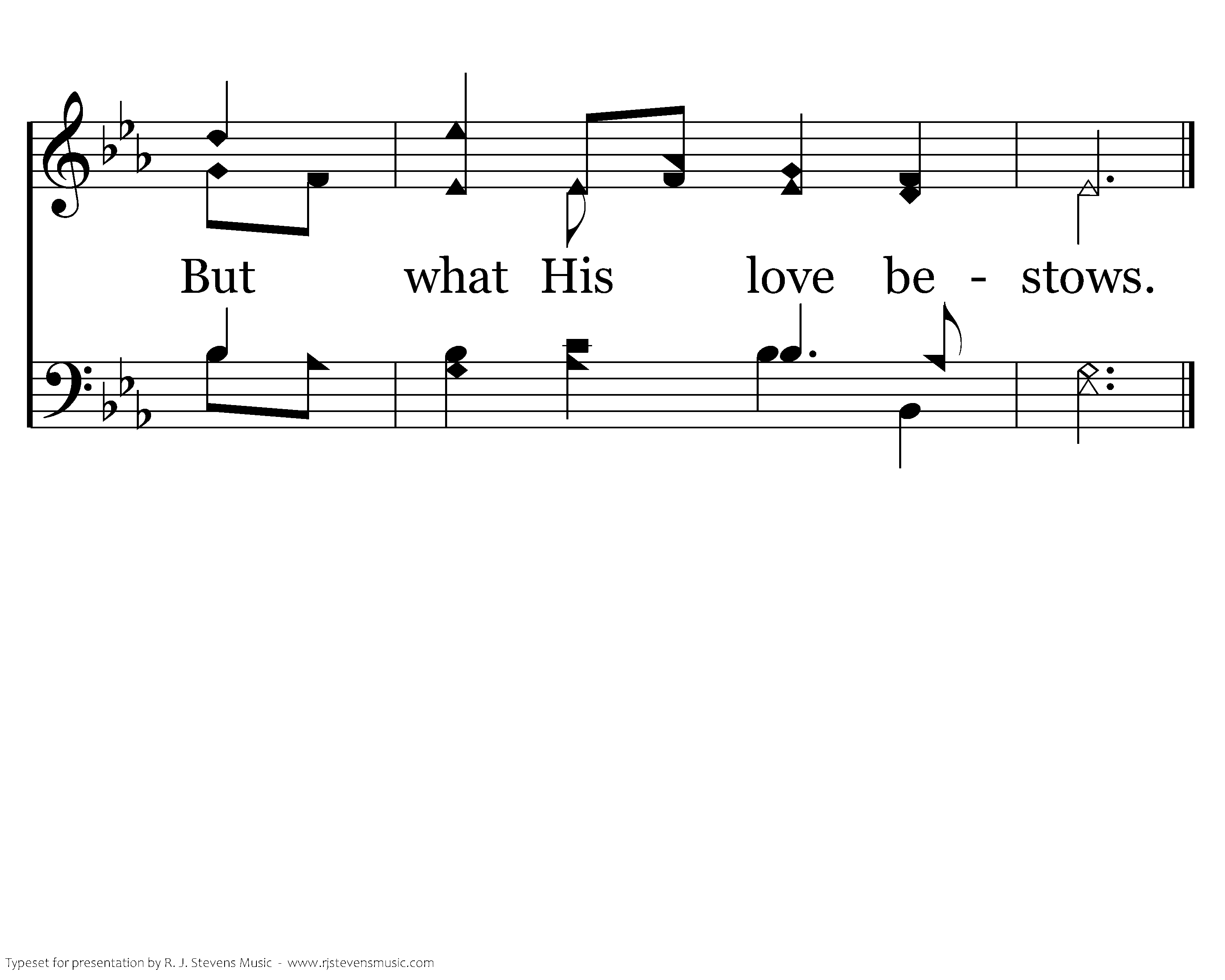 Our good and gracious King– From Him all bounty flows; No other gift is ours to bring But what His love bestows.