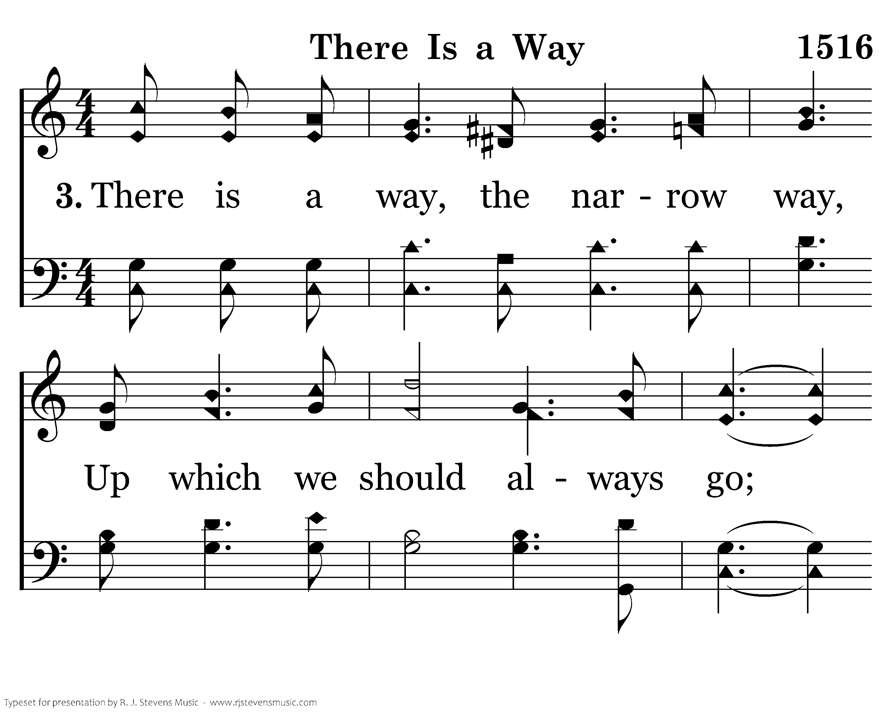 There is a way, the narrow way, Up which we should always go; Enter this way without delay, Joys of the Lord then you'll know.
