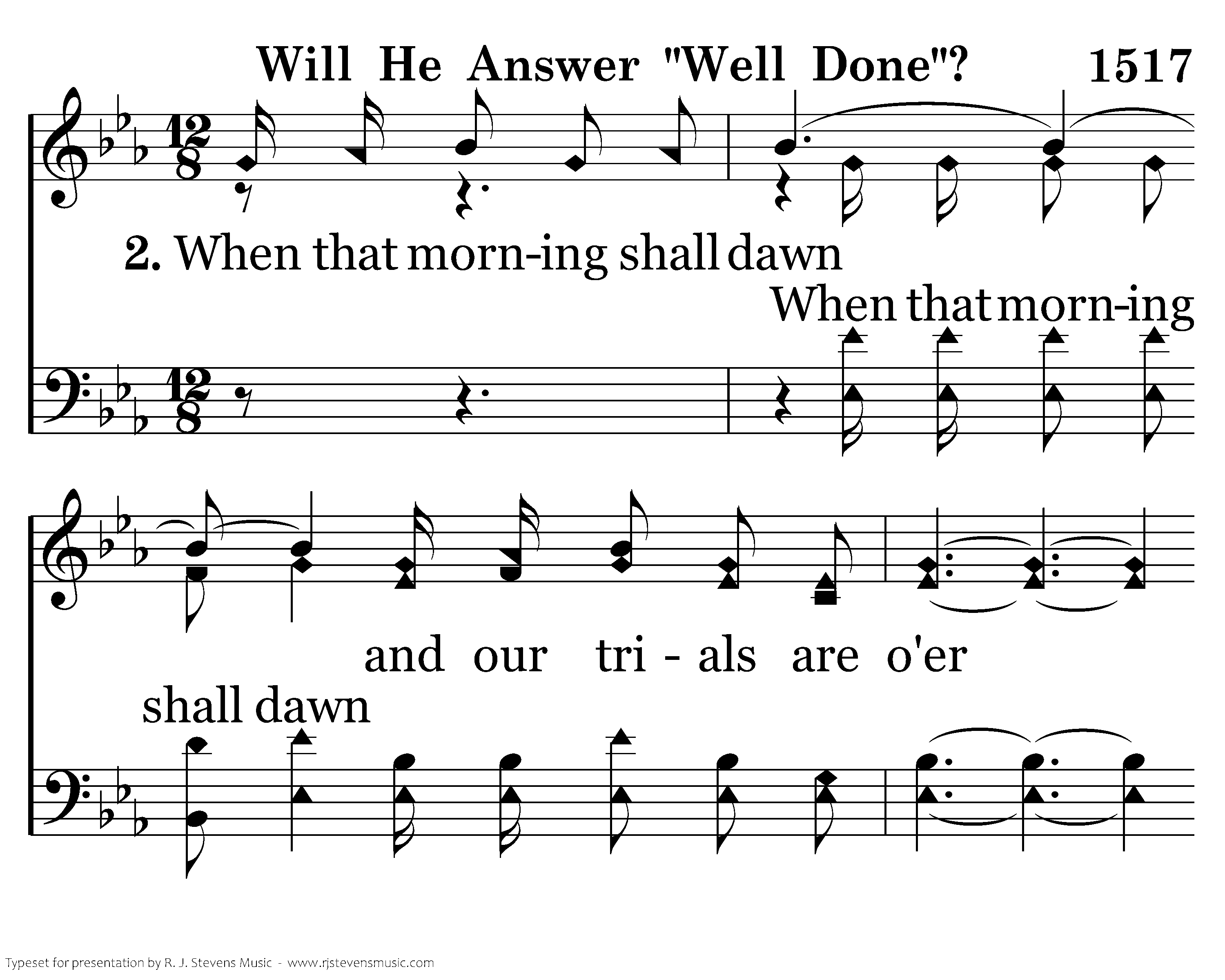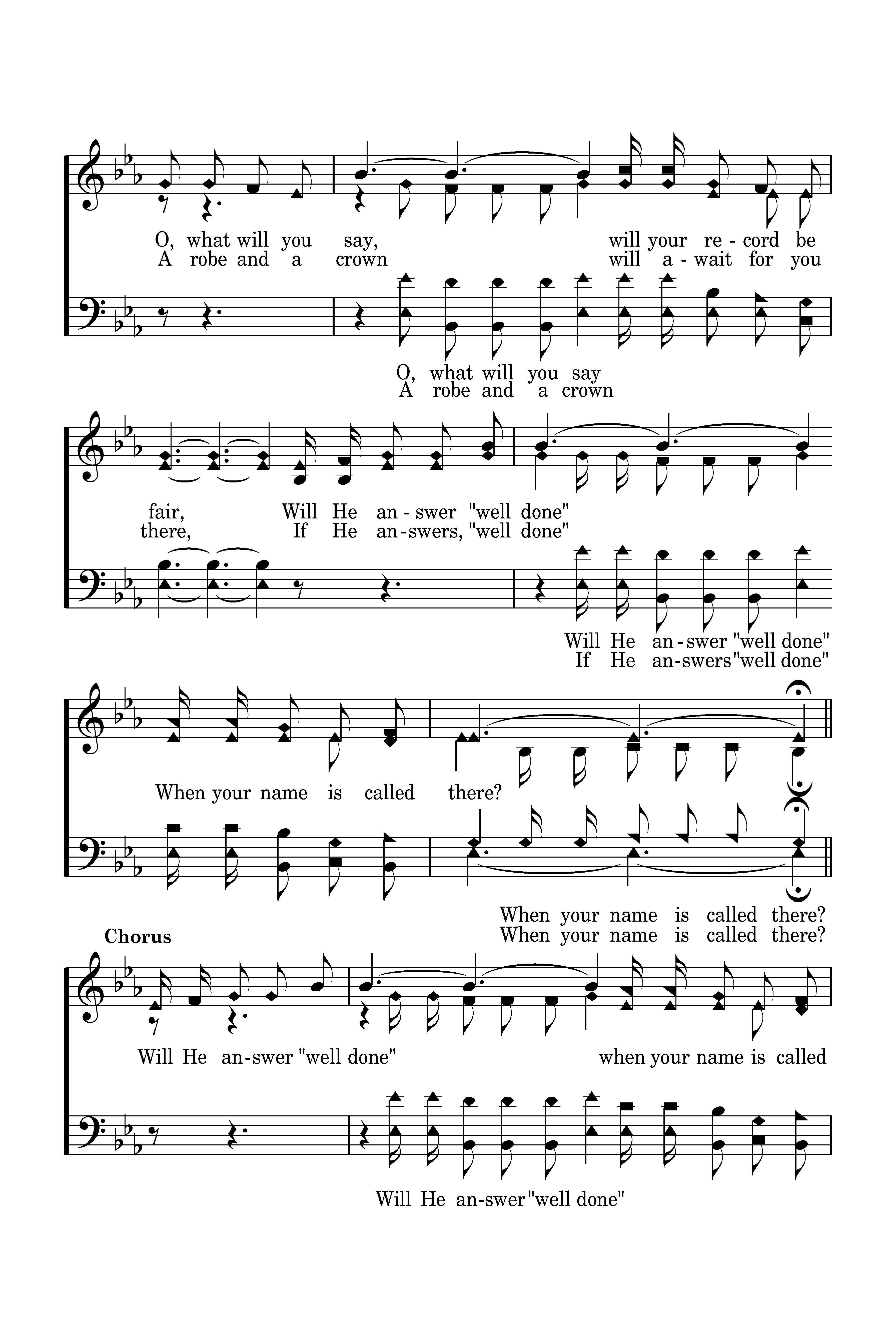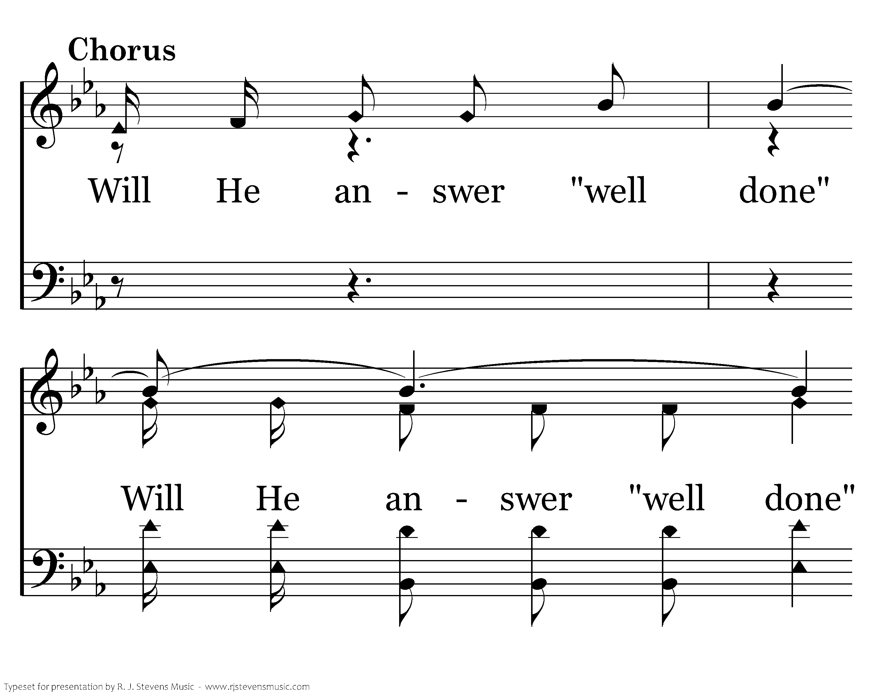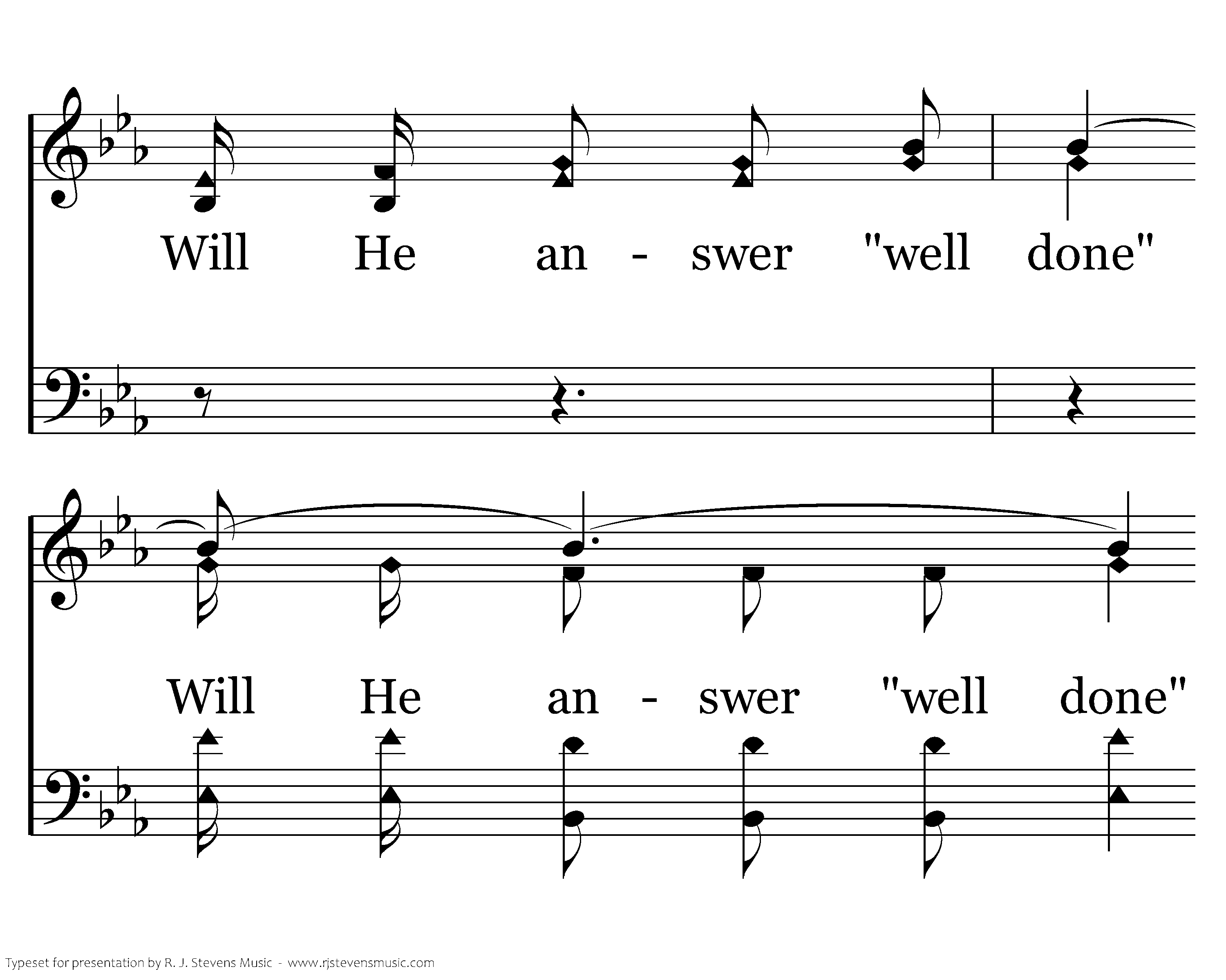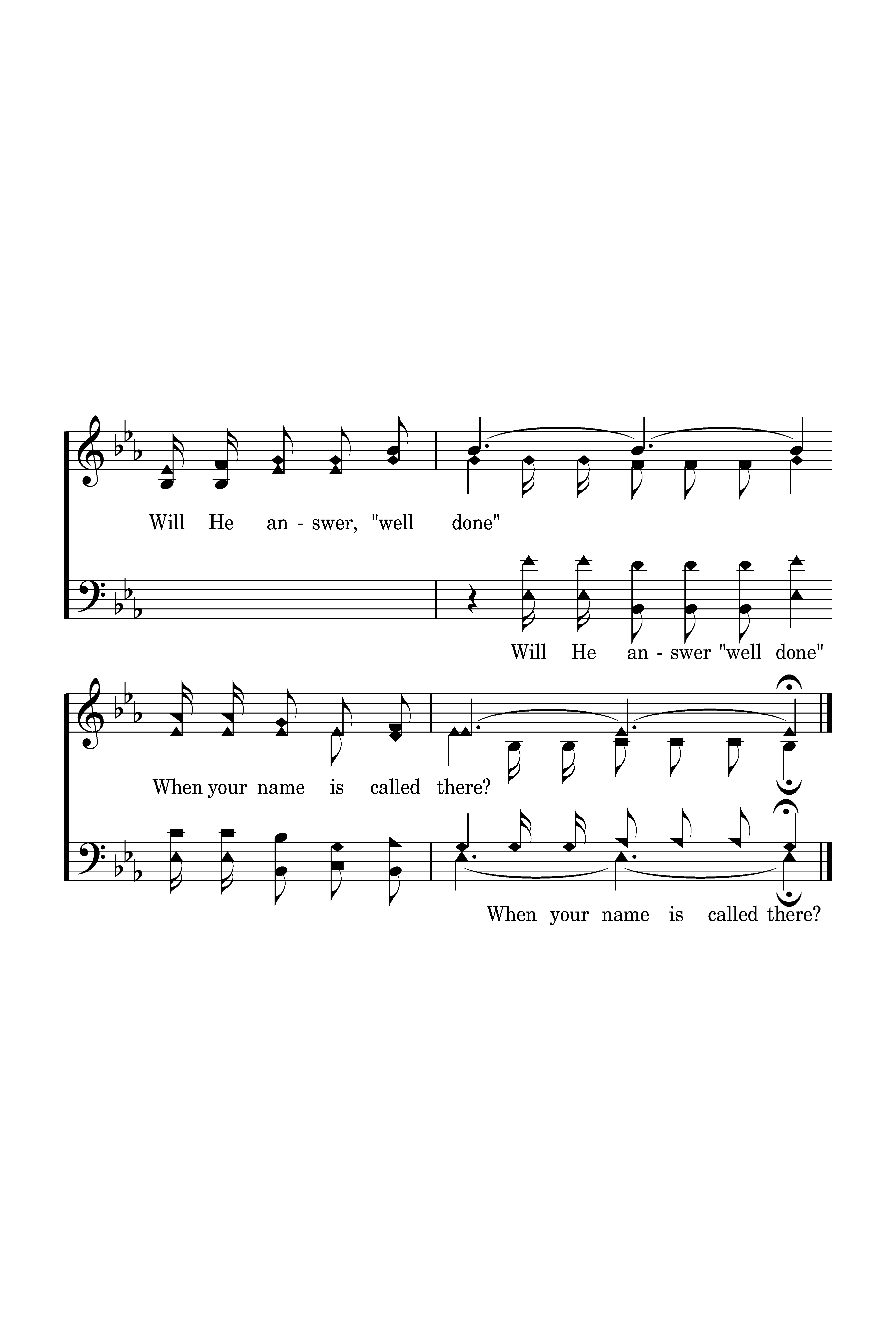 Will He answer "well done" when your name is called there, Will He welcome you home to a mansion so fair? Enter in weary one, you are free from all care. Will He answer, "well done" When your name is called there?
