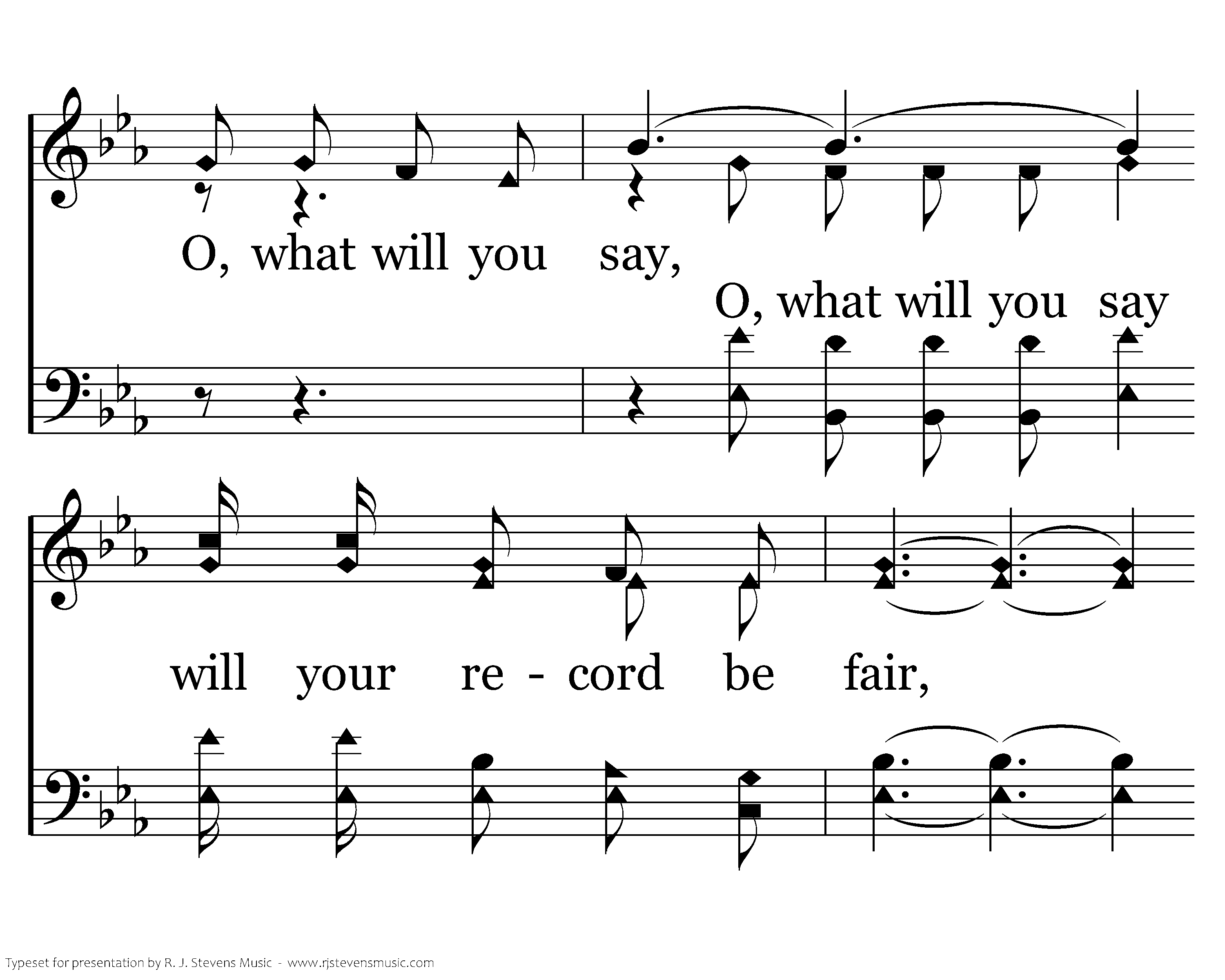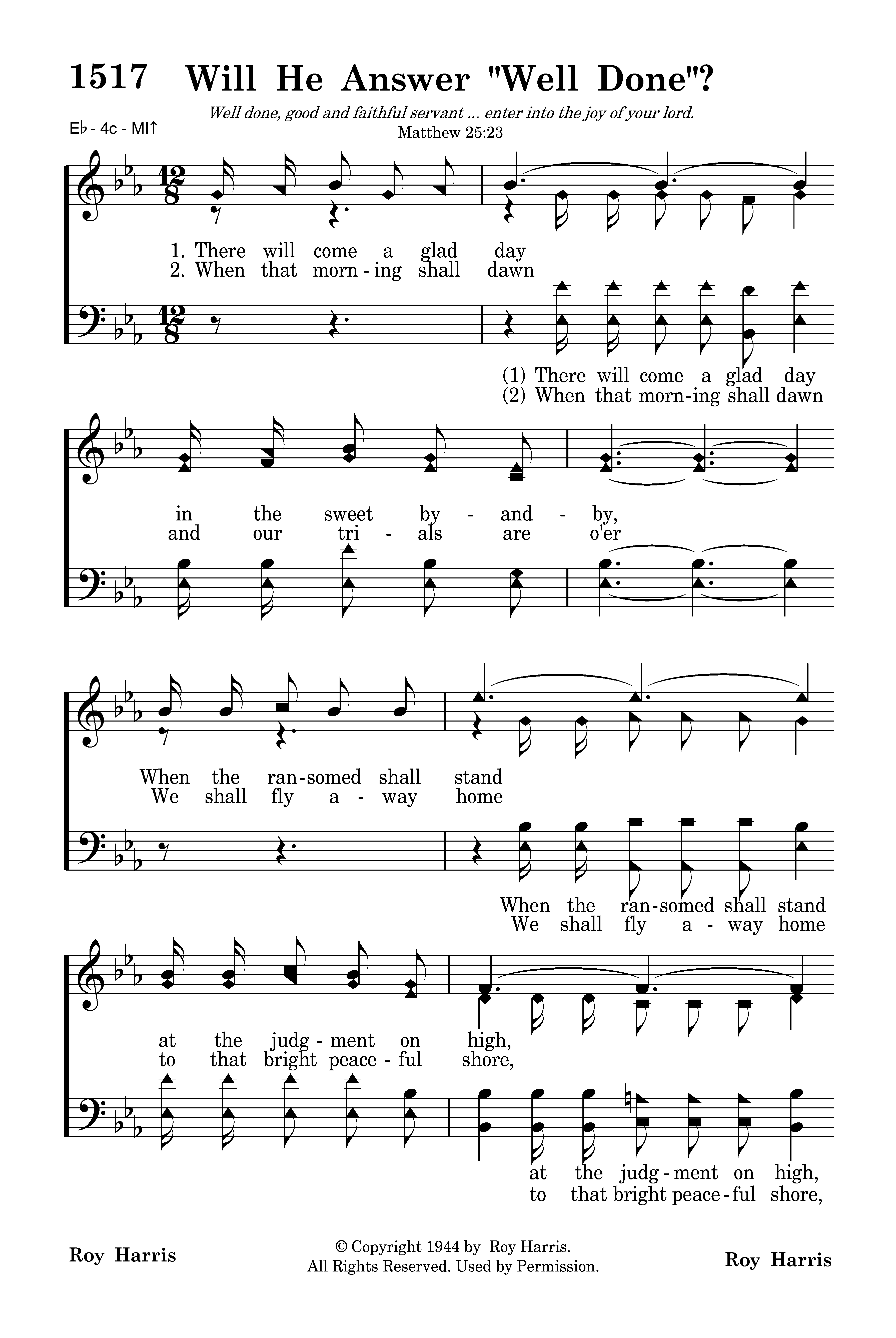 There will come a glad day in the sweet by and by, When the ransomed shall stand at the judgment on high, O, what will you say, will your record be fair, Will He answer "well done"
