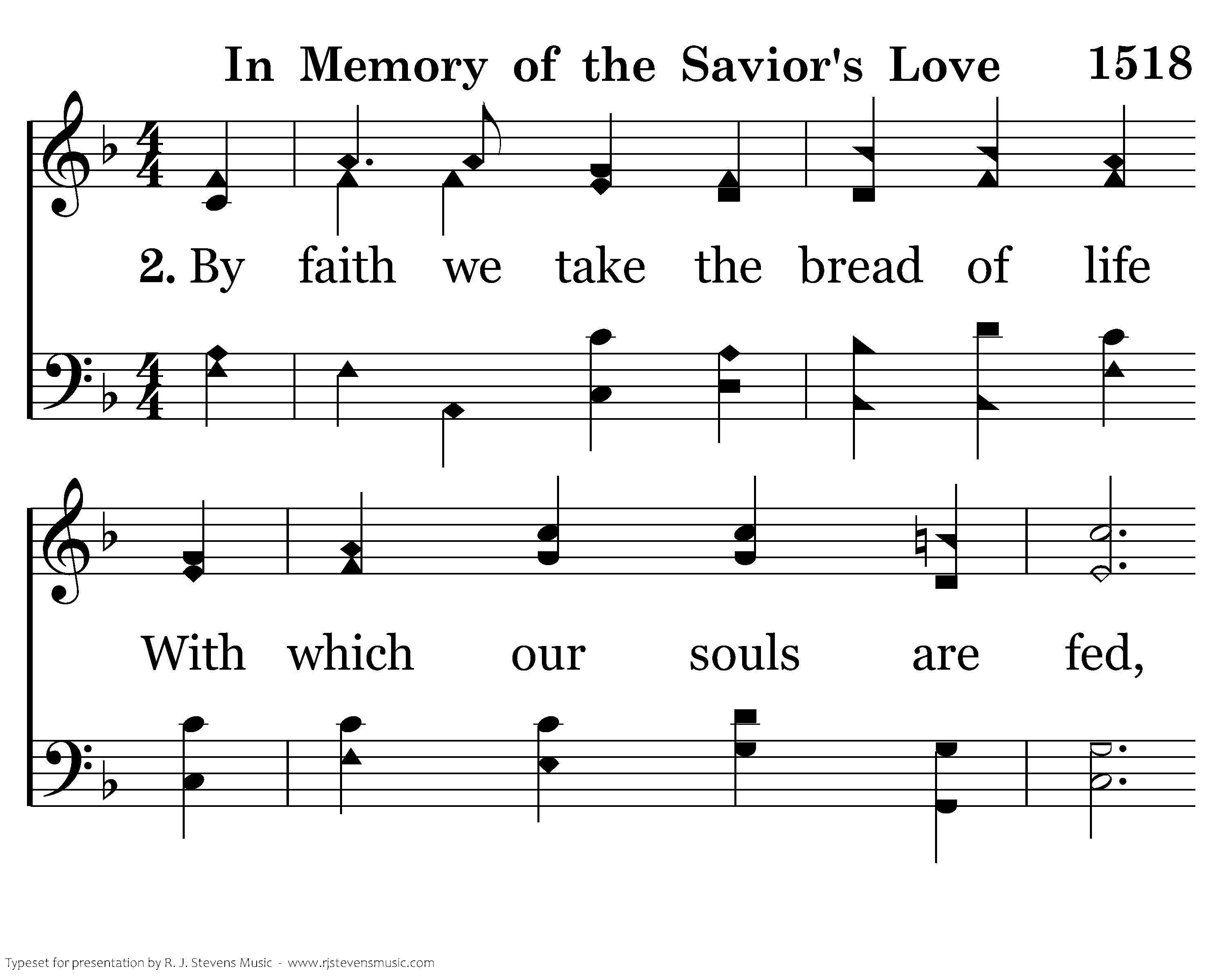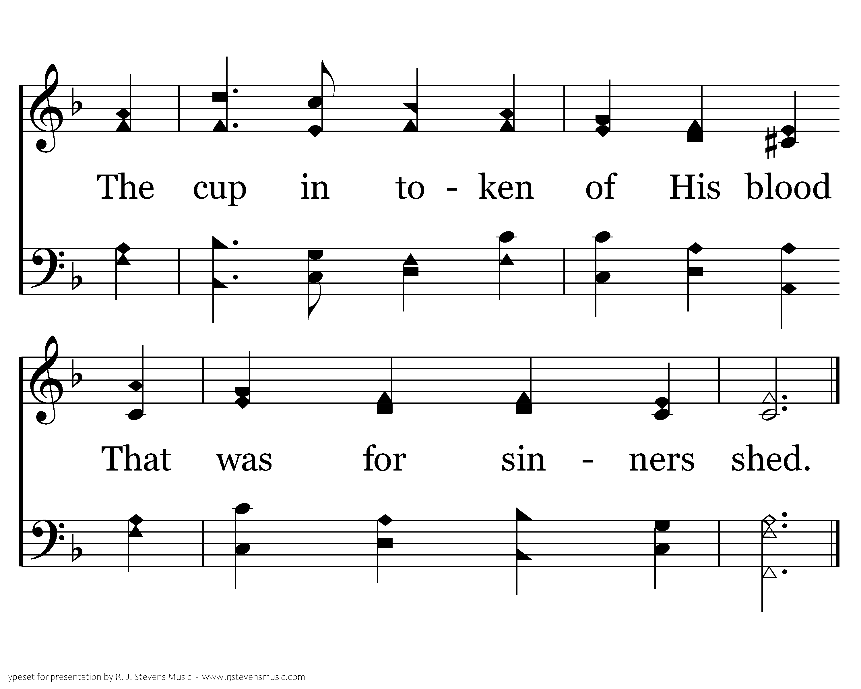 By faith we take the bread of life With which our souls are fed, The cup in token of His blood That was for sinners shed.