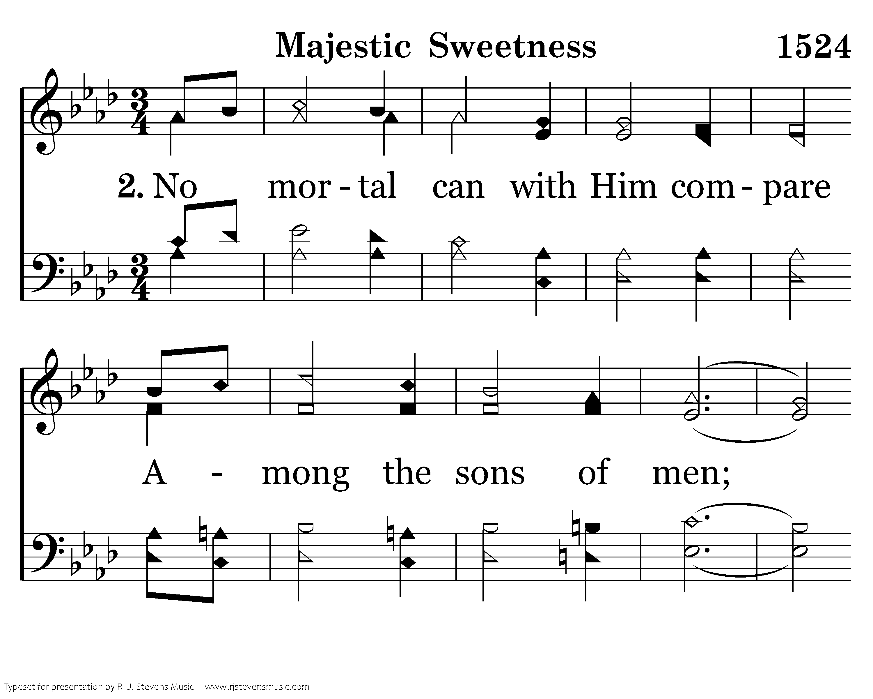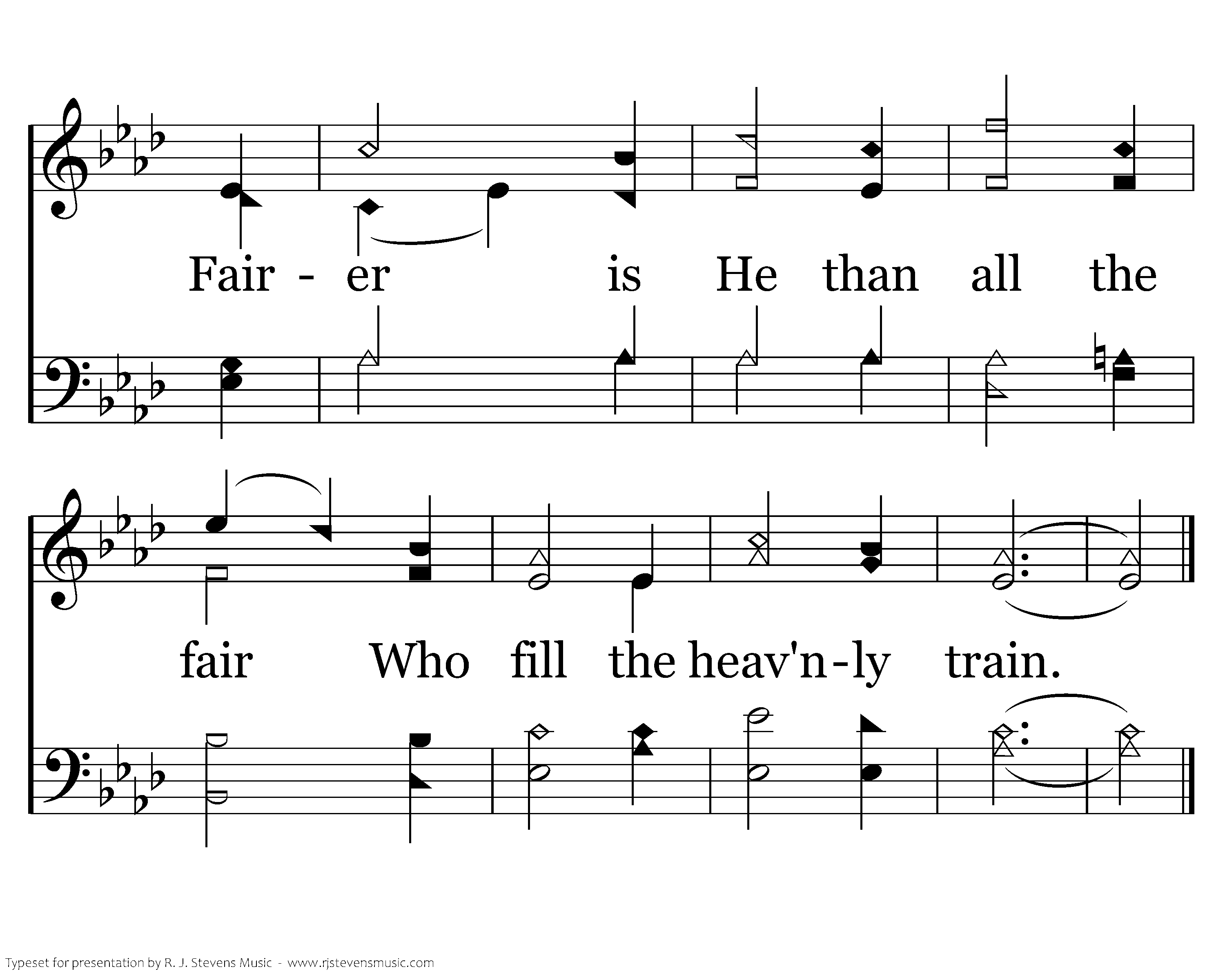 No mortal can with Him compare Among the sons of men; Fairer is He than all the fair Who fill the heav'nly train.