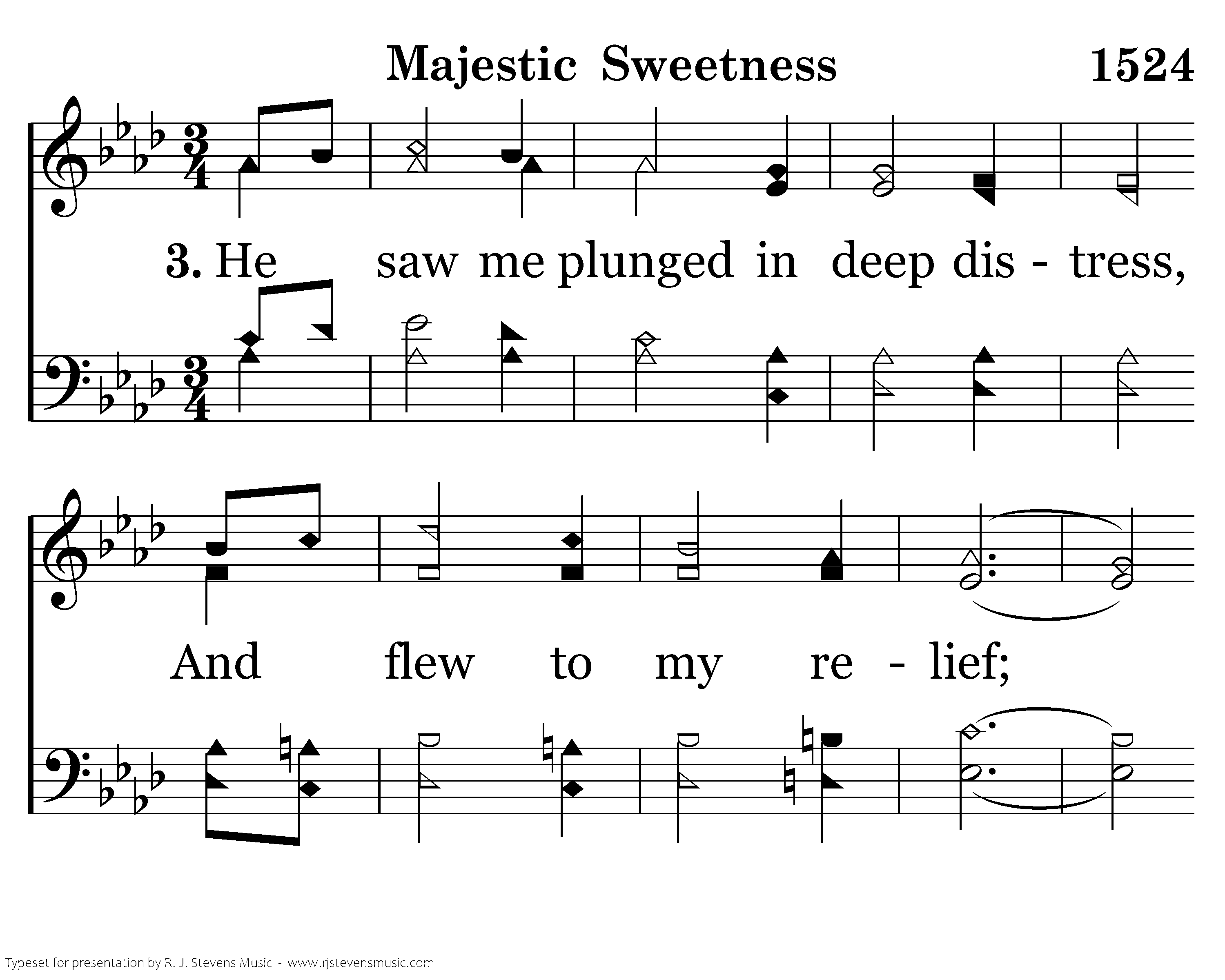 He saw me plunged in deep distress, And flew to my relief; For me He bore the shameful cross, And carried all my grief.