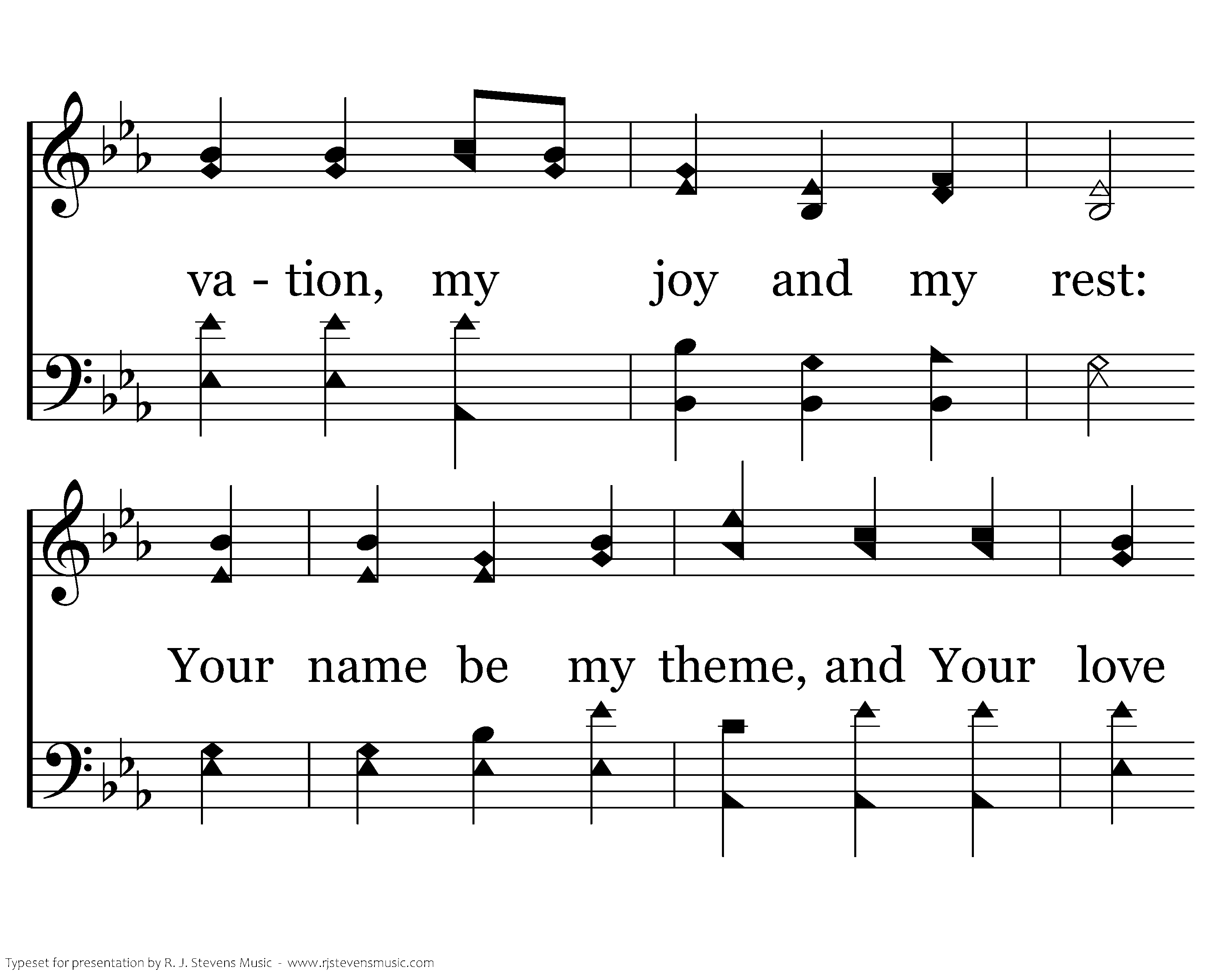 O Jesus, my Savior, with You I am blest, My life and salvation, my joy and my rest: Your name be my theme, and Your love be my song; Your grace shall inspire me and keep my heart strong.