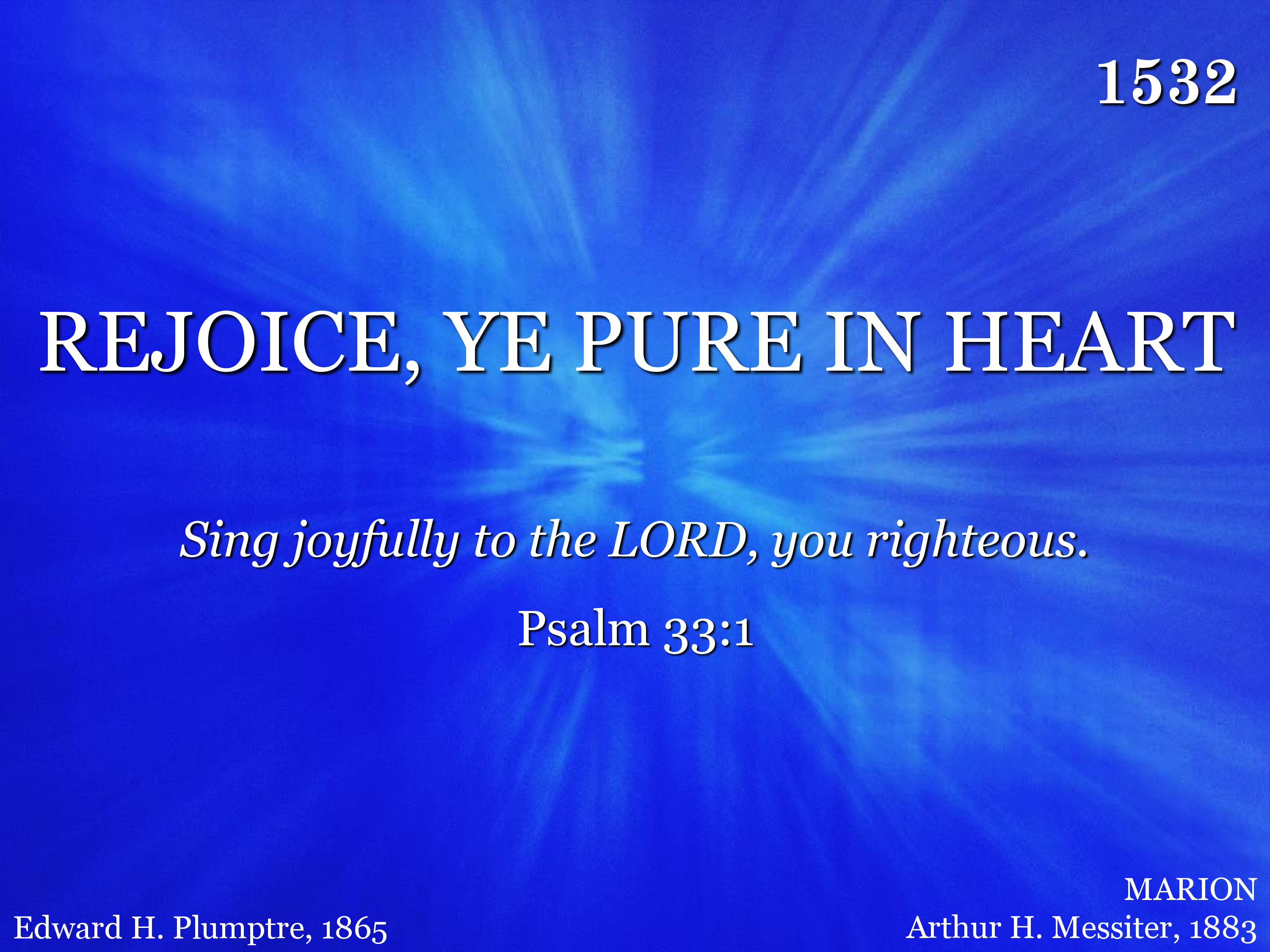 Rejoice, ye pure in heart, Rejoice, give thanks and sing; Your festal banner wave on high, The cross of Christ your King.