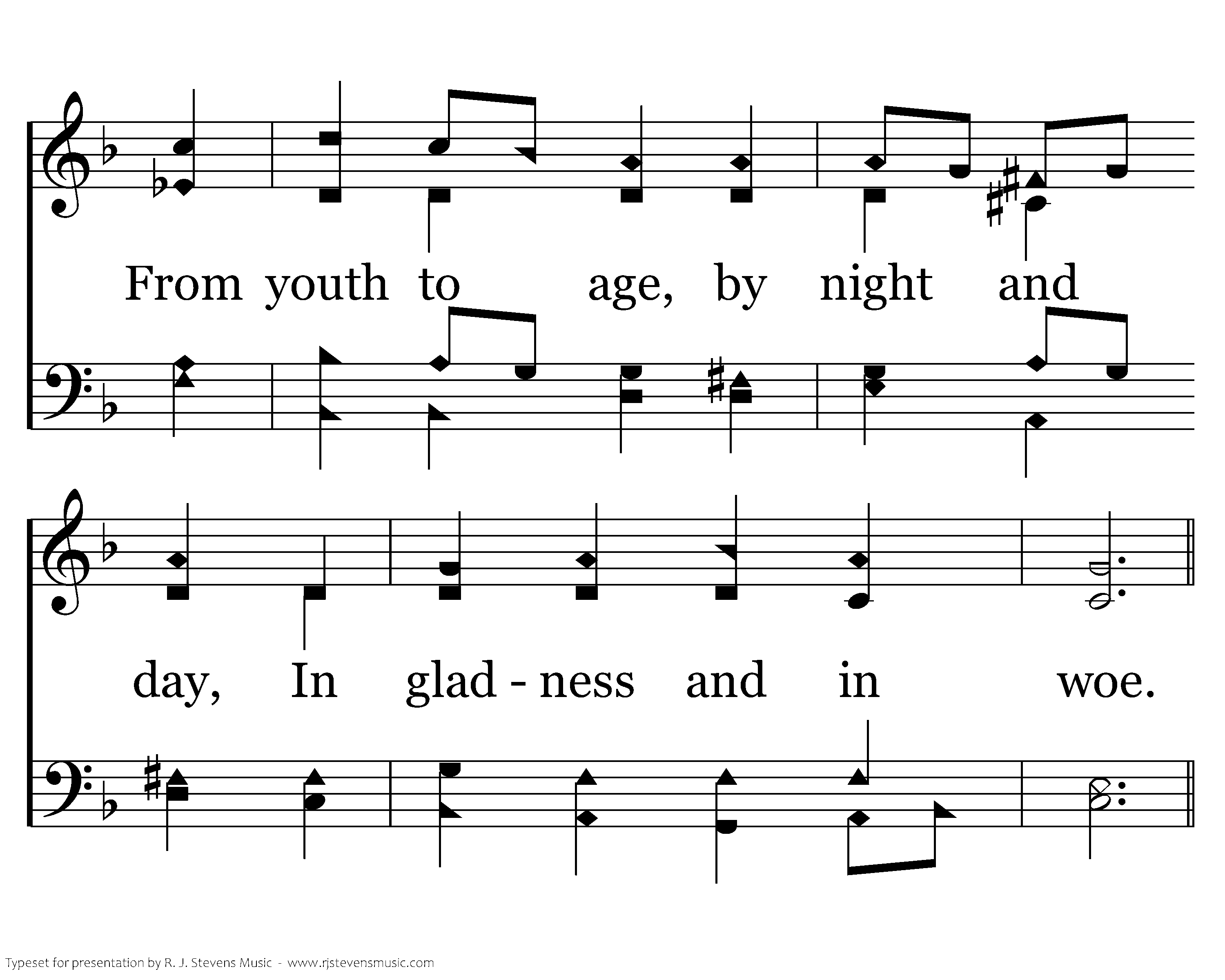Yes, on thru life's long path, Still chanting as ye go; From youth to age, by night and day, In gladness and in woe.