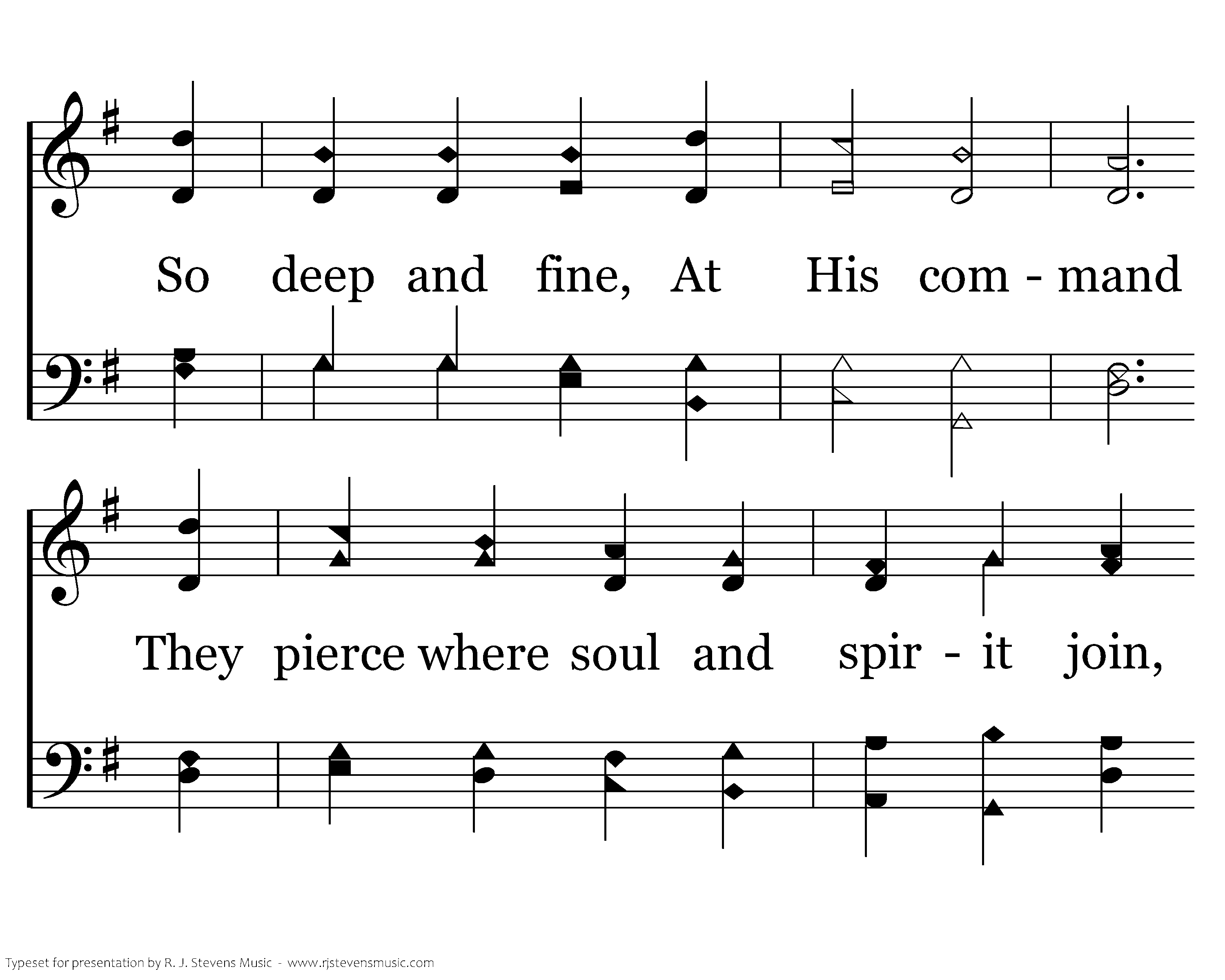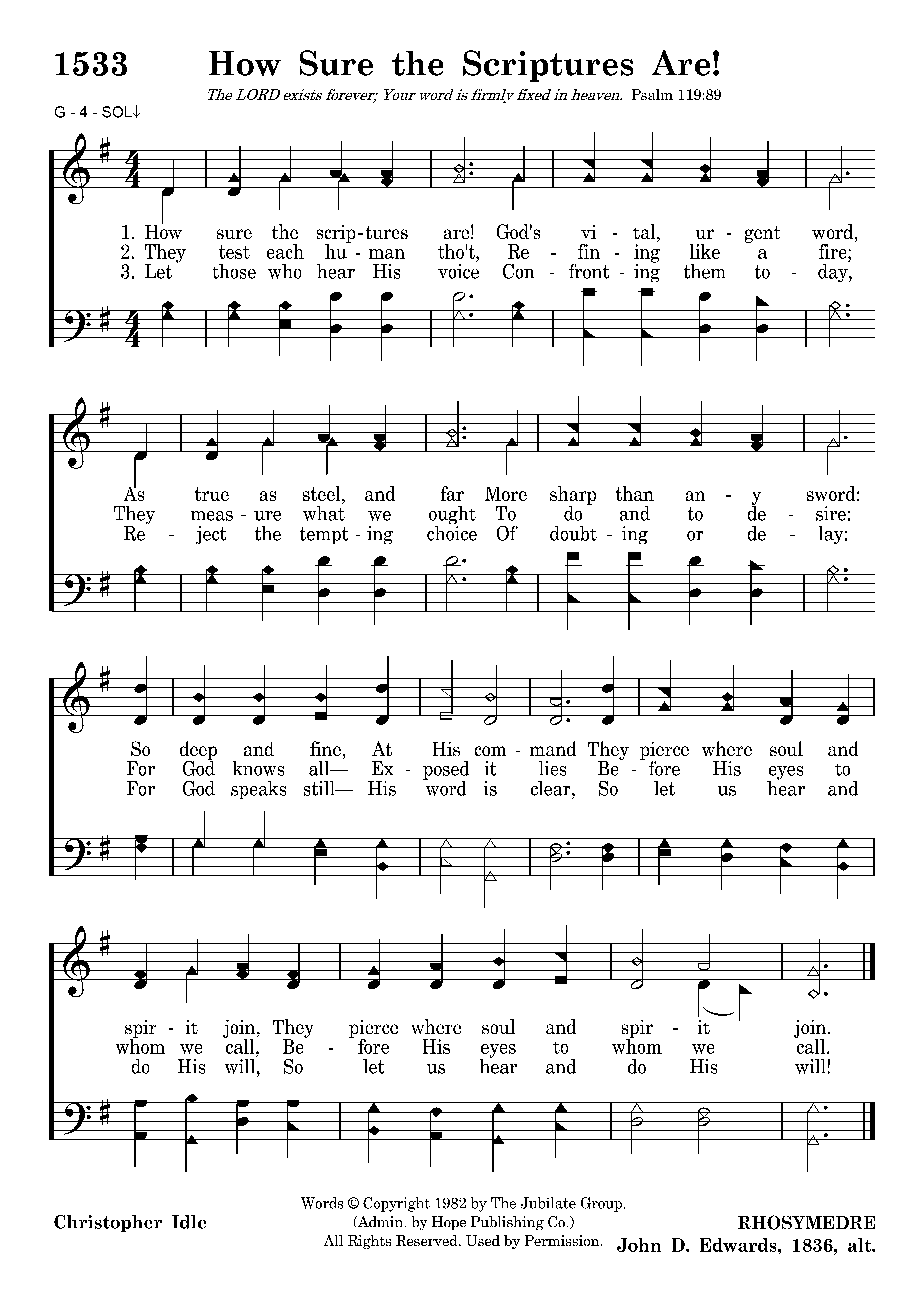 How sure the scriptures are! God's vital, urgent word, As true as steel, and far More sharp than any sword: So deep and fine, At His command They pierce where soul and spirit join, They pierce where soul and spirit join.