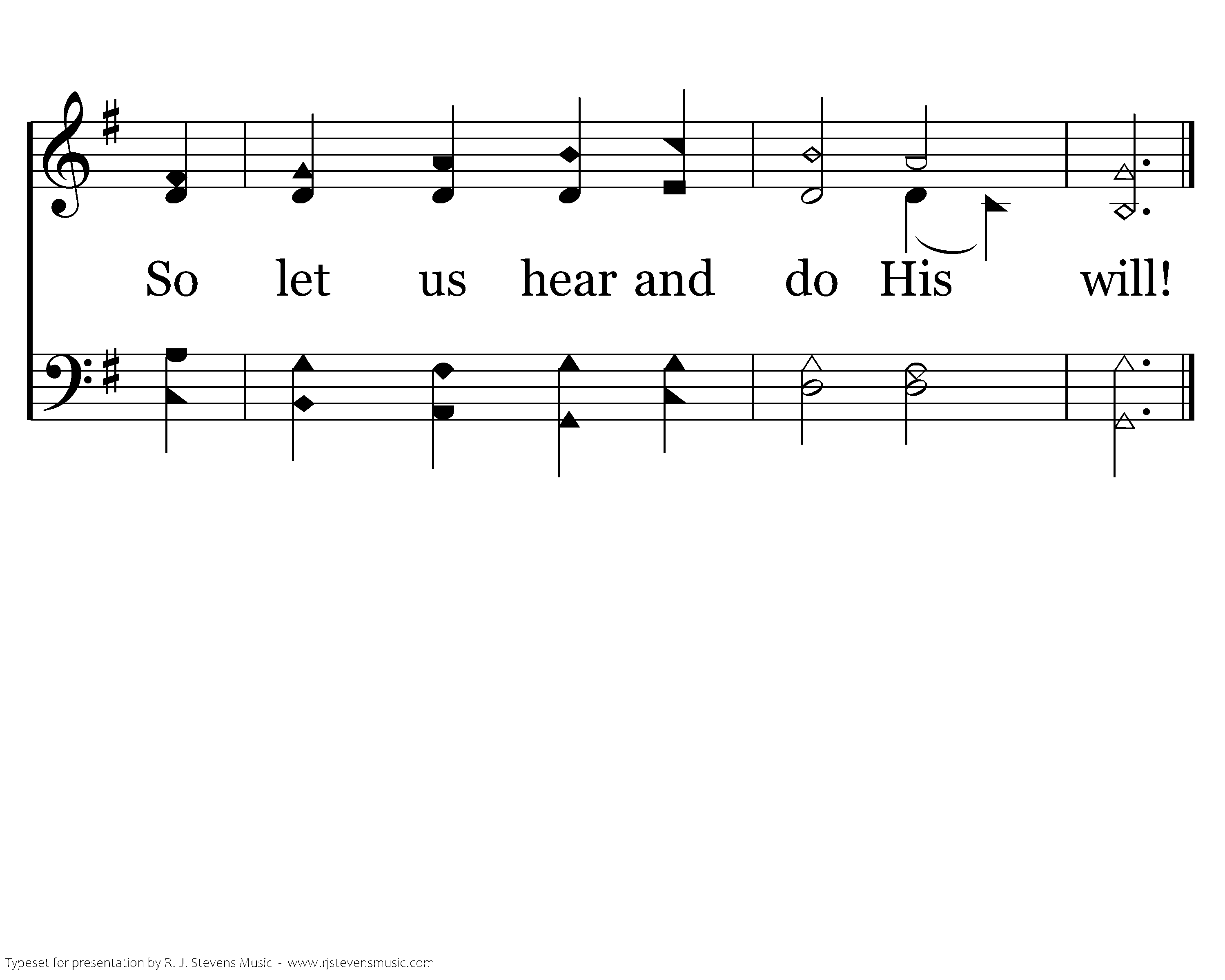 Let those who hear His voice Confronting them today, Reject the tempting choice Of doubting or delay: For God speaks still— His word is clear, So let us hear and do His will, So let us hear and do His will!