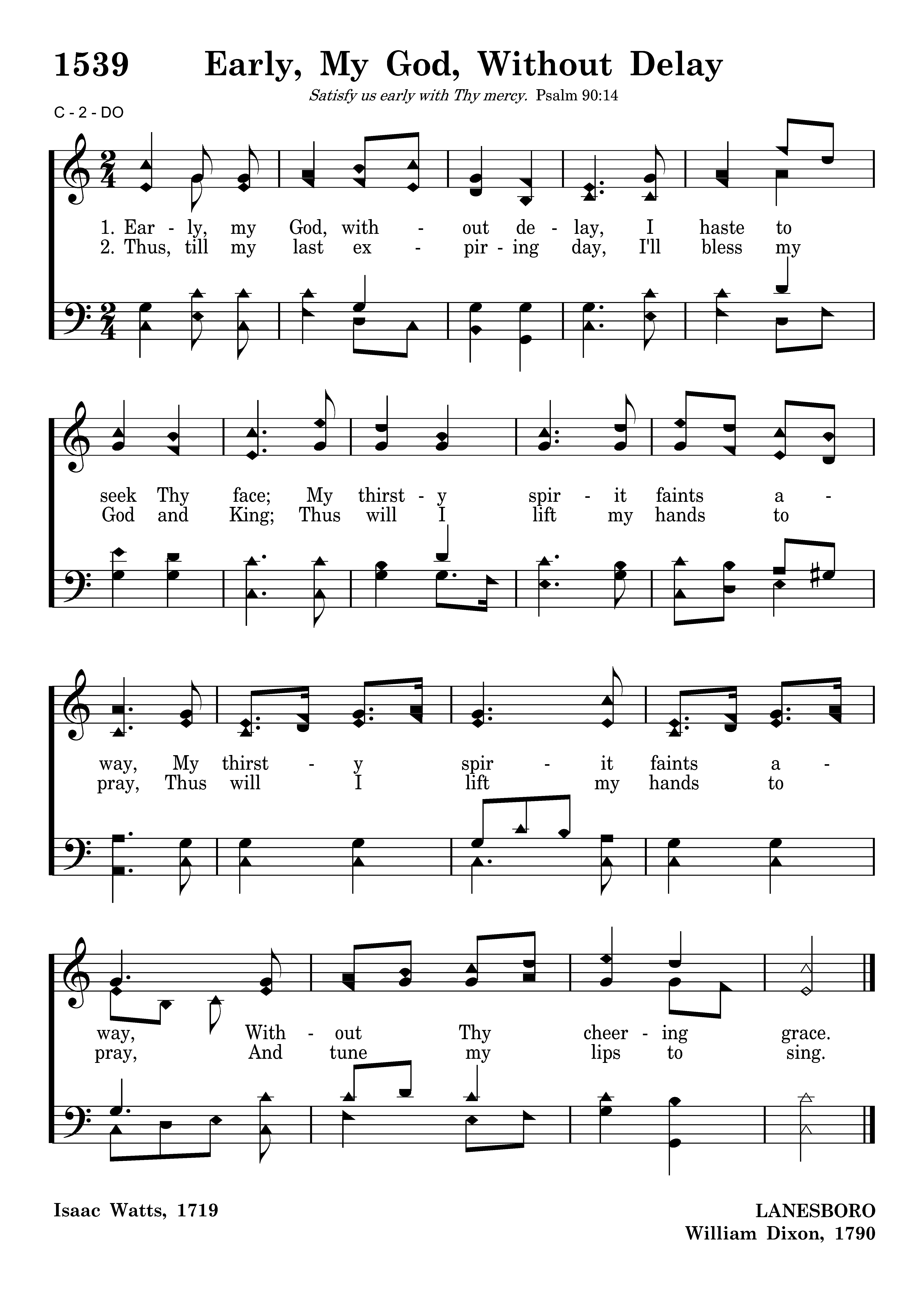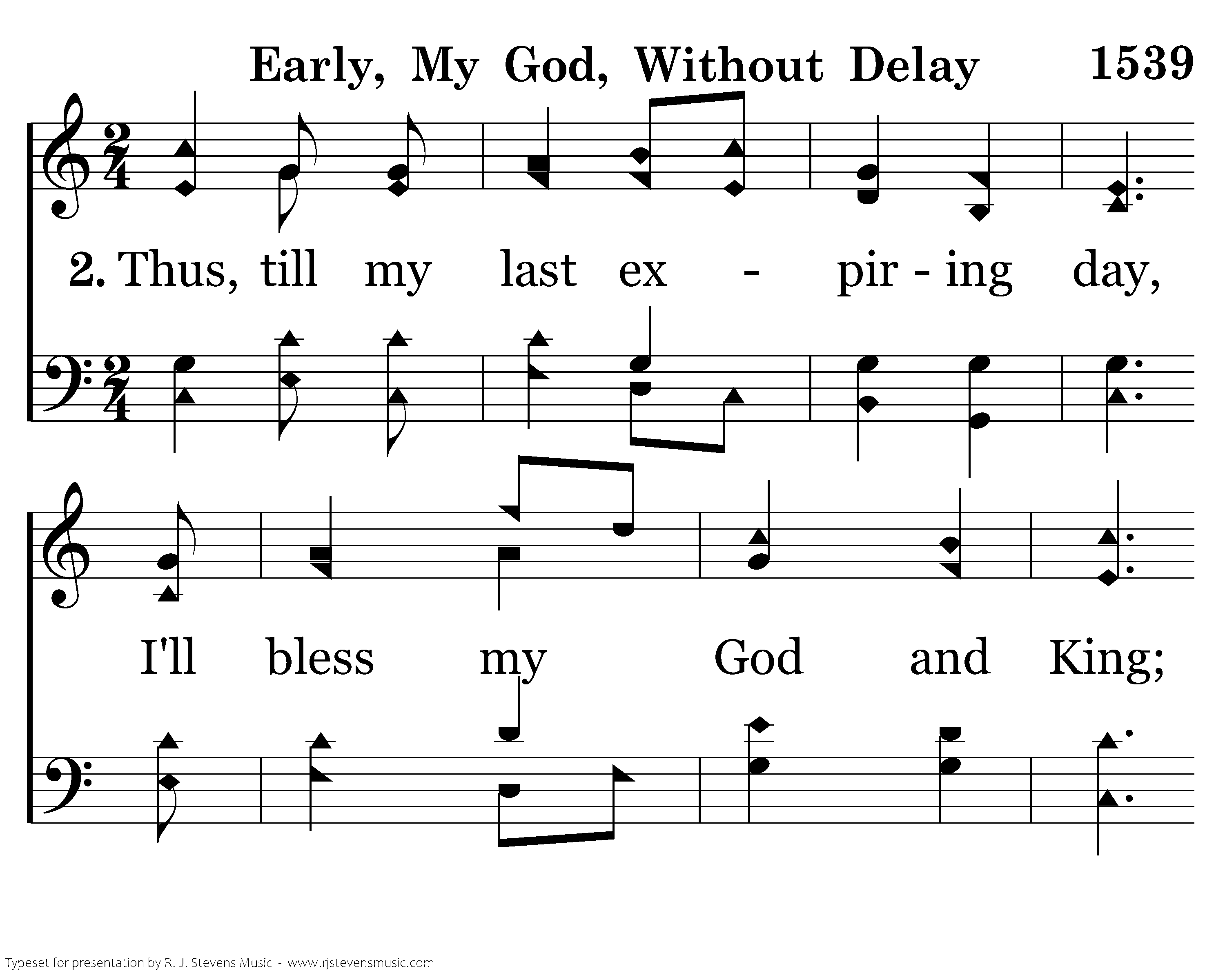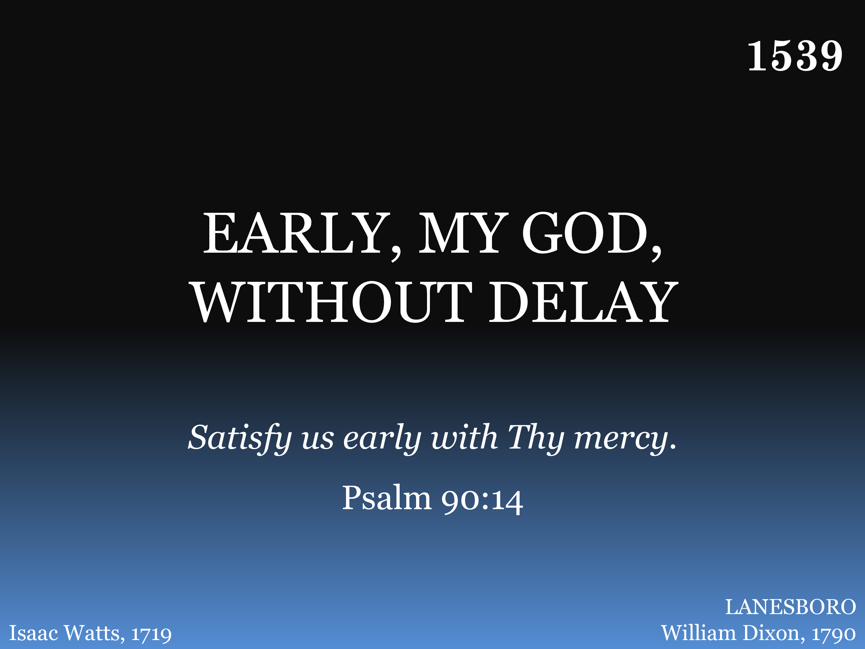 Early, my God, without delay, I haste to seek Thy face; My thirsty spirit faints away, My thirsty spirit faints away, Without Thy cheering grace.