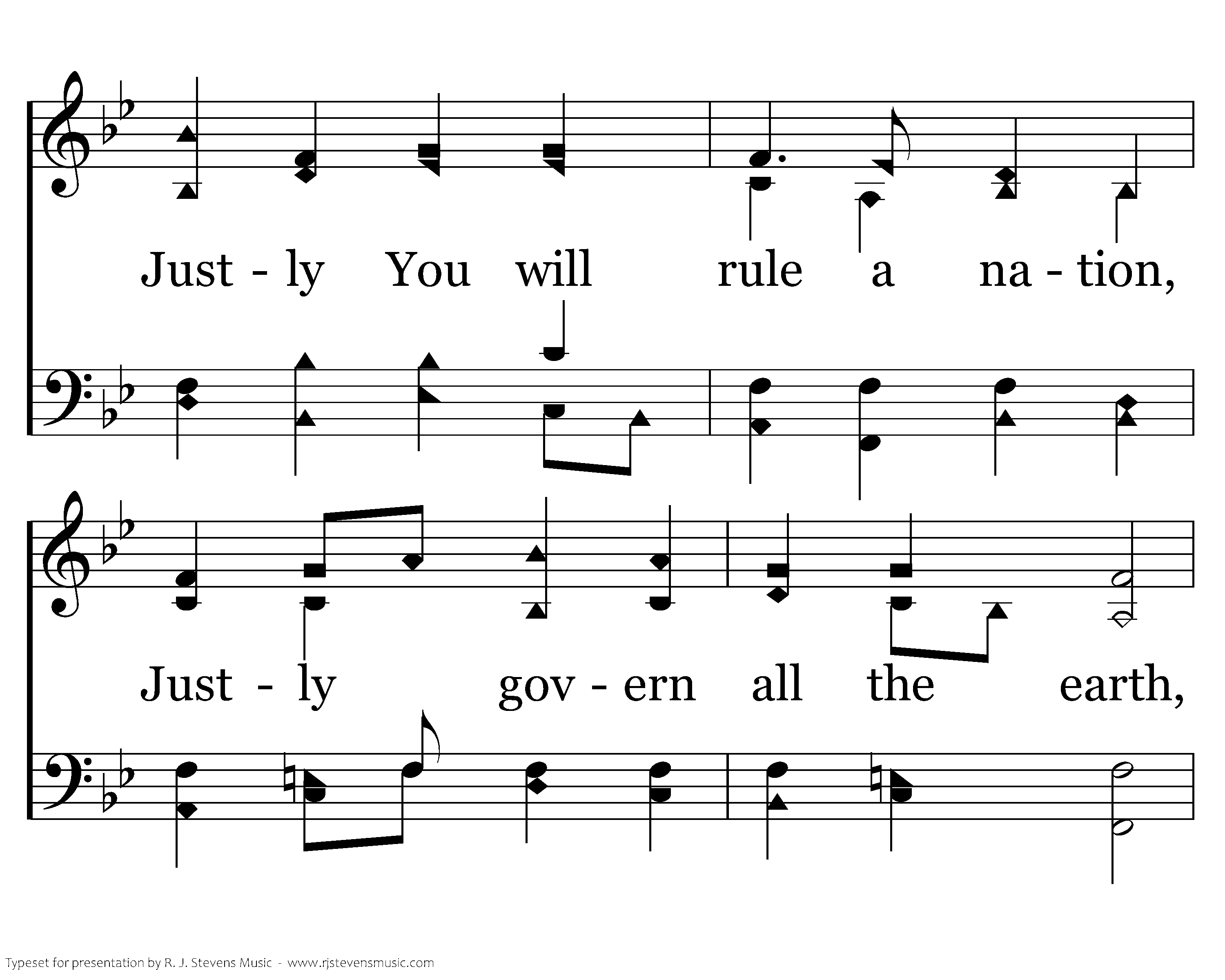 Let them all with jubilation Sing Your greatness and Your worth; Justly You will rule a nation, Justly govern all the earth, Let the people's voices raise, LORD, to You their hymns of praise.
