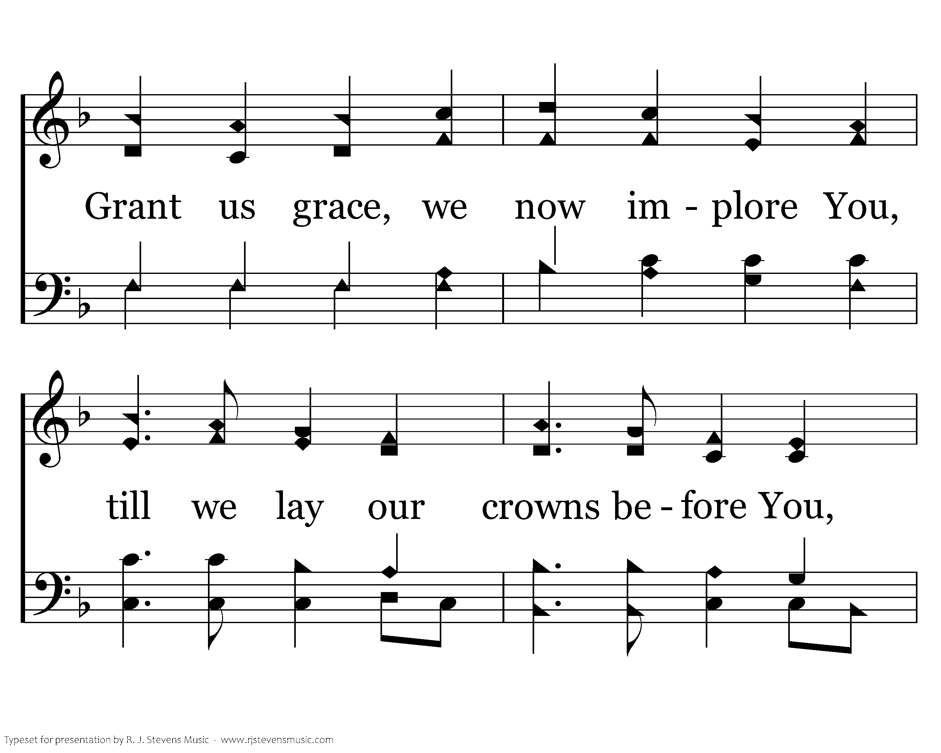 Holy Father, throned in heaven, all holy Son, Holy Spirit, freely given, blest Three in One. Grant us grace, we now implore You, till we lay our crowns before You, And in worth'er strains adore You while ages run.