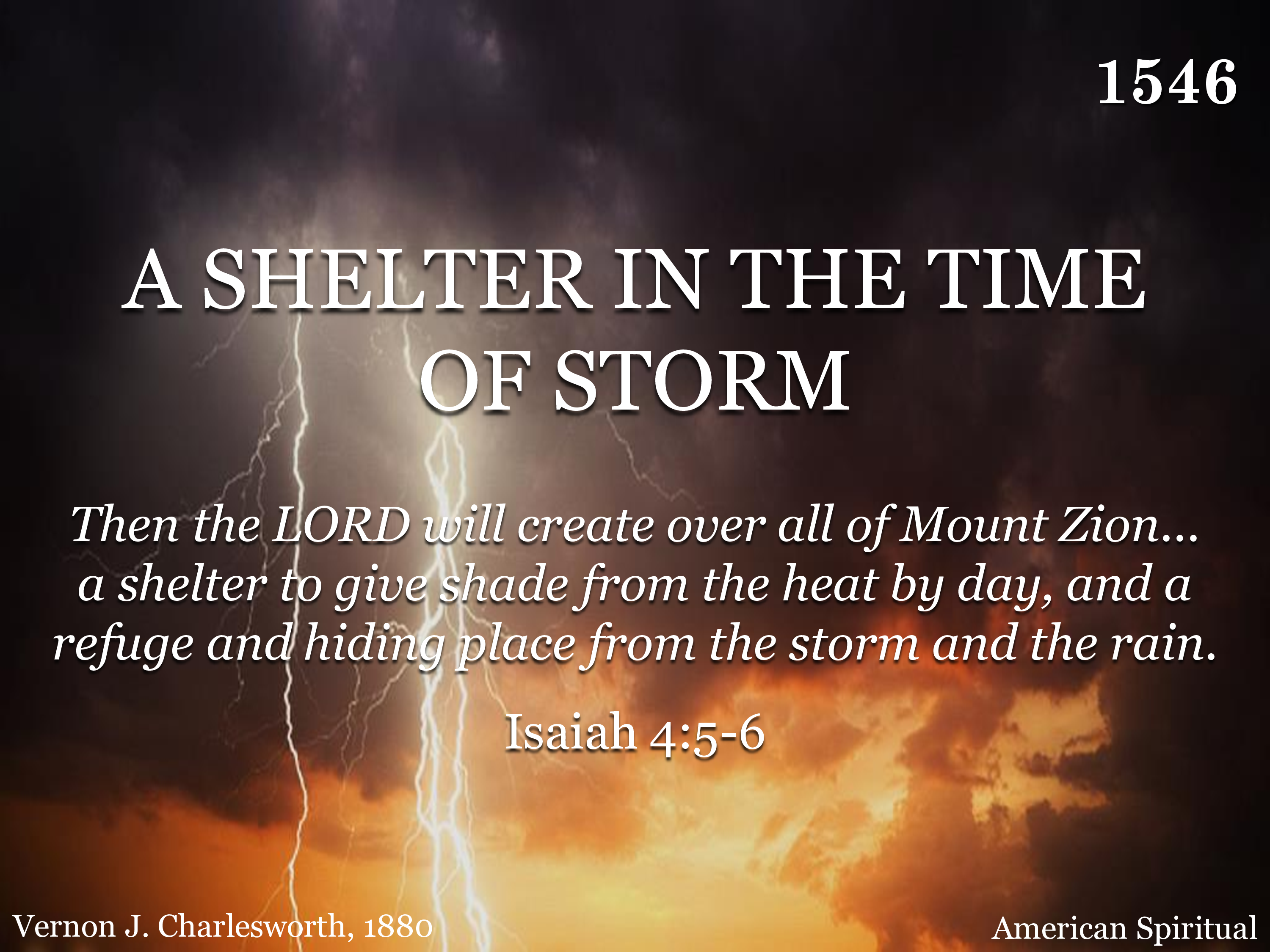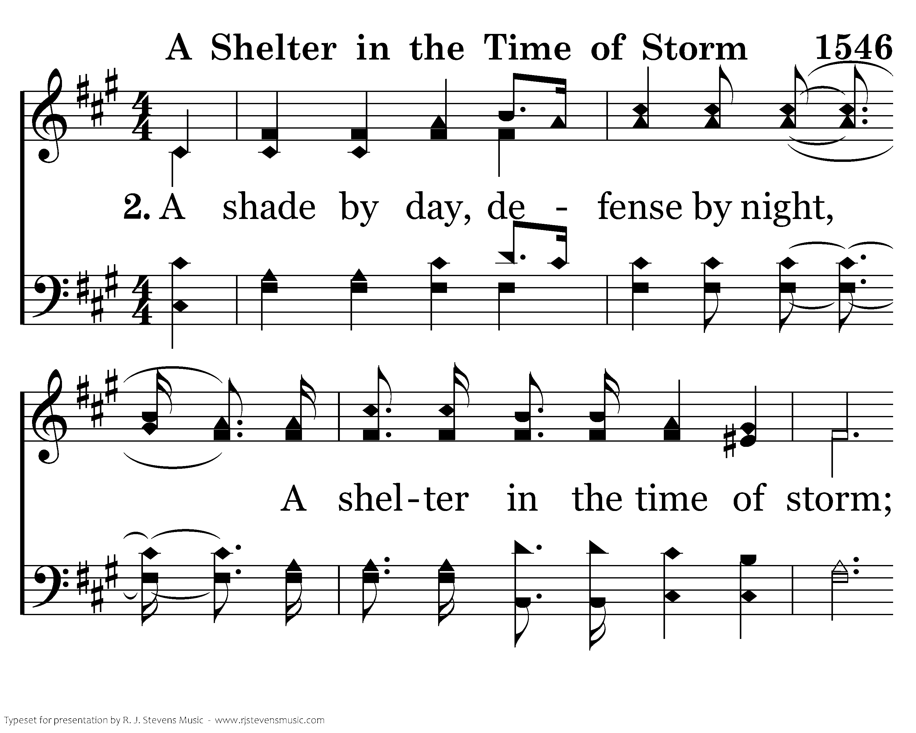 A shade by day, defense by night, A shelter in the time of storm; No fears alarm, no foes affright, A shelter in the time of storm.
