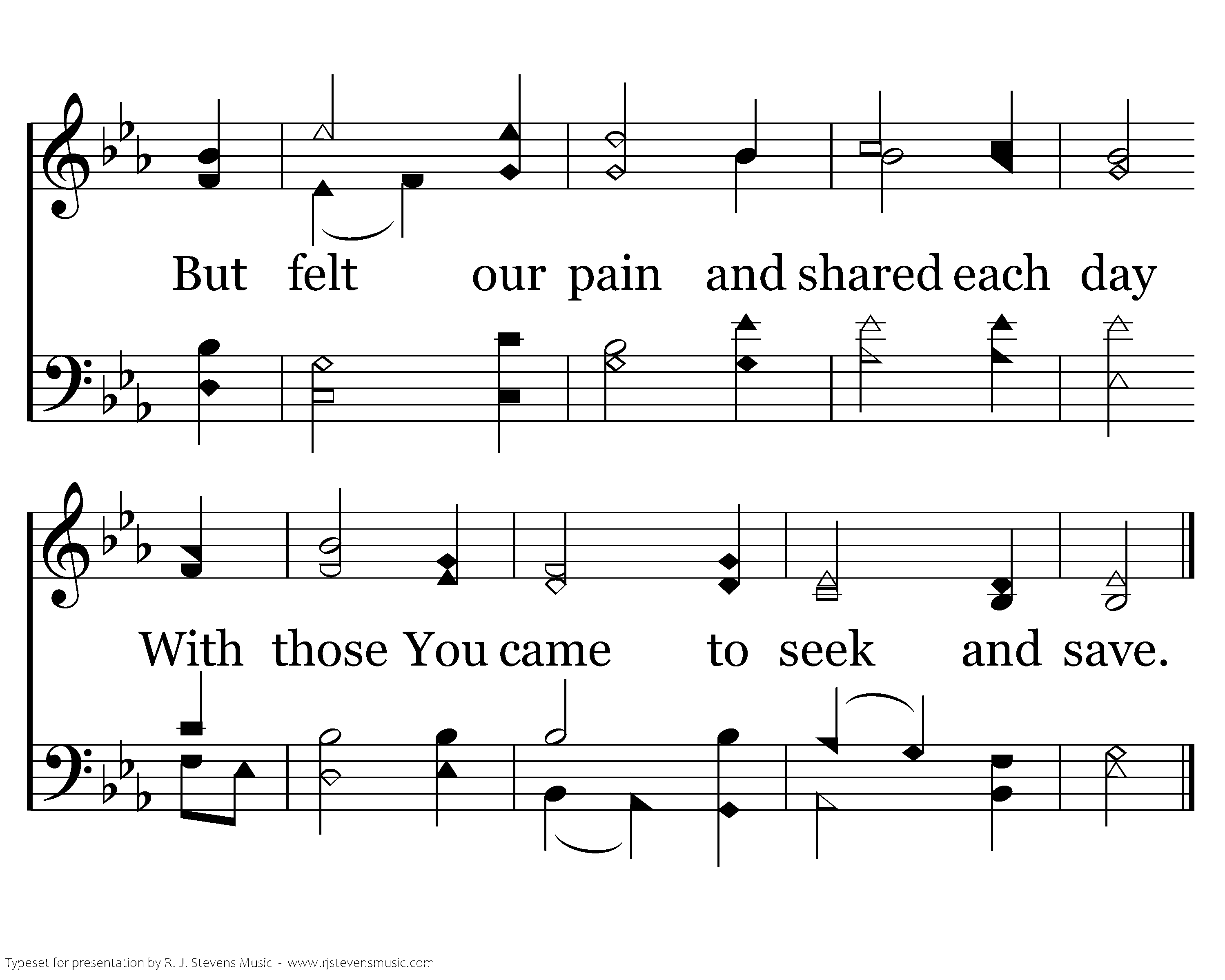 You did not live a world away In hermit's cell or desert cave, But felt our pain and shared each day With those You came to seek and save.