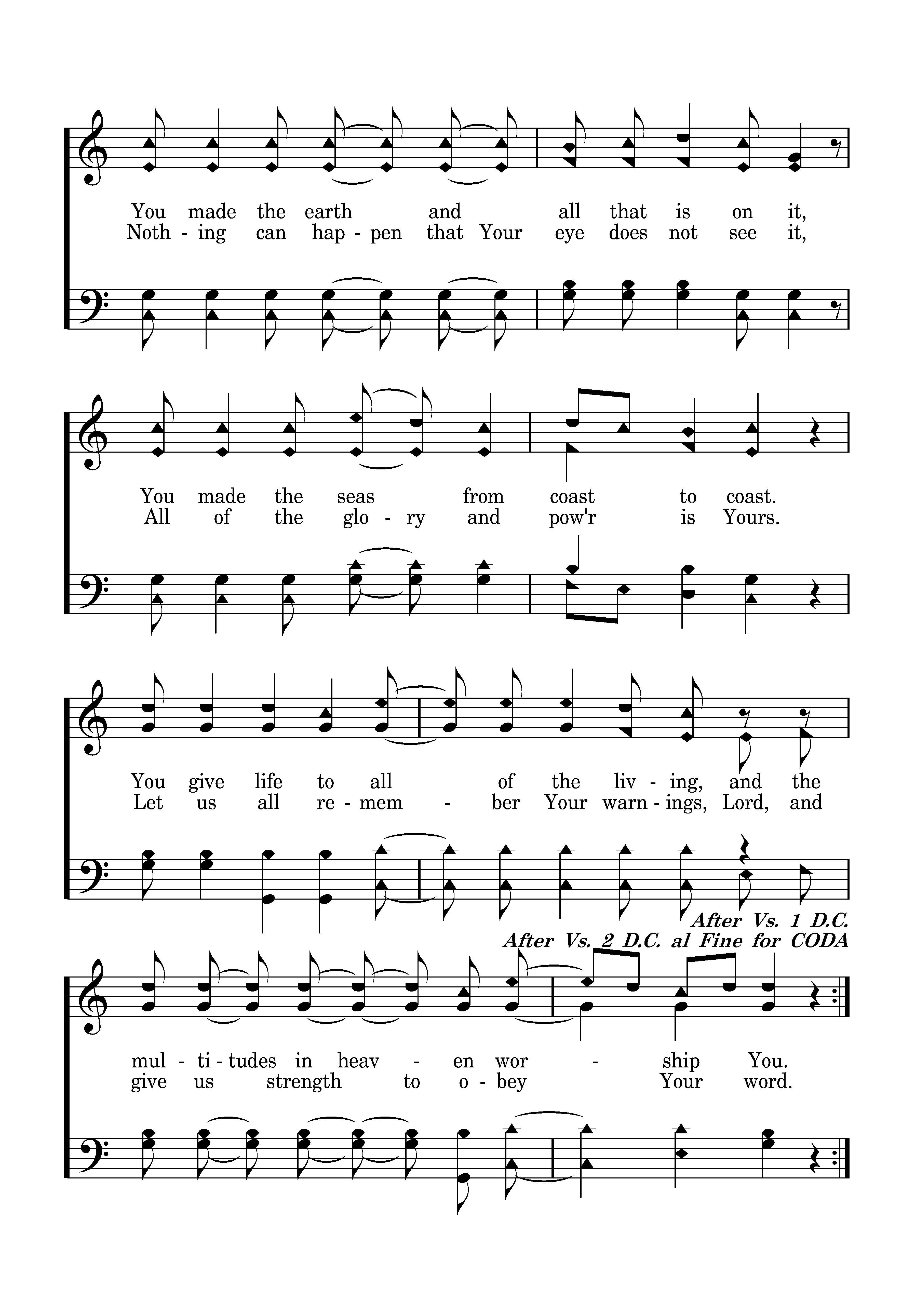 Blessed be Your name, Your glorious name; May it be exalted over all names. You alone are LORD and You made the heavens, all of the heavens and the starry host. You made the earth and all that is on it, You made the seas from coast to coast. You give life to all of the living, and the multitudes in heaven worship You.