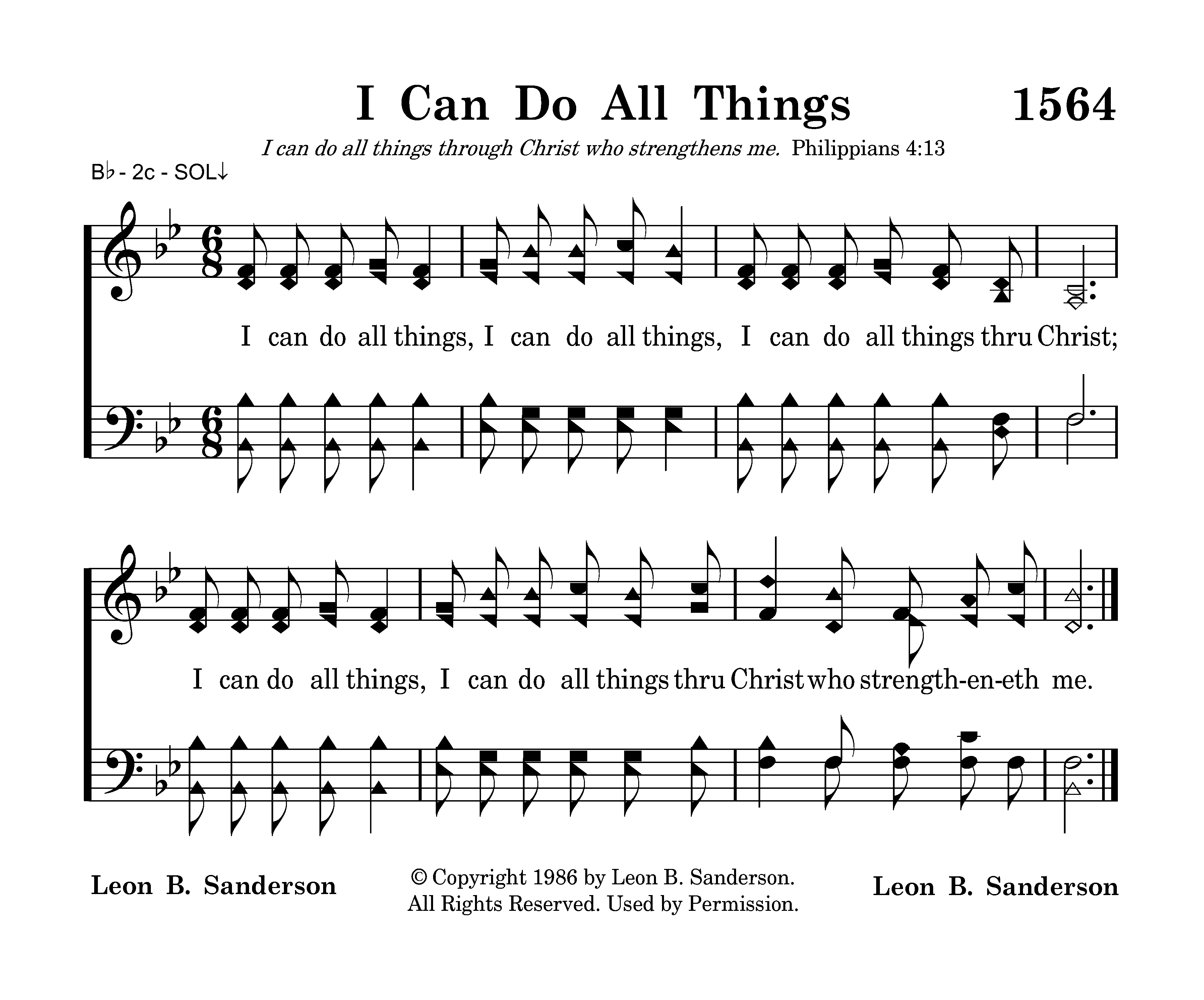 - Copyright © 1986 by Leon B. Sanderson. (Admin. by Leon B. Sanderson.) All Rights Reserved. Used by Permission.