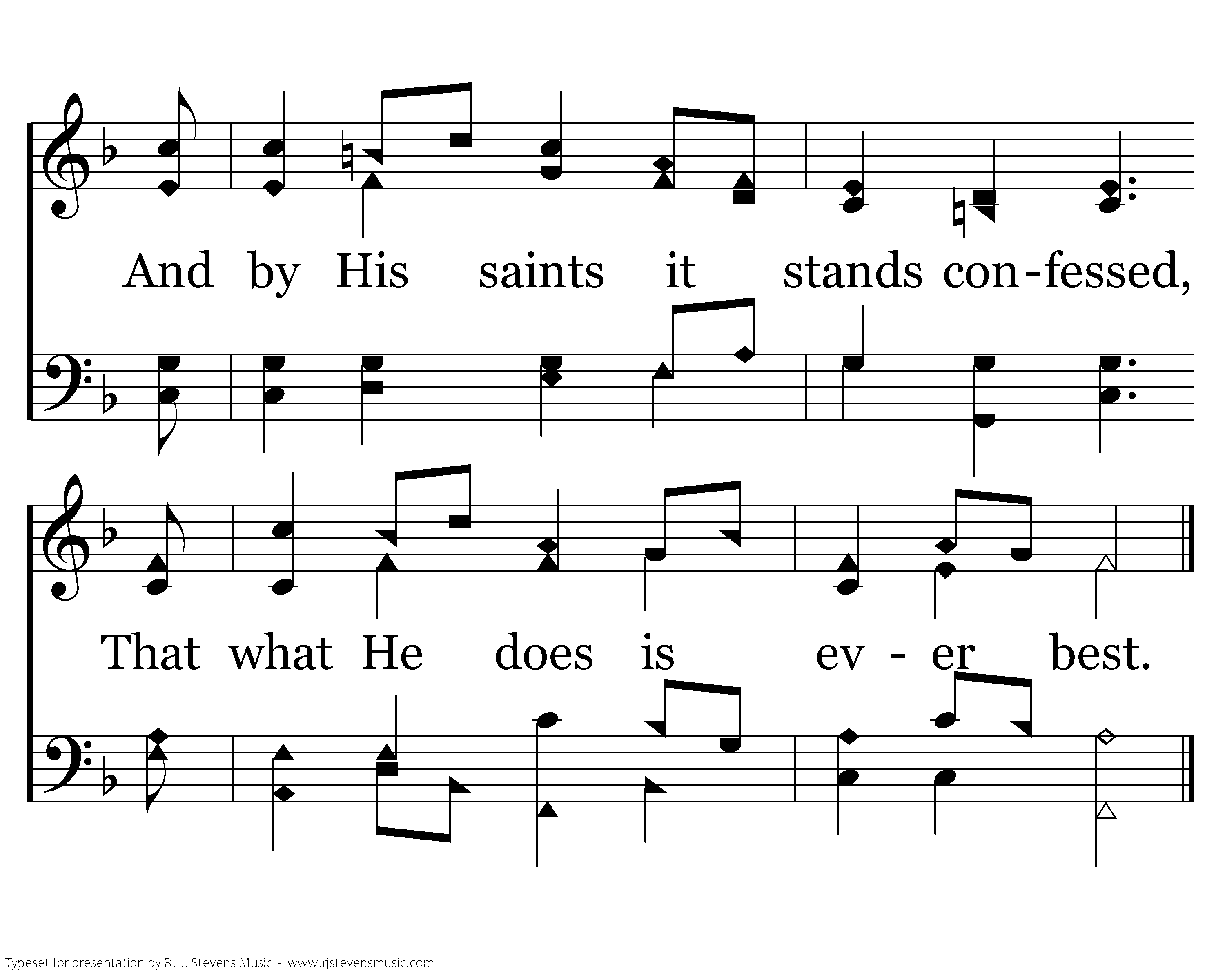 In heav'n and earth, in air and seas, He executes His wise decrees; And by His saints it stands confessed, That what He does is ever best.