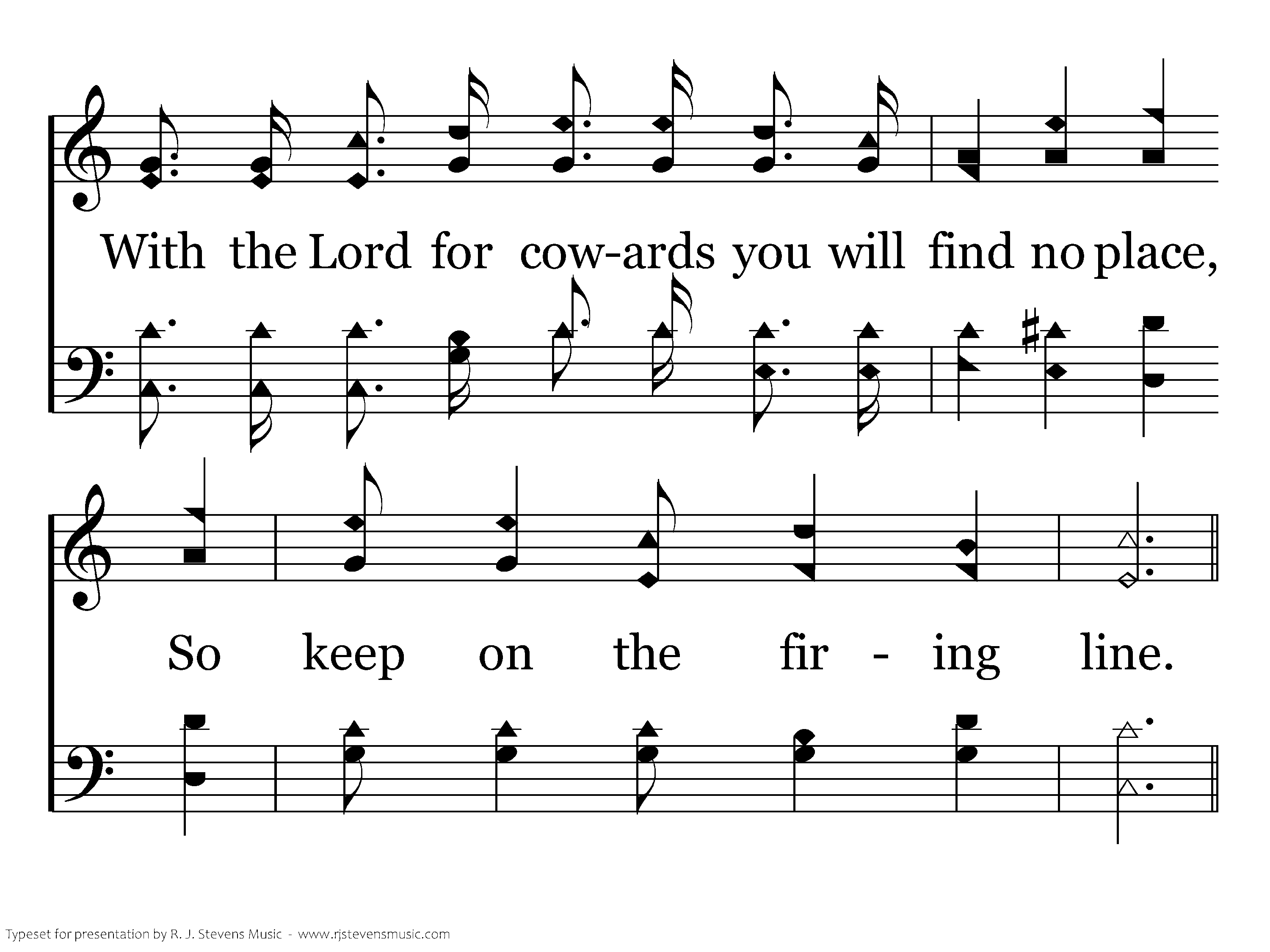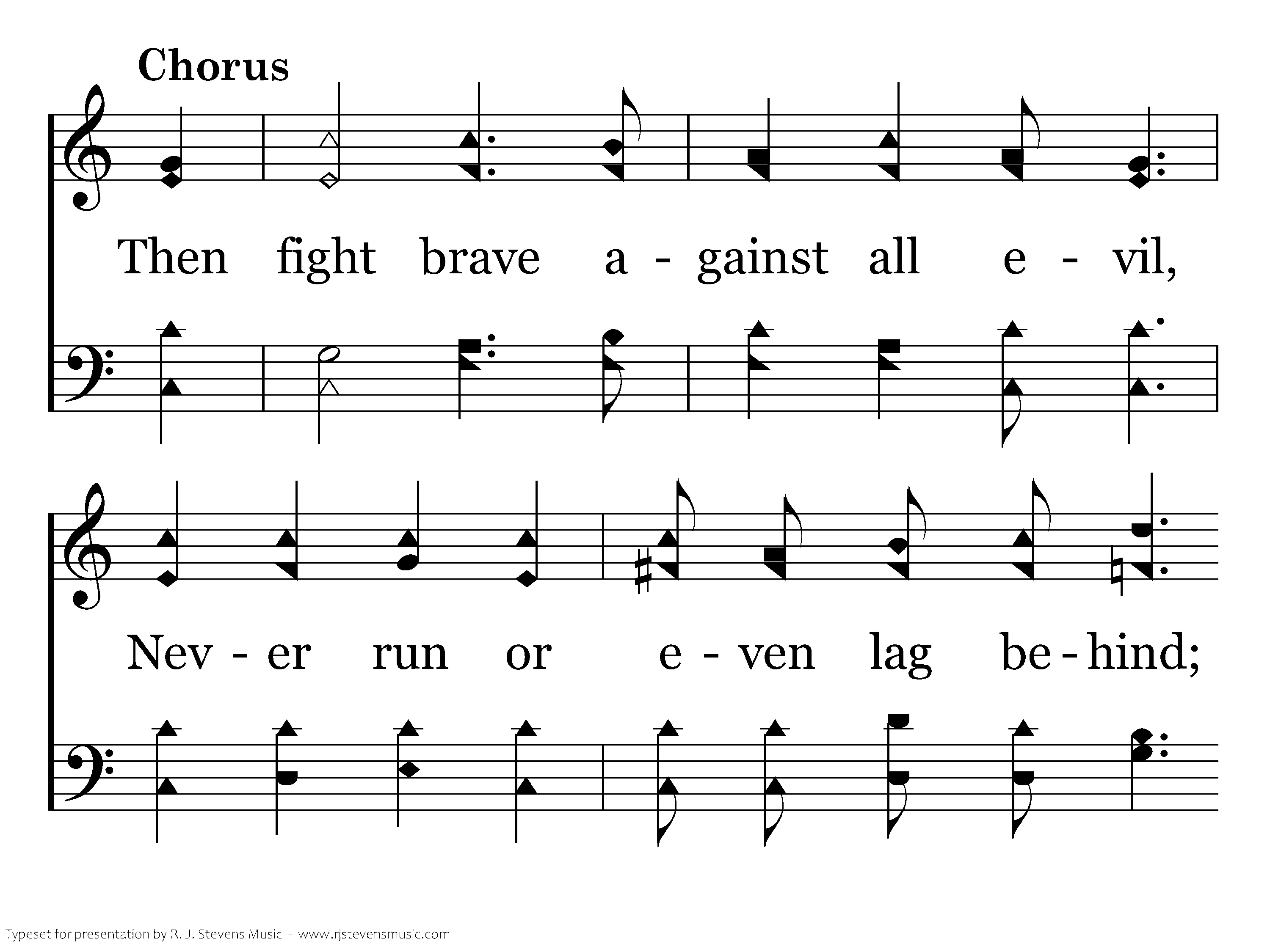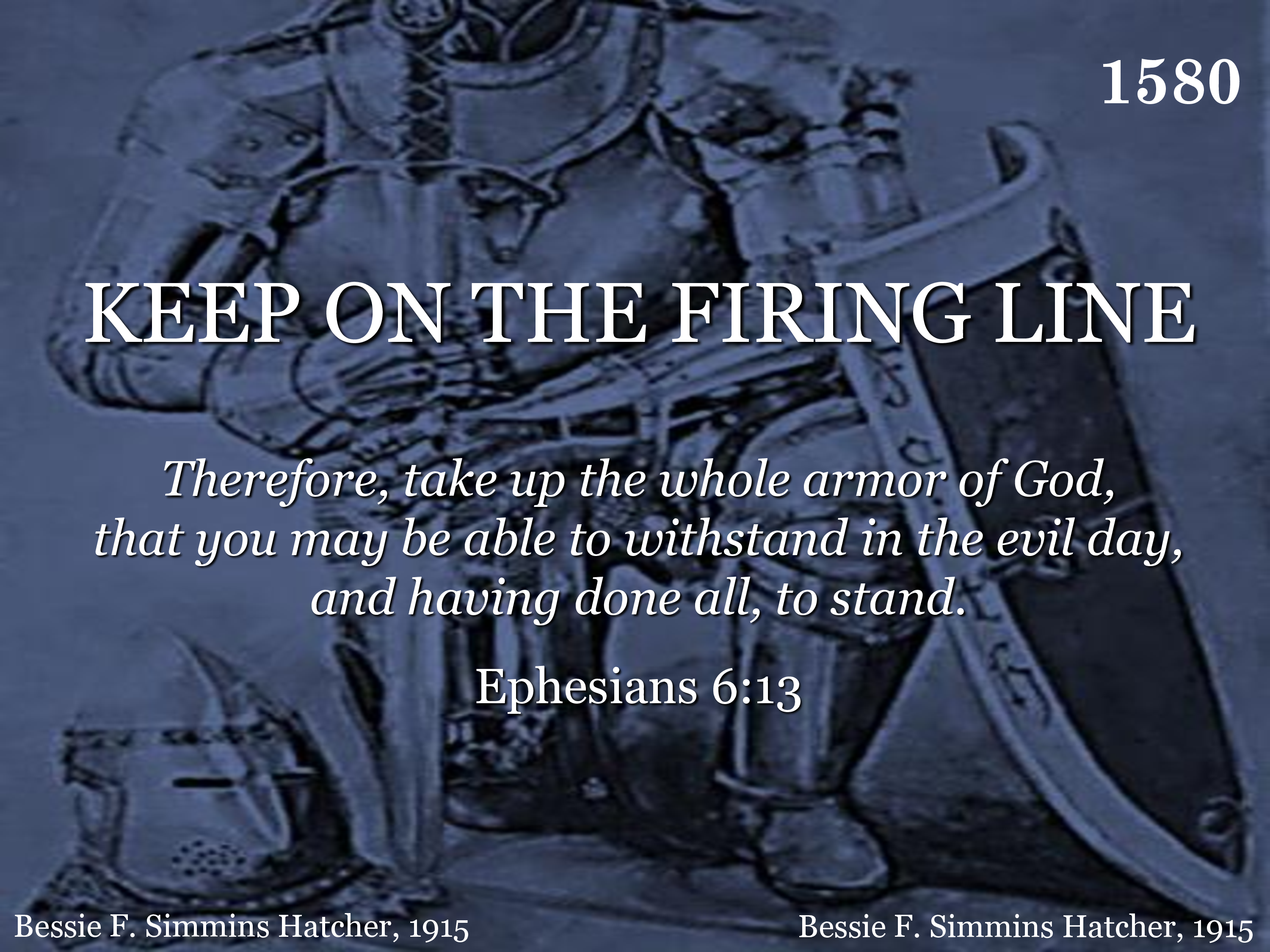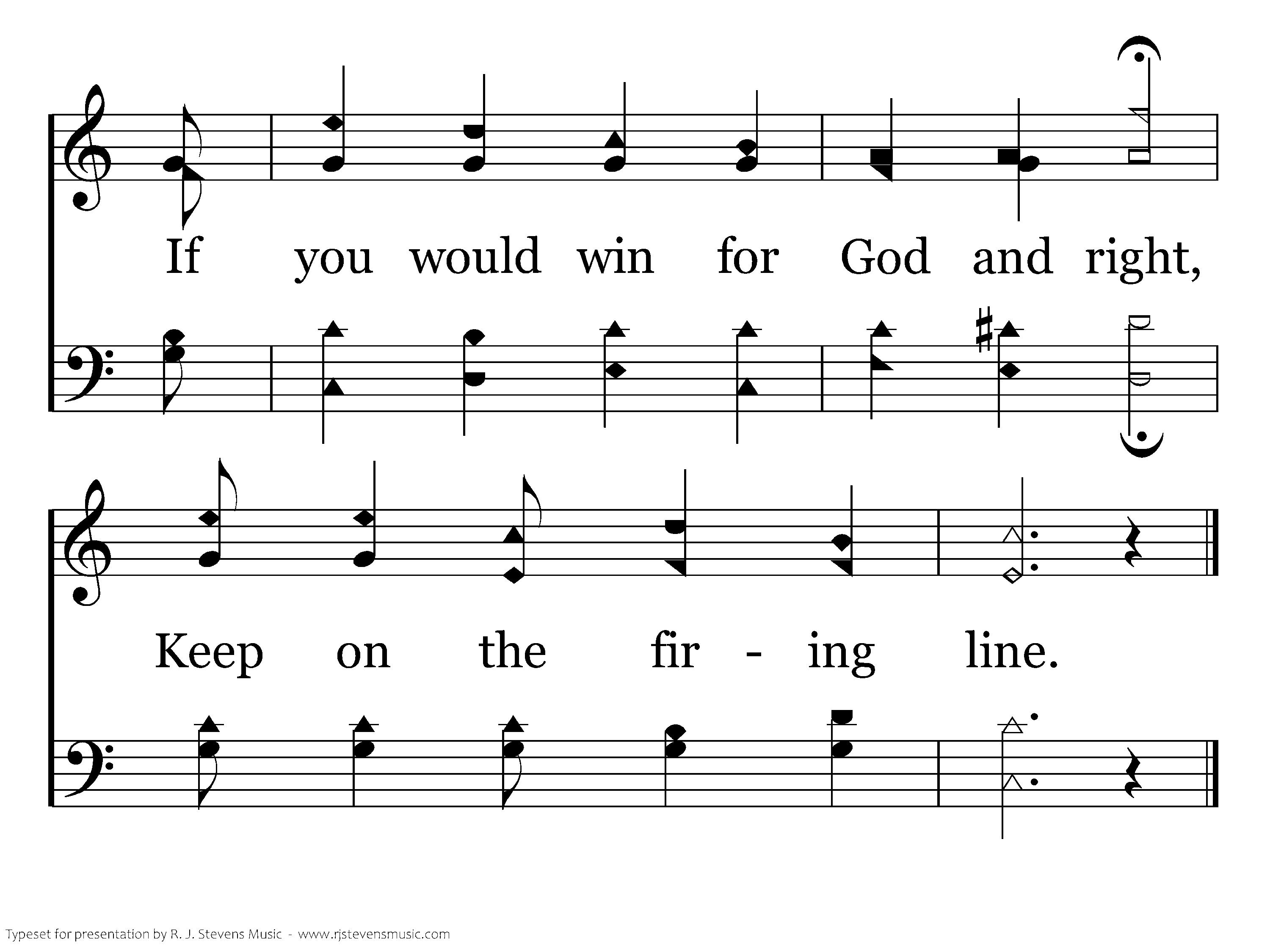 Then fight brave against all evil, Never run or even lag behind; If you would win for God and right, Keep on the firing line.