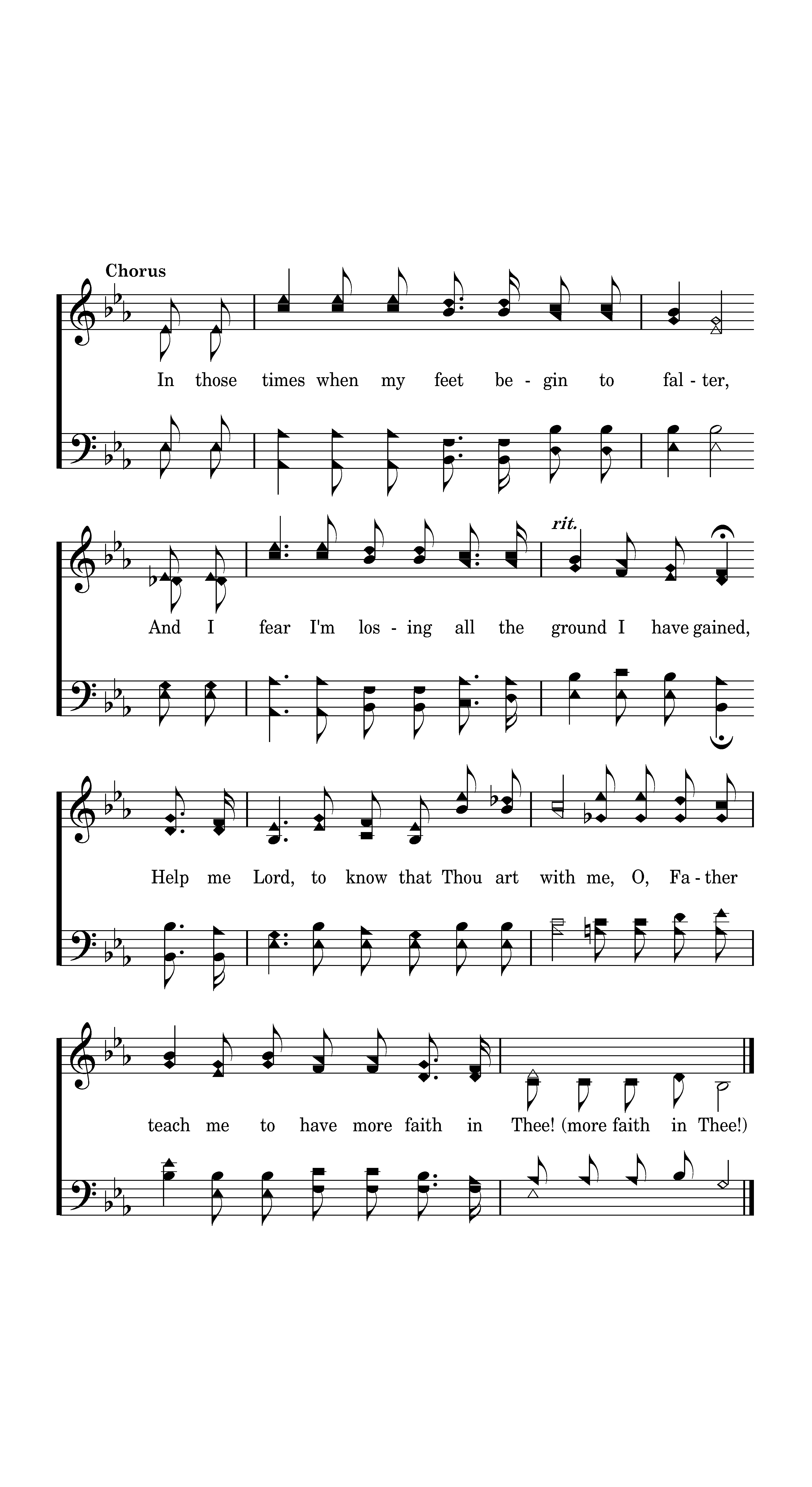In those times when my feet begin to falter, And I fear I'm losing all the ground I have gained, Help me Lord, to know that Thou art with me, O, Father teach me to have more faith in Thee! (more faith in Thee!)