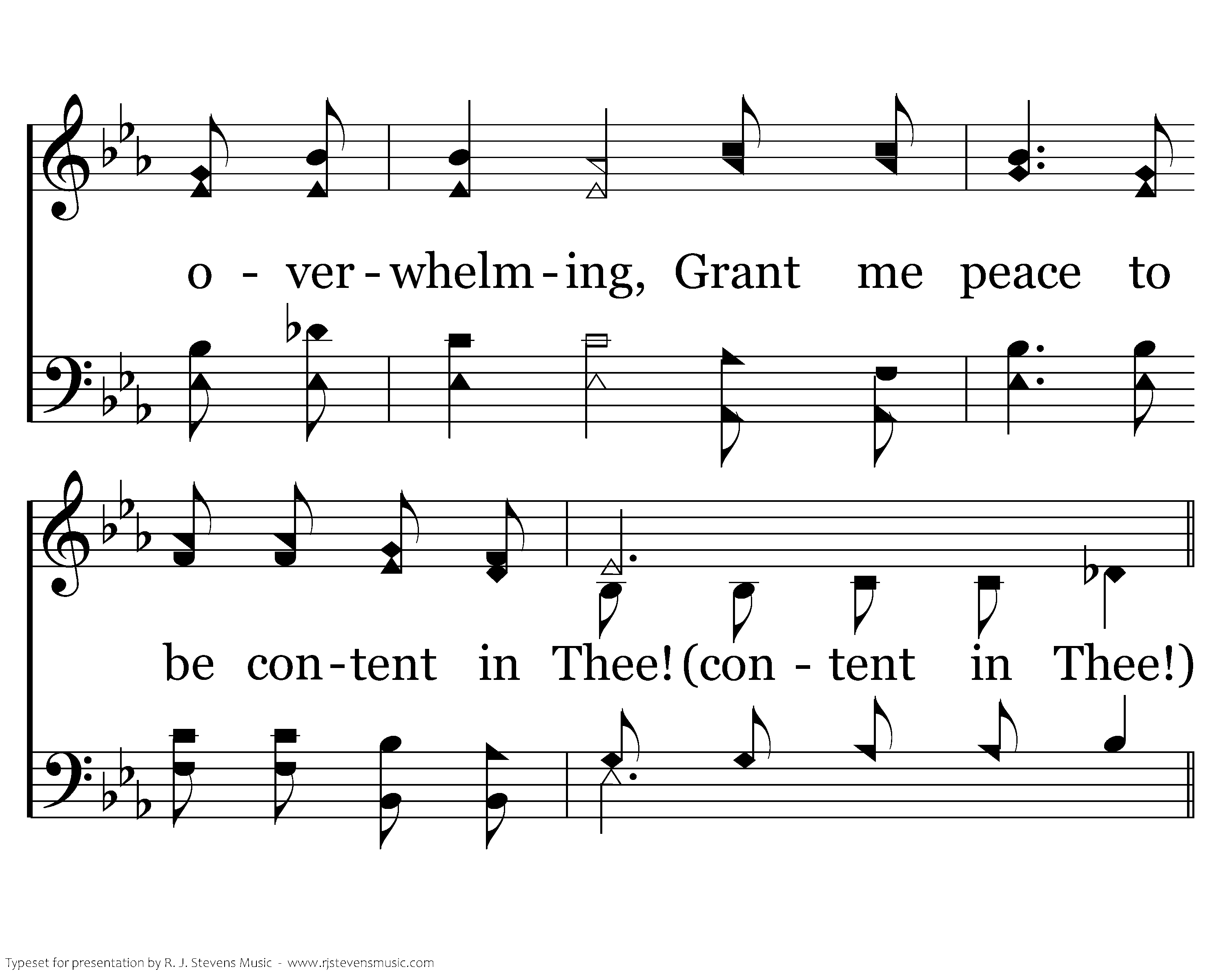 Sometimes I feel discouraged, Even tho' I know you're by my side. (by my side) When the toils of life seem overwhelming, Grant me peace to be content in Thee! (con-tent in Thee!)