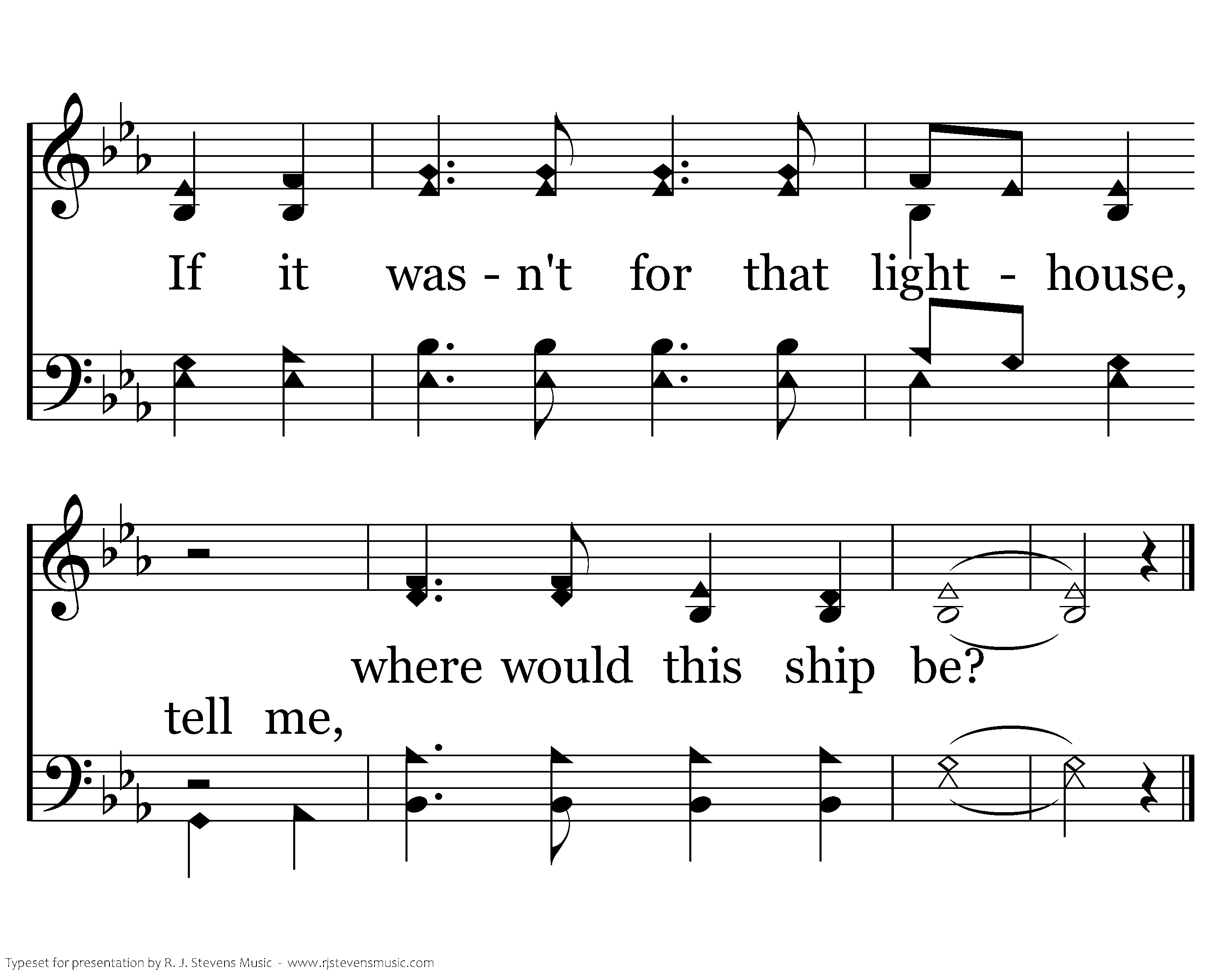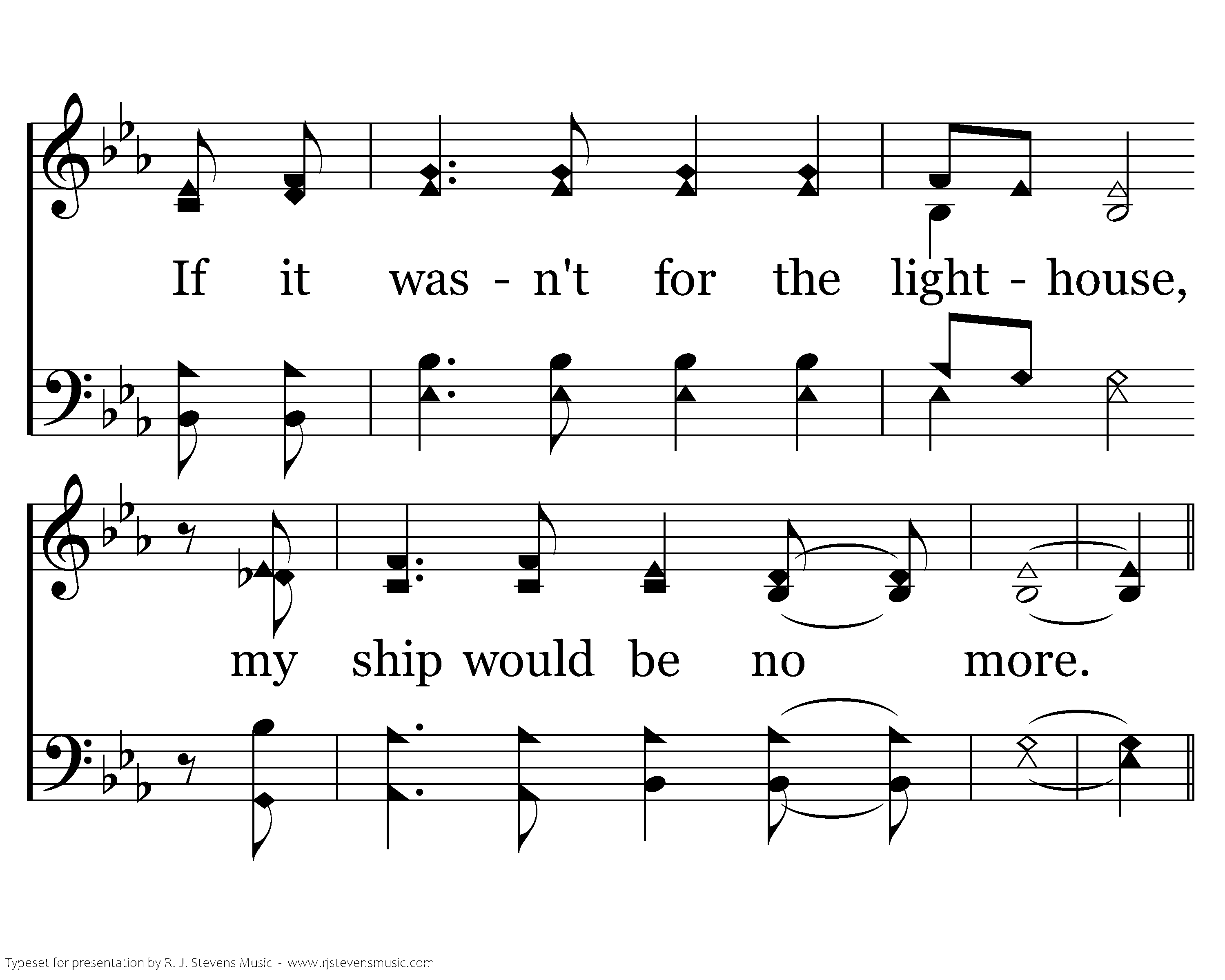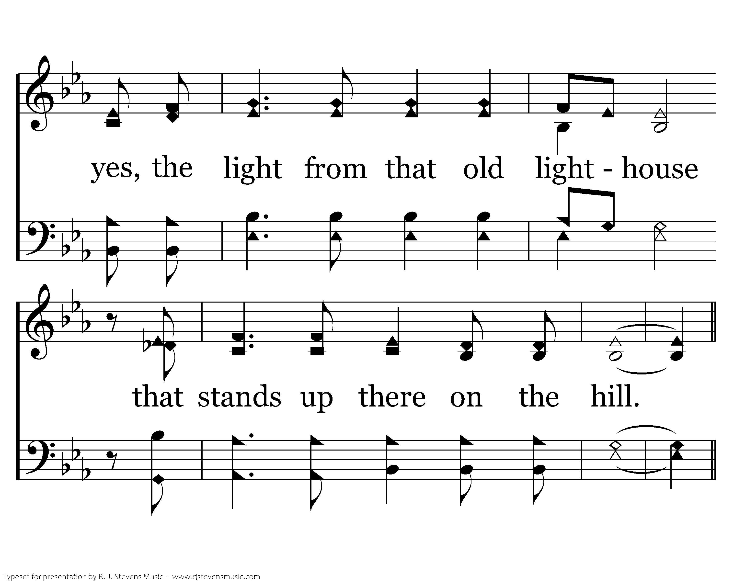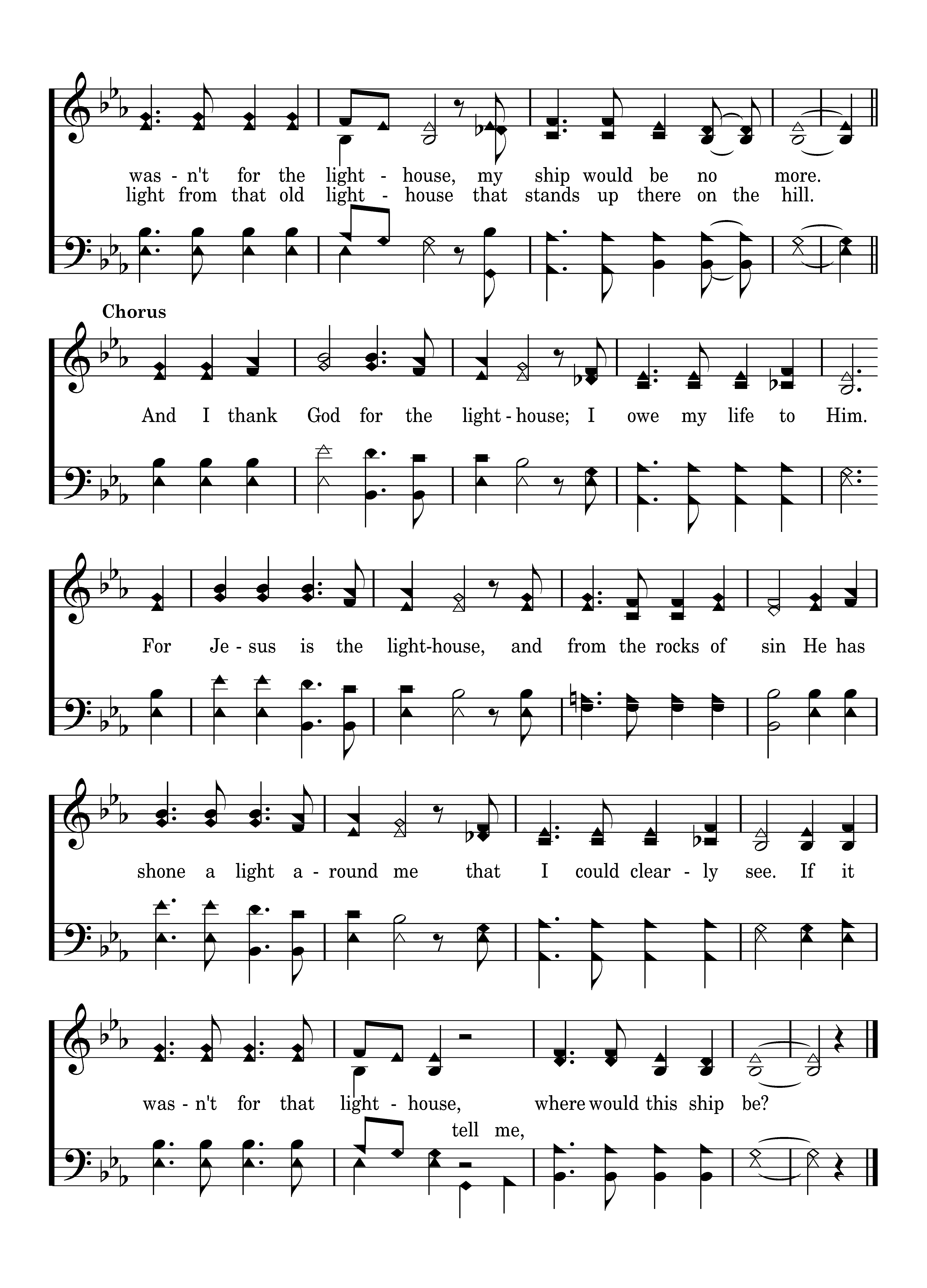 There's a lighthouse on the hillside that overlooks life's sea. When I'm tossed it sends out a light, that I might see; And the light that shines in darkness, now will safely lead us o'er. If it wasn't for the lighthouse, my ship would be no more.