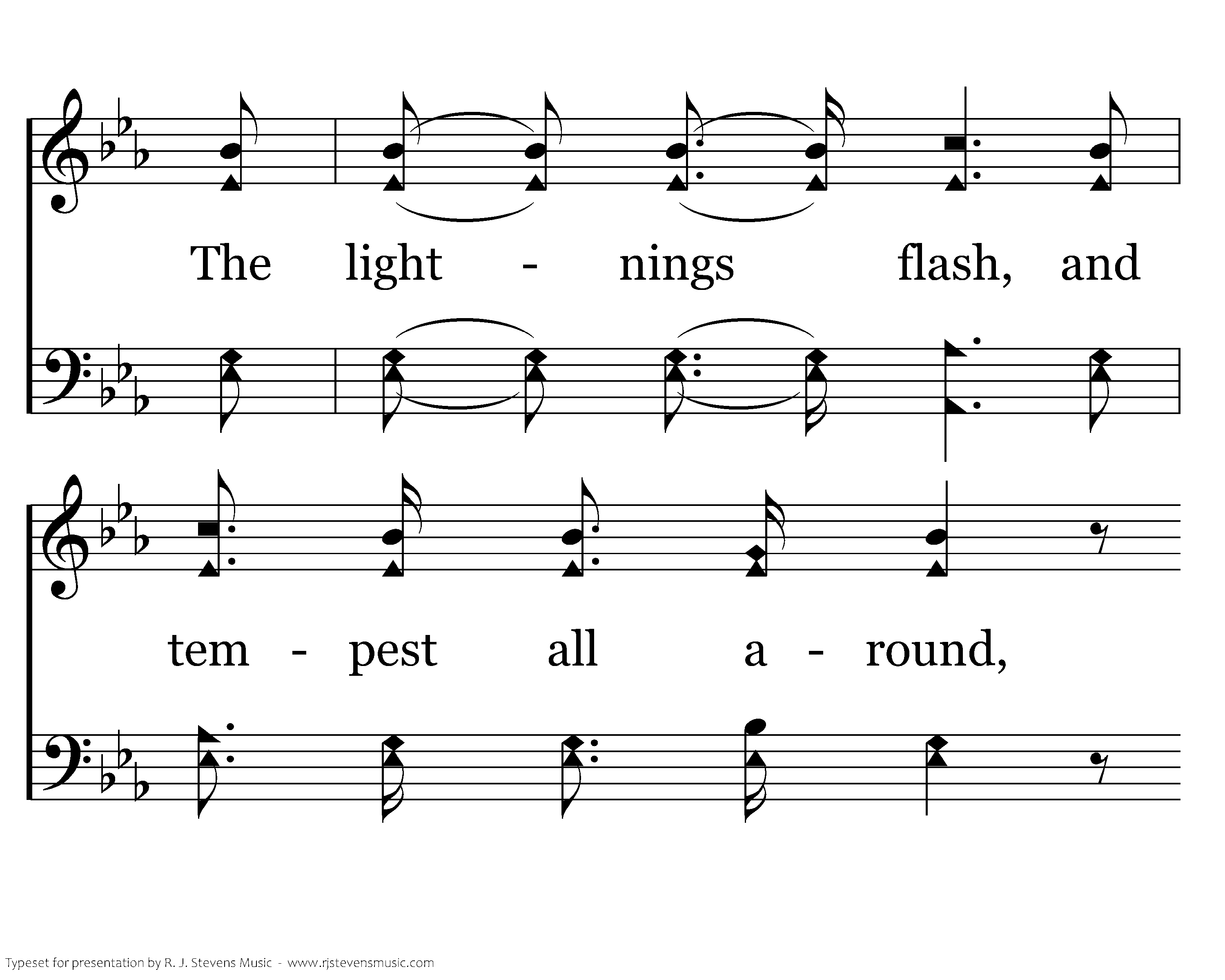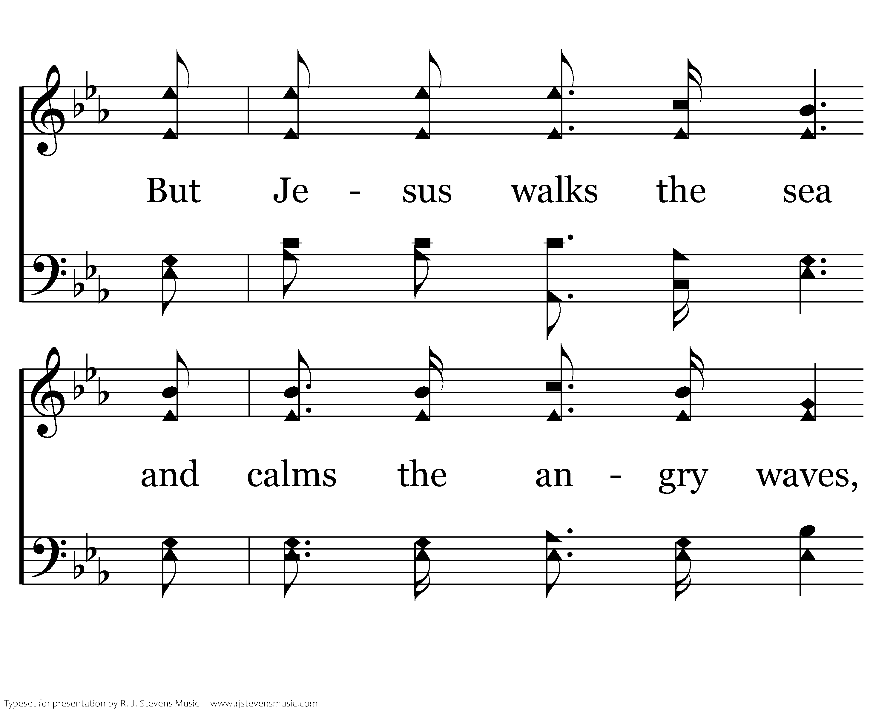 The stars have disappeared, and distant lights are dim, My soul is filled with fears, the seas are breaking in. I hear the Master cry, "Be not afraid, 'tis I," And the storm is passing over, Hallelujah!