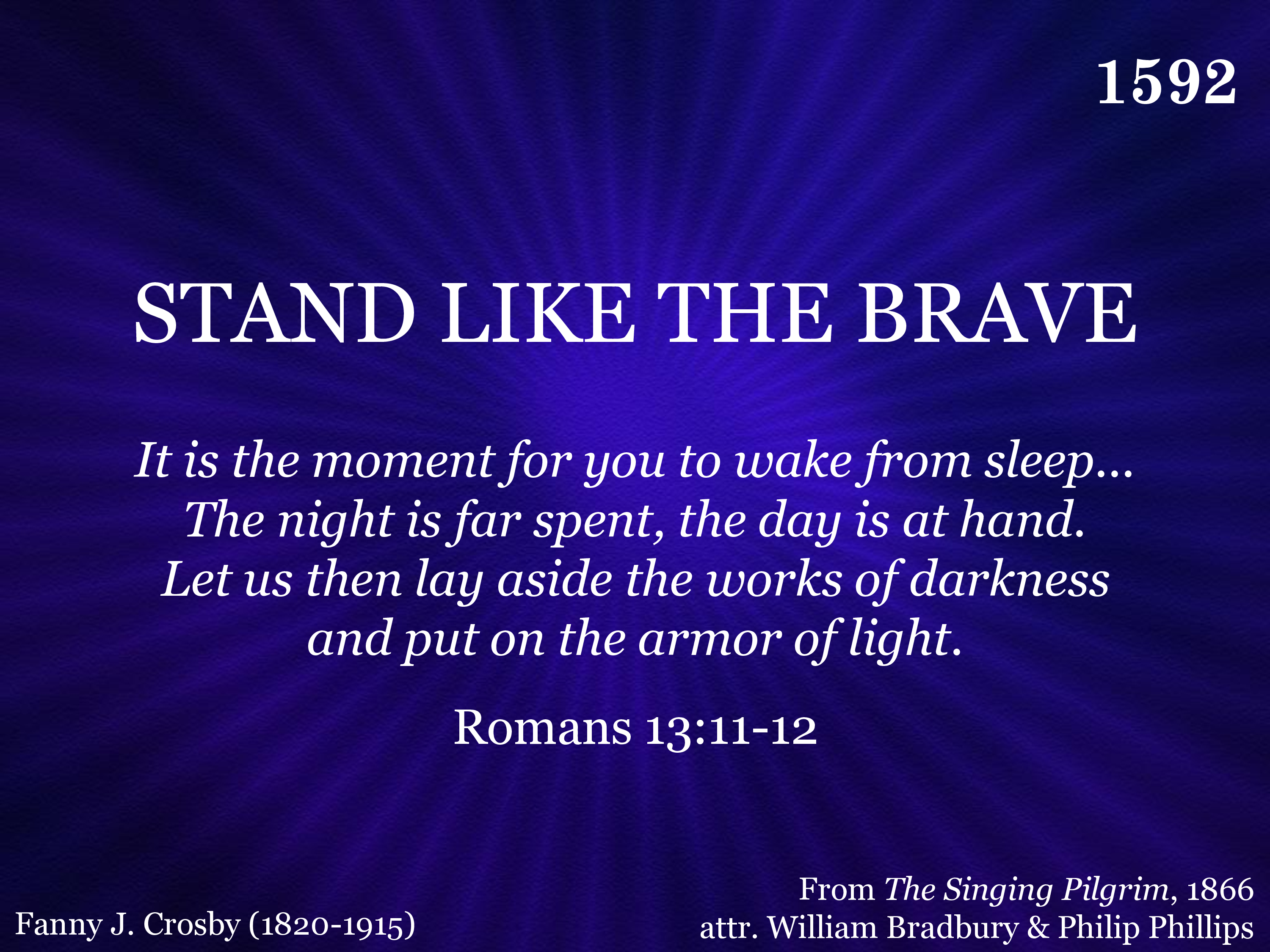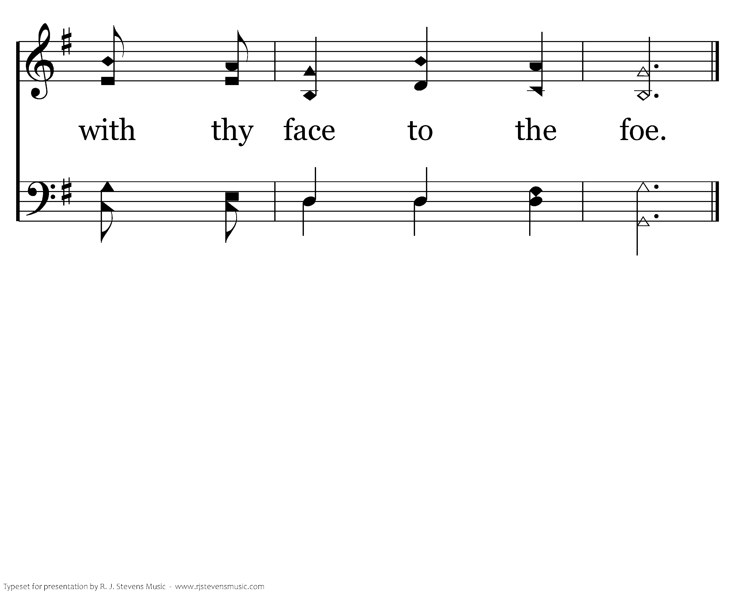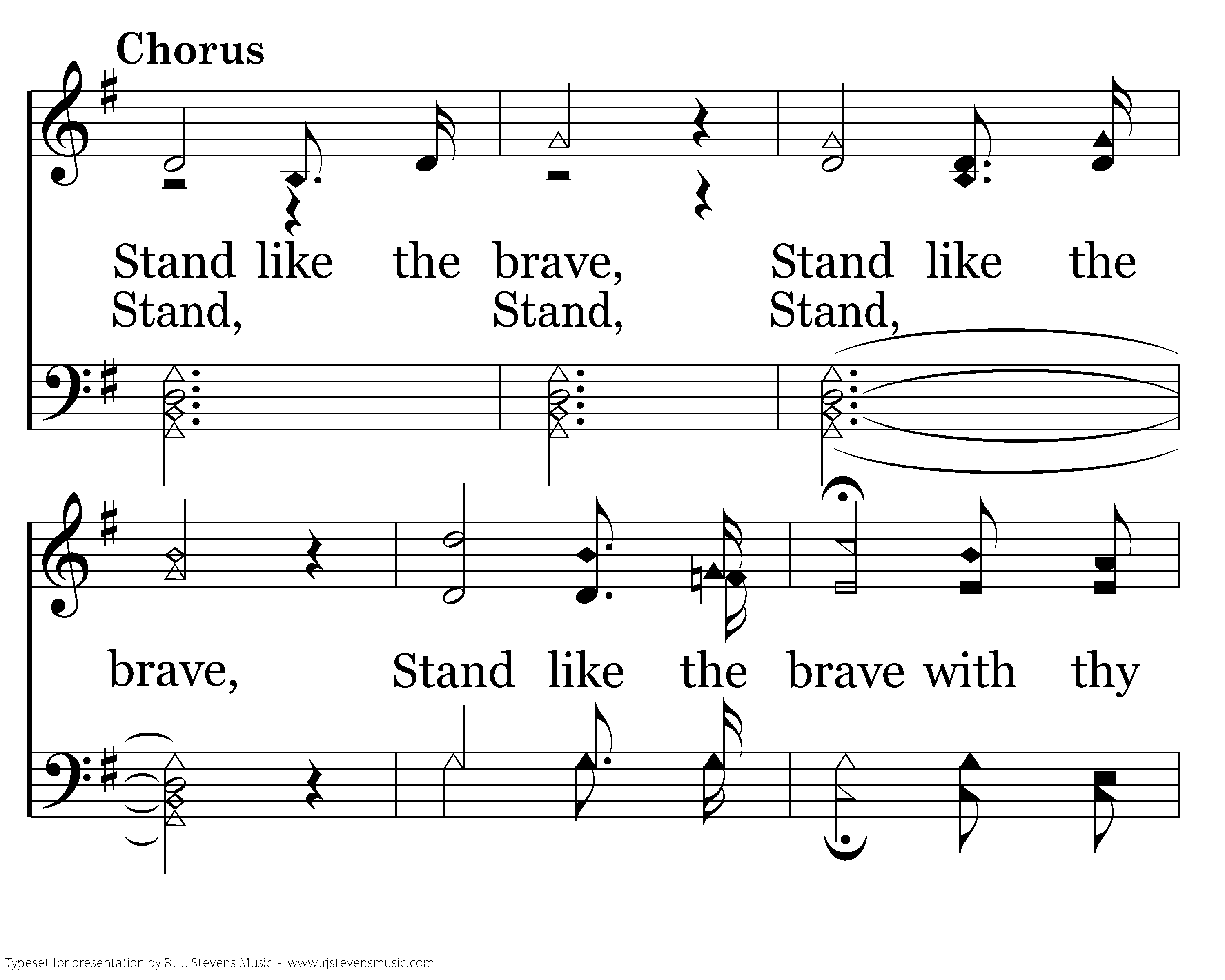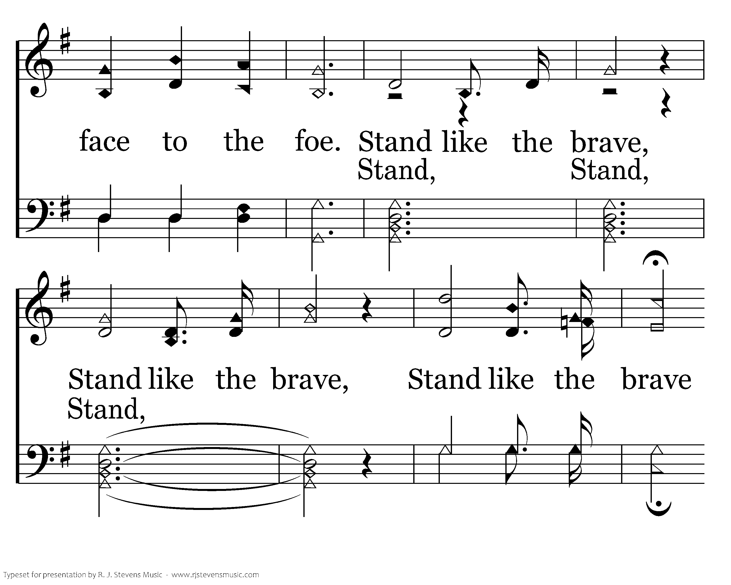 Stand like the brave, Stand like the brave, Stand like the brave with thy face to the foe. Stand like the brave, Stand like the brave, Stand like the brave with thy face to the foe.