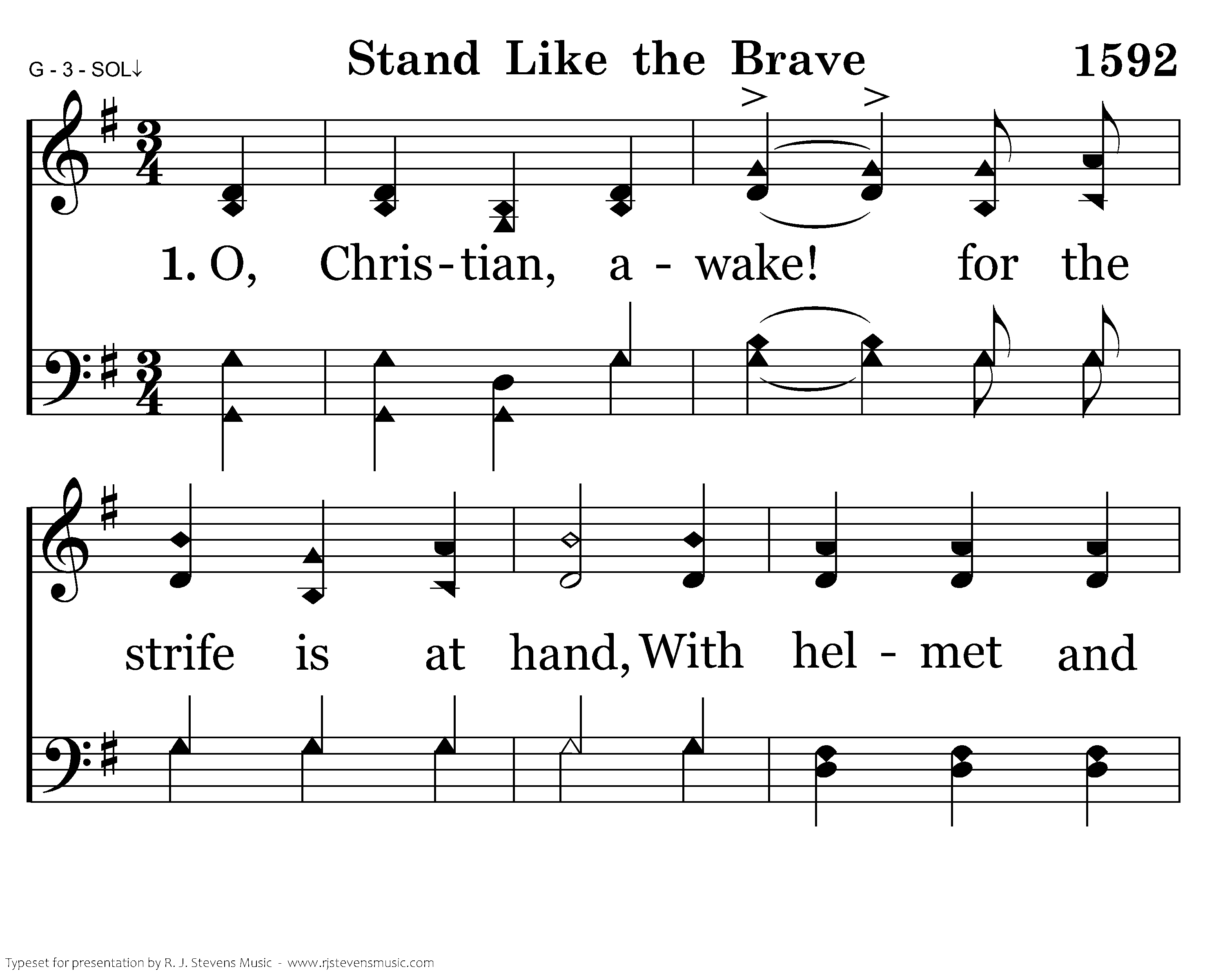 O, Christian, awake! for the strife is at hand, With helmet and shield, and a sword in thy hand; To meet the bold tempter, go, fearlessly go! And stand like the brave with thy face to the foe.