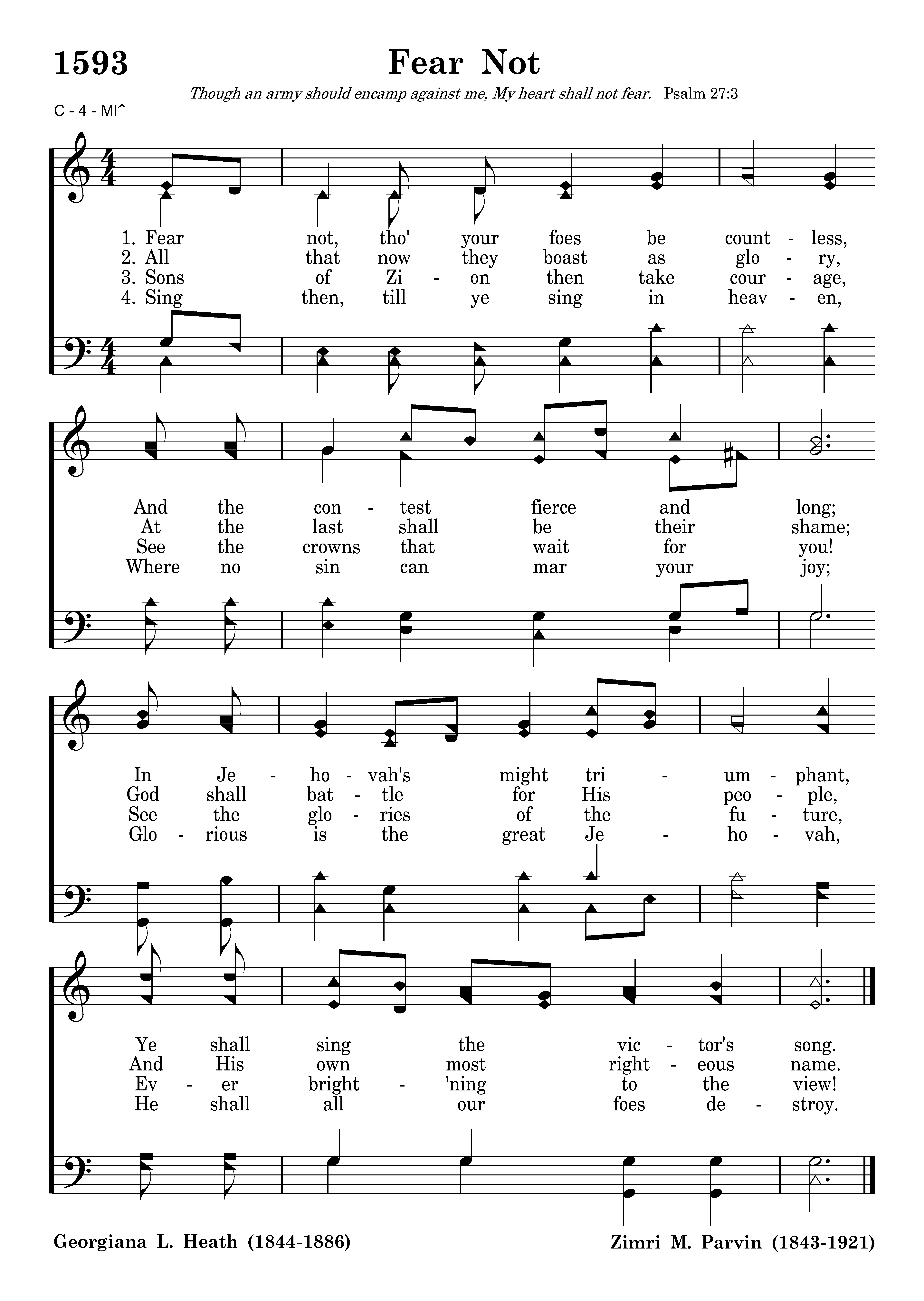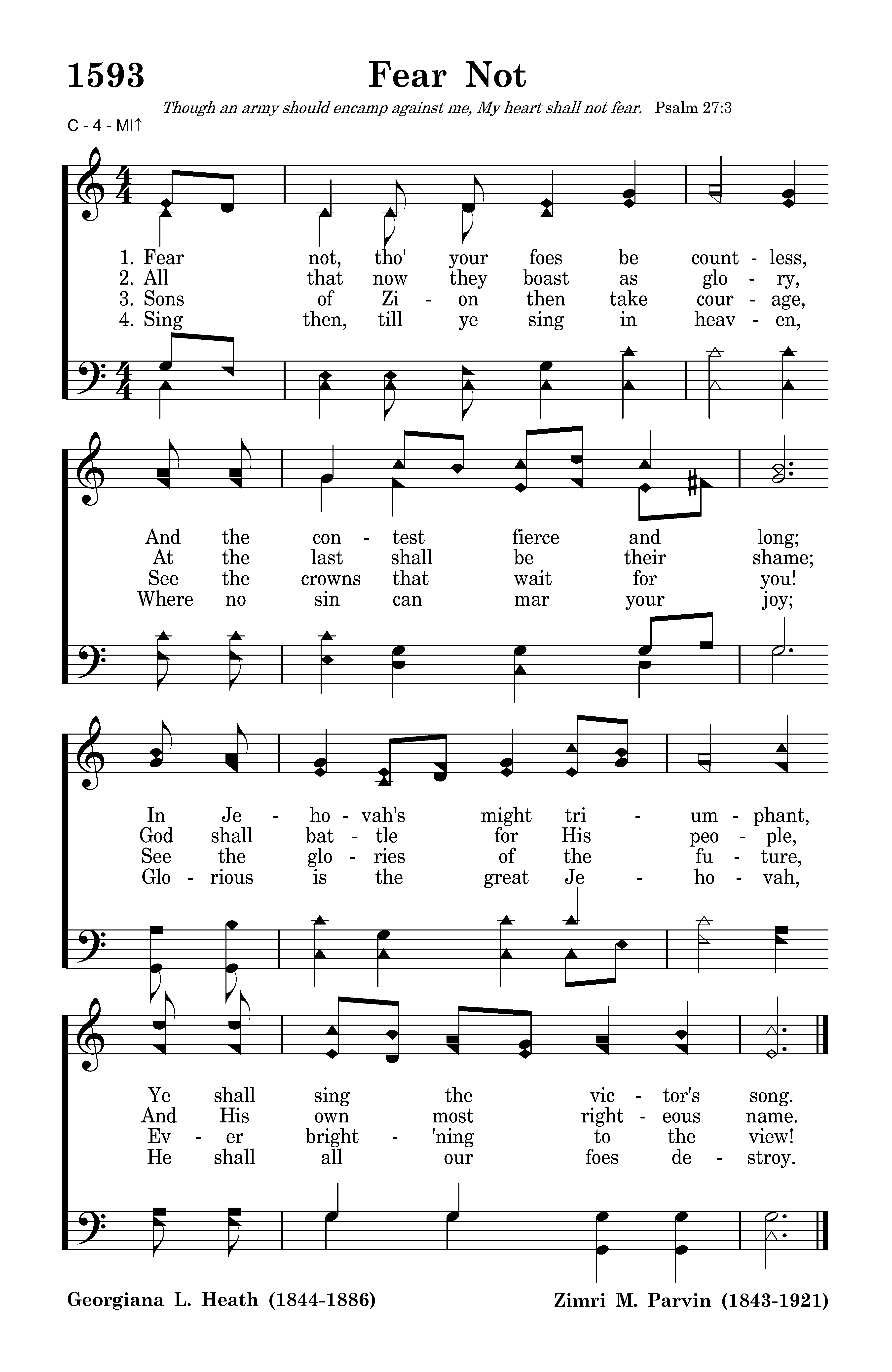 Fear not, tho' your foes be countless, And the contest fierce and long; In Jehovah's might triumphant, Ye shall sing the victor's song.