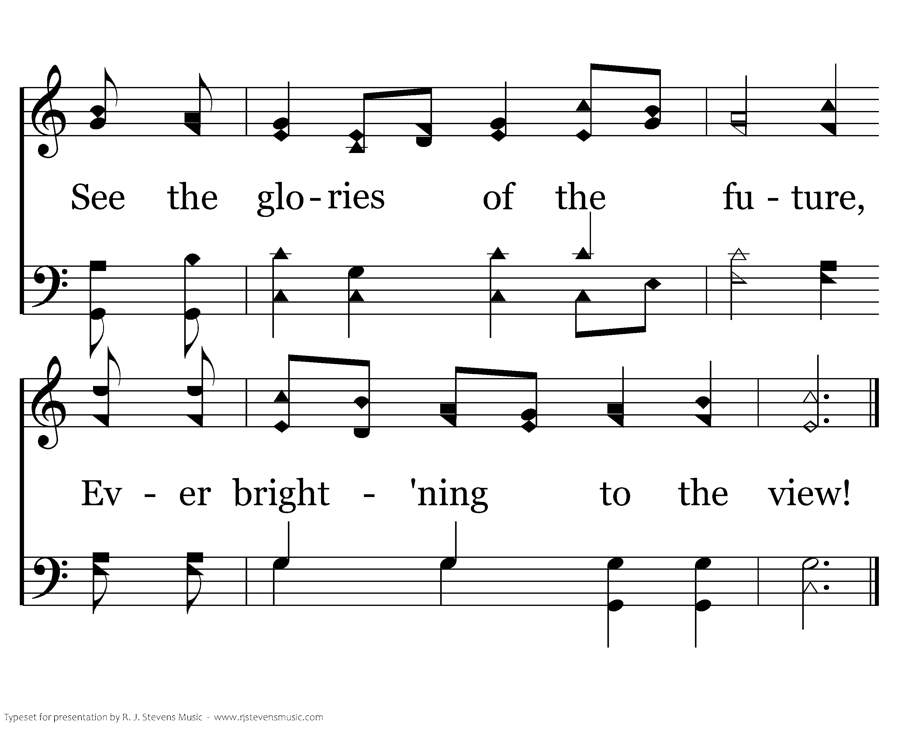 Sons of Zion then take courage, See the crowns that wait for you! See the glories of the future, Ever bright'ning to the view!