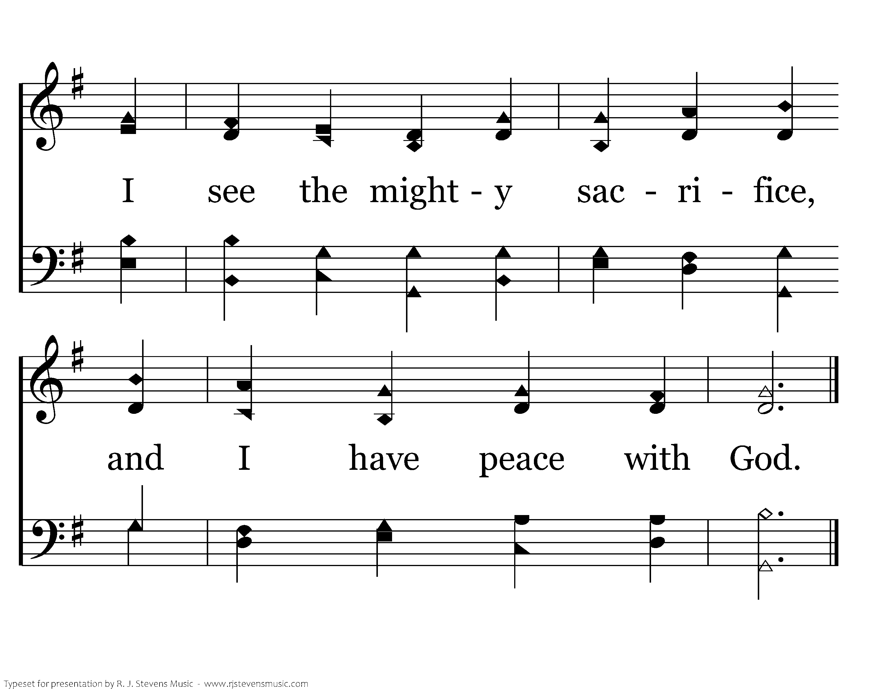 I hear the words of love, I gaze upon the blood, I see the mighty sacrifice, and I have peace with God.