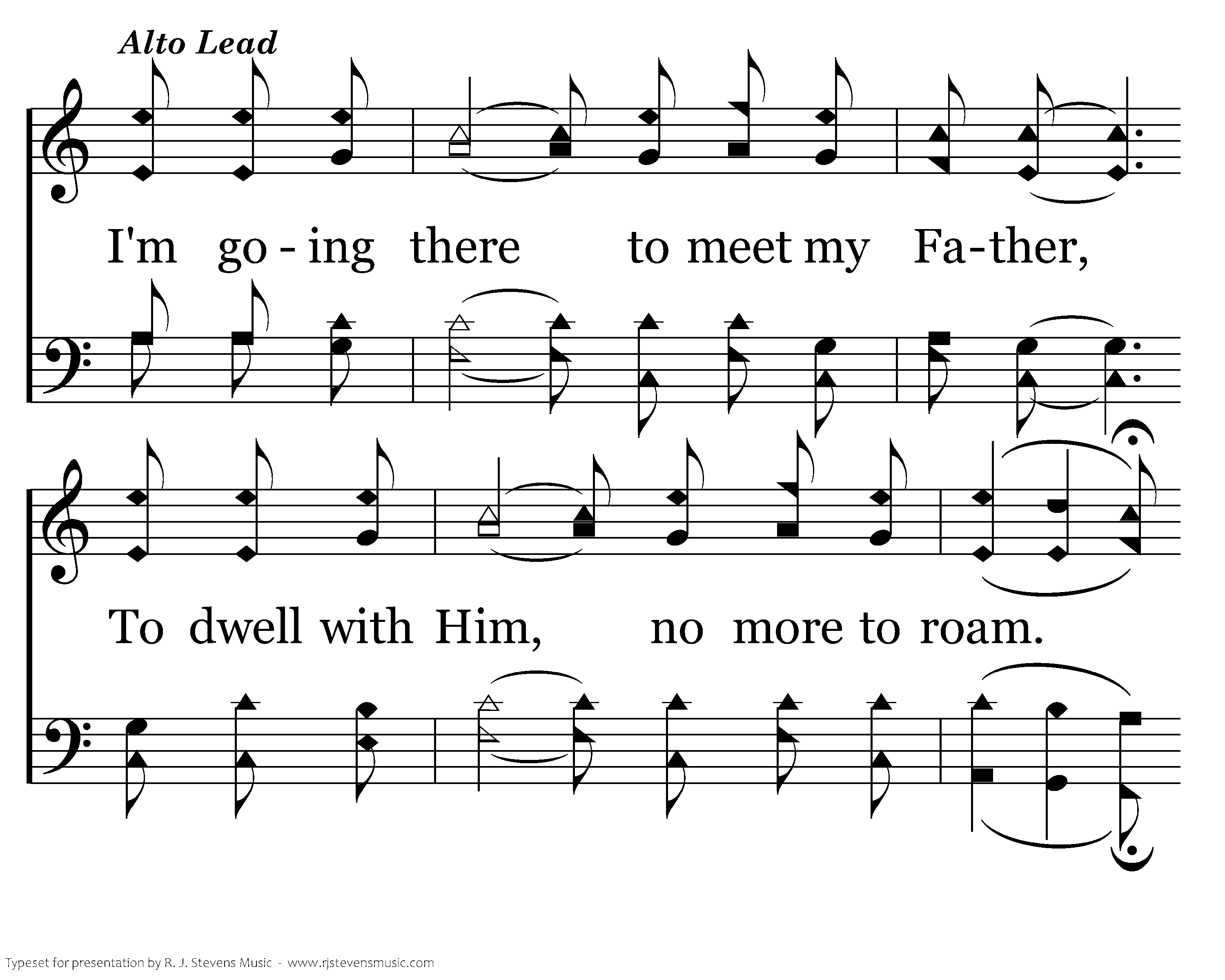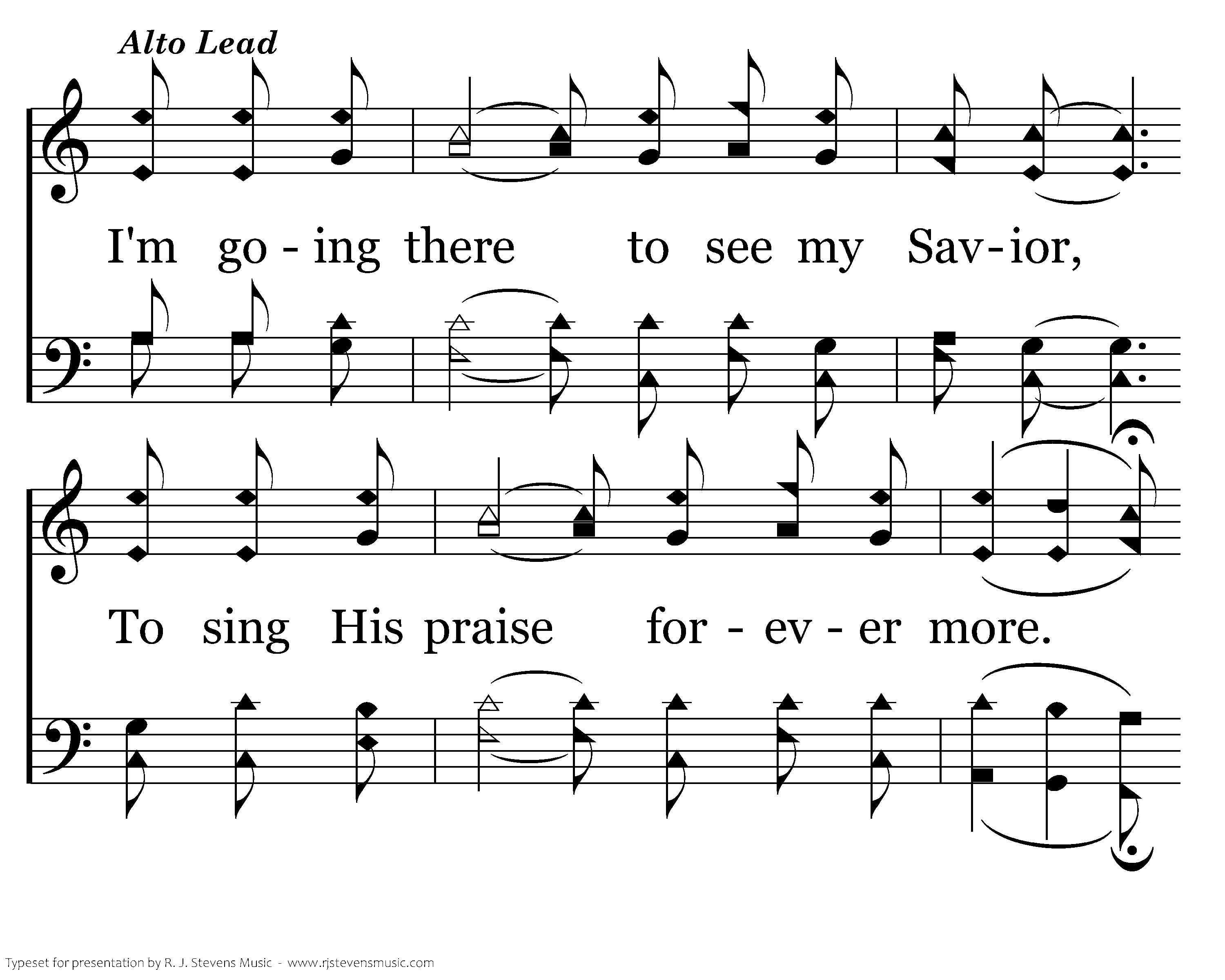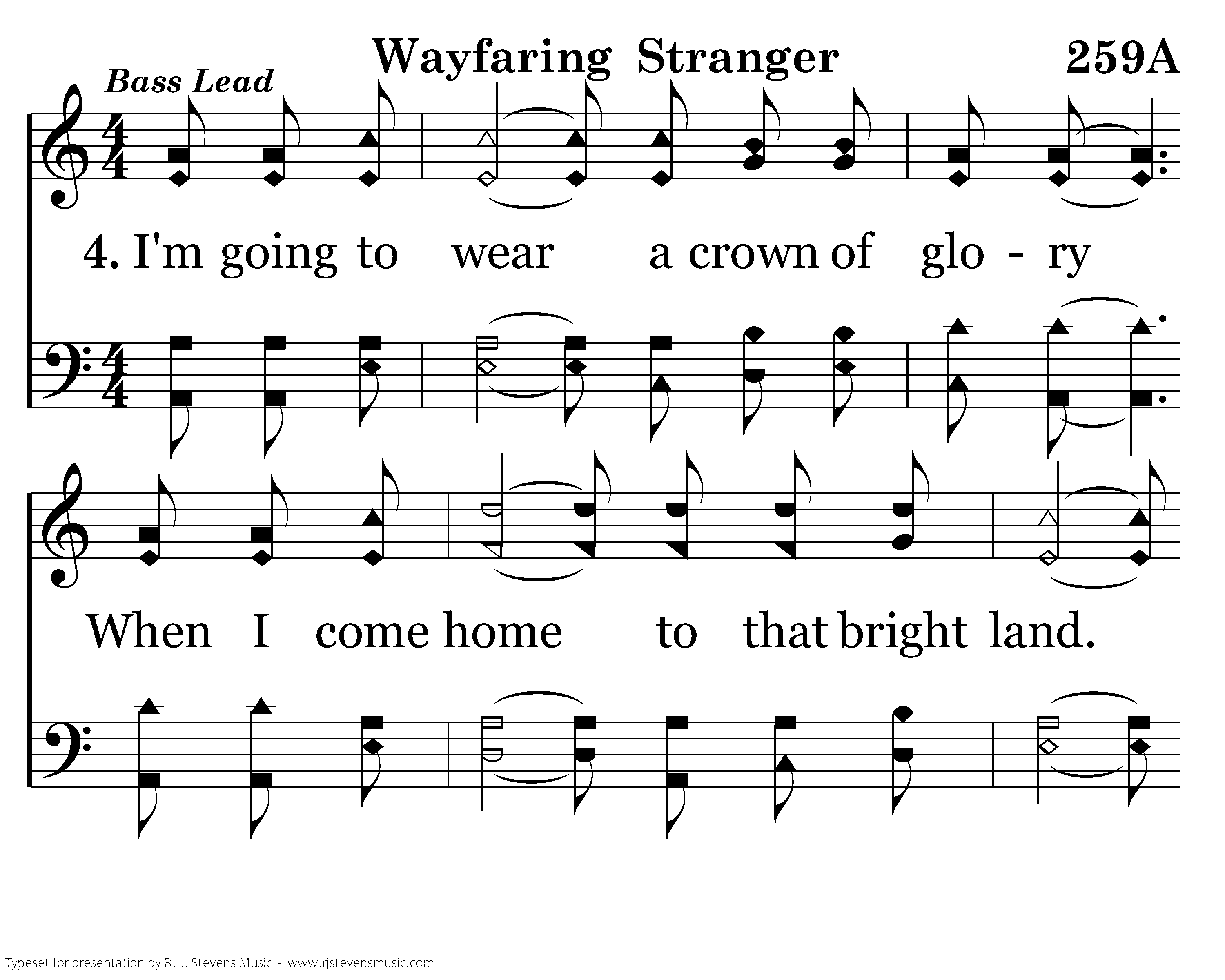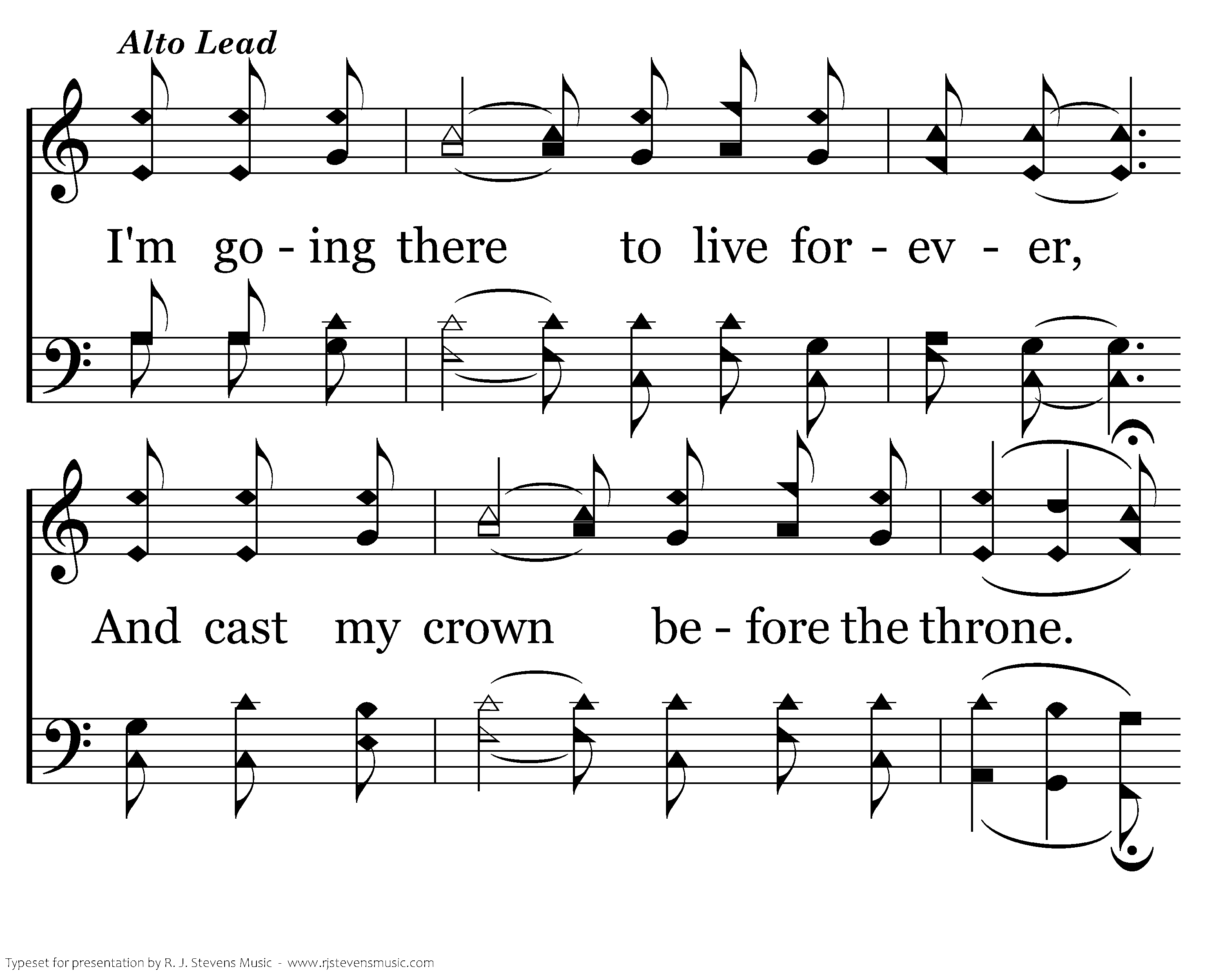 I'm going to wear a crown of glory When I come home to that bright land. I'm going to sing salvation's story Together with that sacred band. I'm going there to live forevert my crown, And casefore the throne.