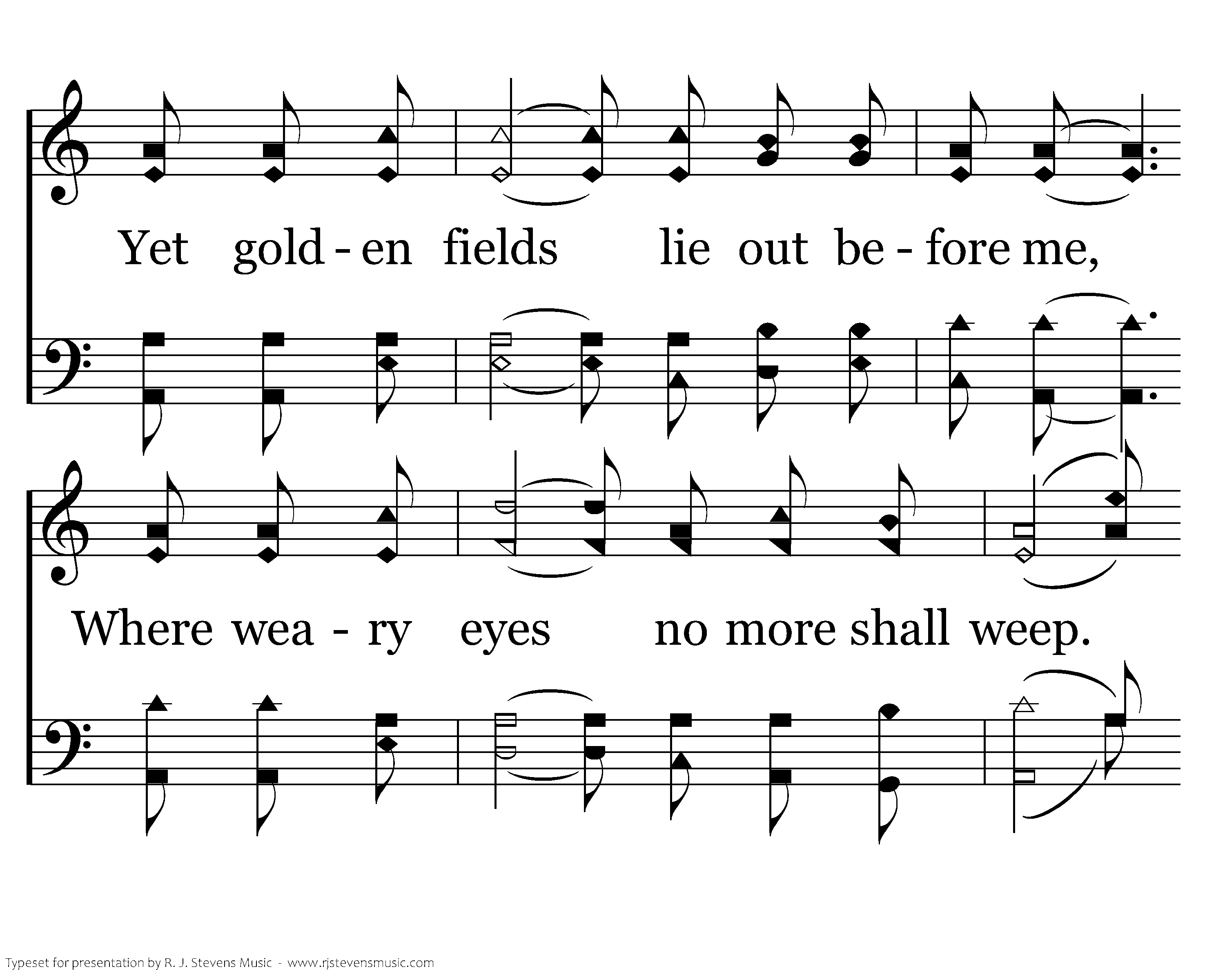 I know dark clouds will gather 'round me. And tho' my way be rough and steep, Yet golden fields lie out before me, Where weary eyes no more shall weep. I'm going there to see my Savior, To sing His praise forever more.