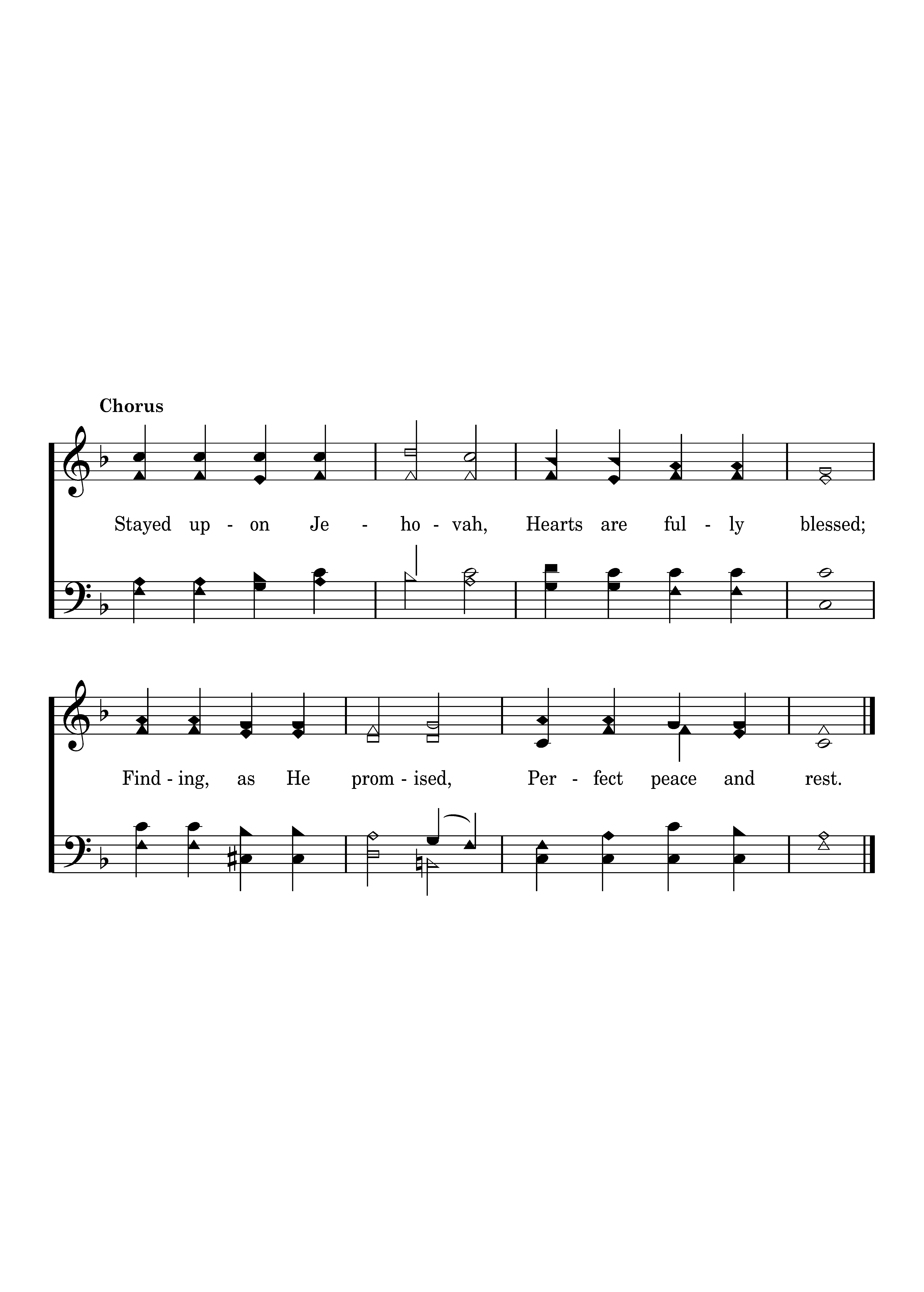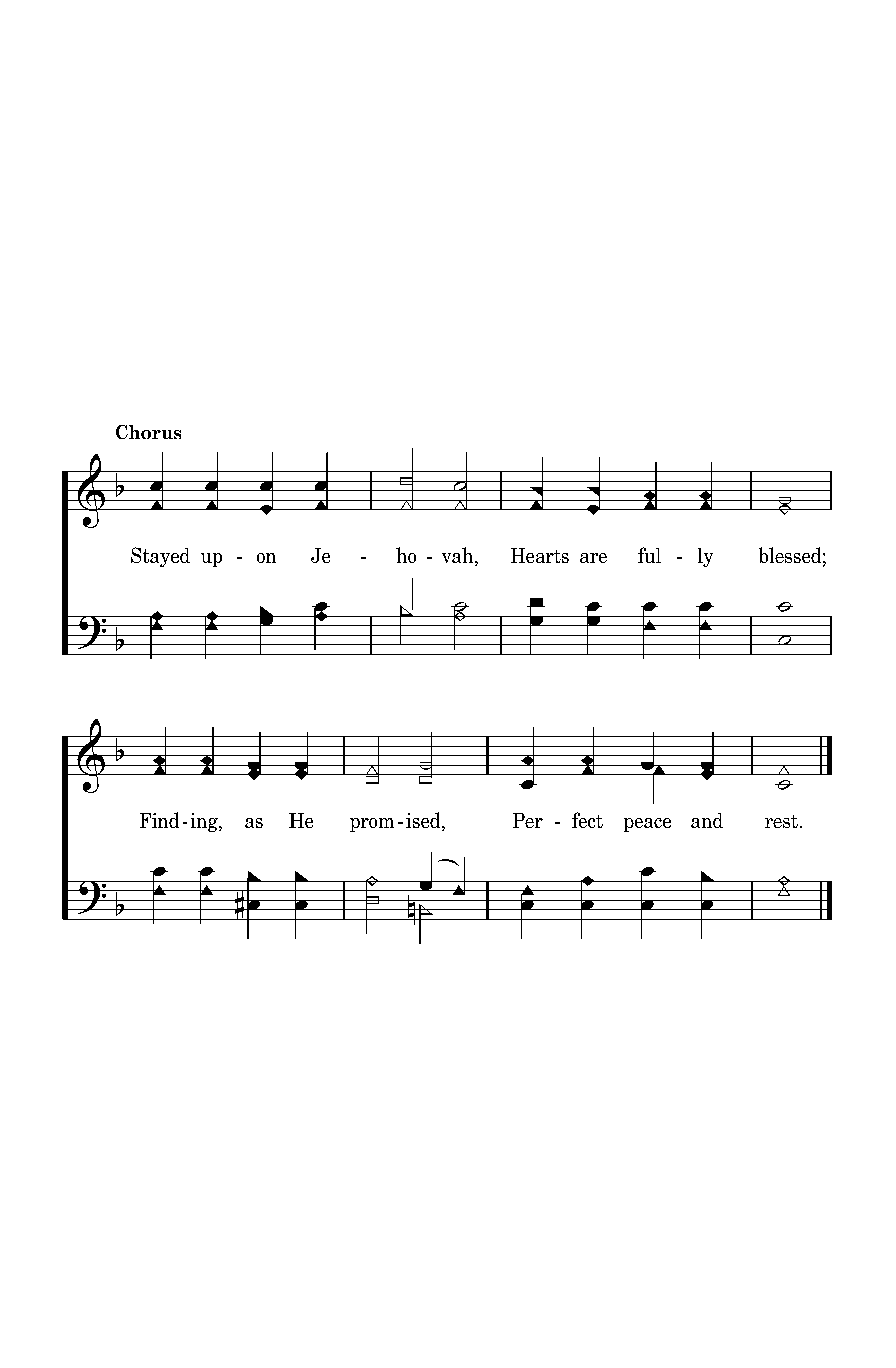 Stayed upon Jehovah, Hearts are fully blessed; Finding, as He promised, Perfect peace and rest.